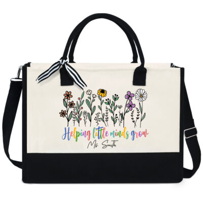 Personalized Teacher Appreciation Gifts – Teachers Day, Graduation, Christmas, Birthday Gifts for Women – 13 oz Canvas Tote Bag with Zipper