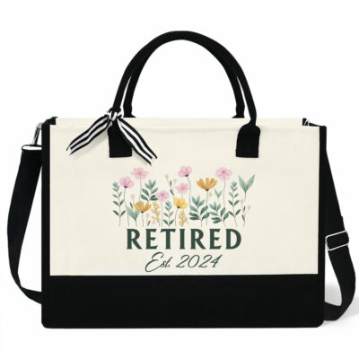 Personalized Retirement Gifts – Floral Retired Custom Name Tote Bag Gifts – Canvas Tote Bag with Zipper