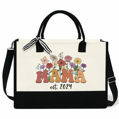 2024 New Mom Gifts For Women – Mothers Day, Birthday Gifts For New Mom, First Time Mom Gifts, Mama Gifts – 13 oz Canvas Tote Bag With Zipper