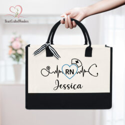 Personalized Nurse Gifts For Women – Christmas, Nurses Day, Birthday Gifts For Women, Nurses Week Gifts, Thank You Gifts For Nurses, Nurse Graduation Gifts – 13 oz Canvas Tote Bag With Zipper
