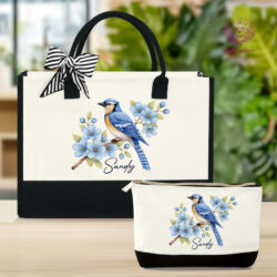 Blue Jay Tote Bag, Bird Lover Gift Bag, Bird Bag, Blue Bird Tote Bag, Mother’s Day Gift For Grandma, Mom Gift, Floral Bird Tote, Sister Gift