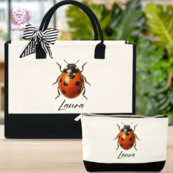 Personalized Ladybug Tote Bag, Laydybird Gift, Laydybird Tote Bag, Lady Bug Makeup Bag, Ladybug Lover, Gift for Her, Bridesmaid, Mom,Grandma