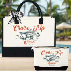 Cruise Trip Tote Bag, Custom Name Vacation Tote Gift, Travel Gift, Girls Weekend Tote Bag, Cruise Essentials Beach Bag, Family Cruise Gift