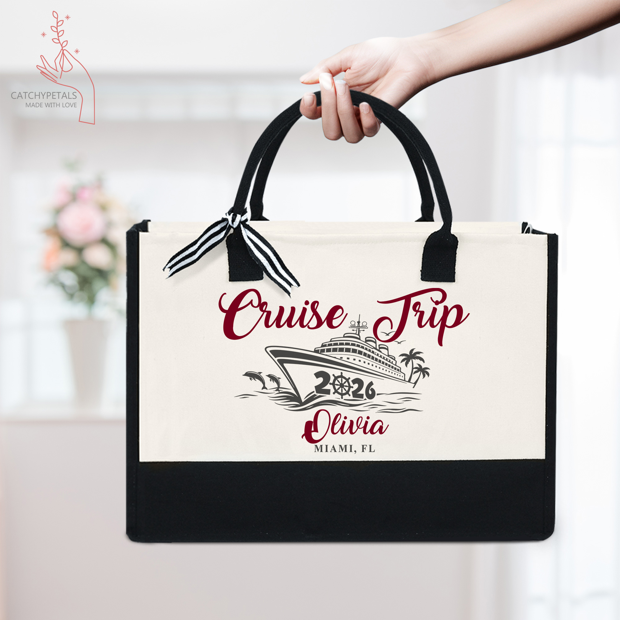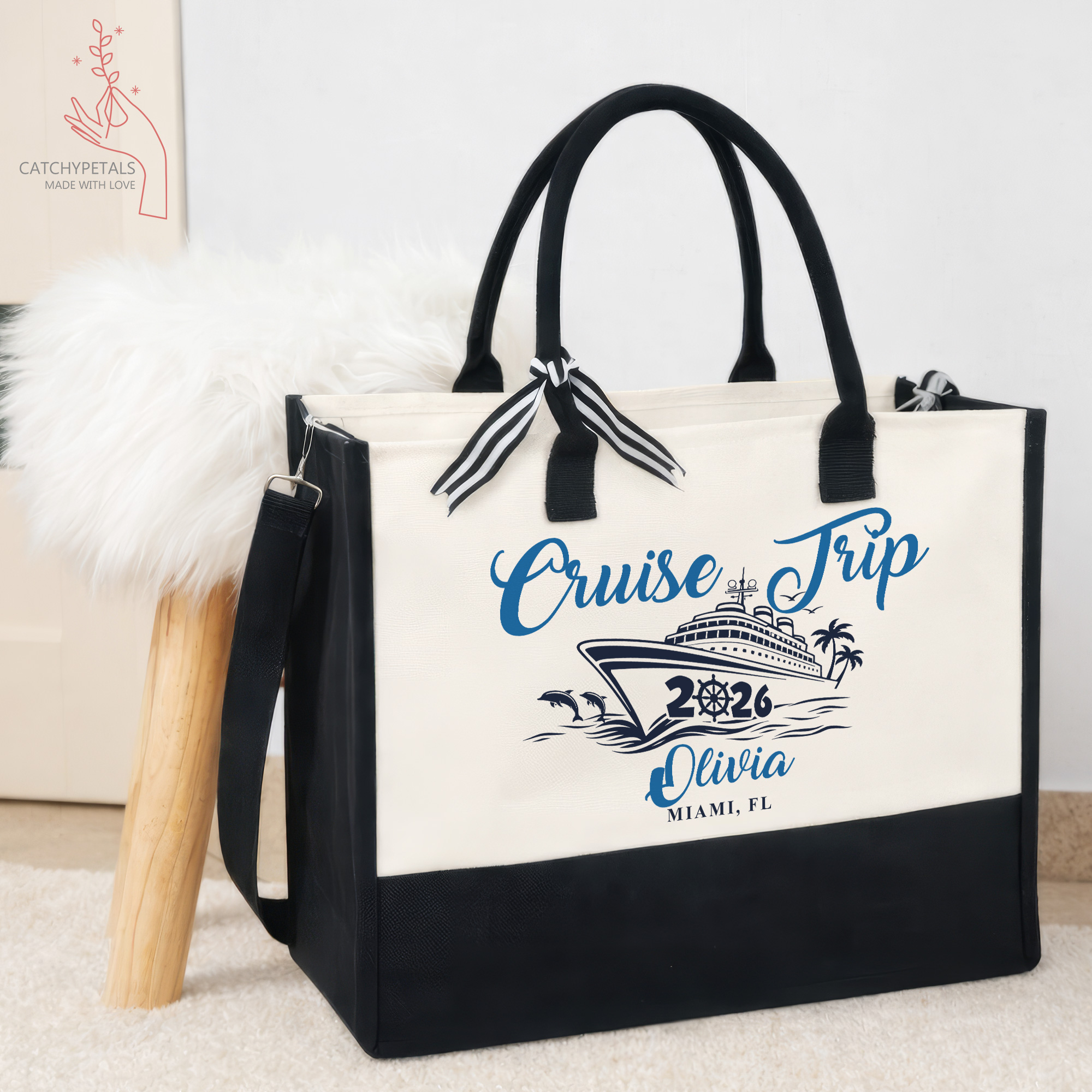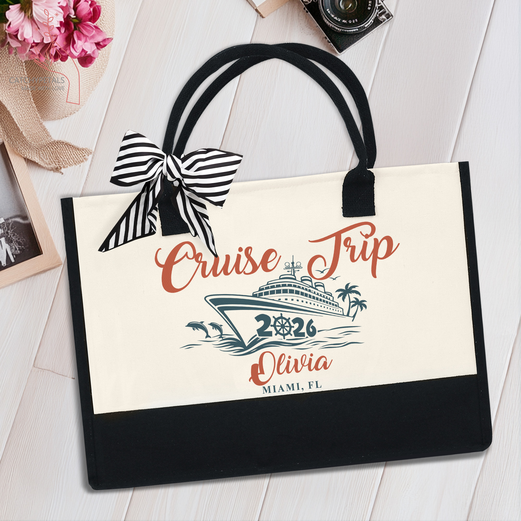 Cruise Trip Tote Bag, Custom Name Vacation Tote Gift, Travel Gift, Girls Weekend Tote Bag, Cruise Essentials Beach Bag, Family Cruise Gift
