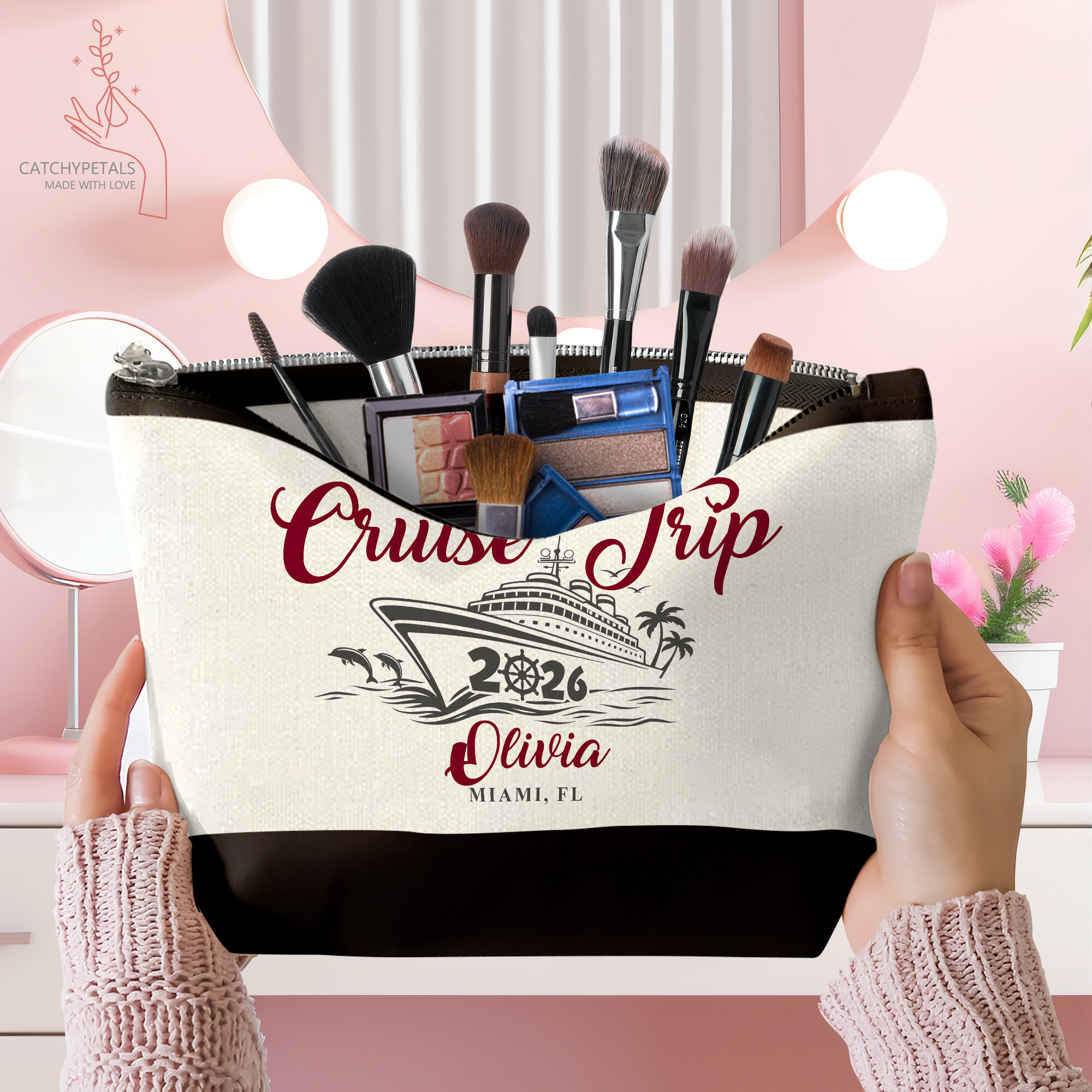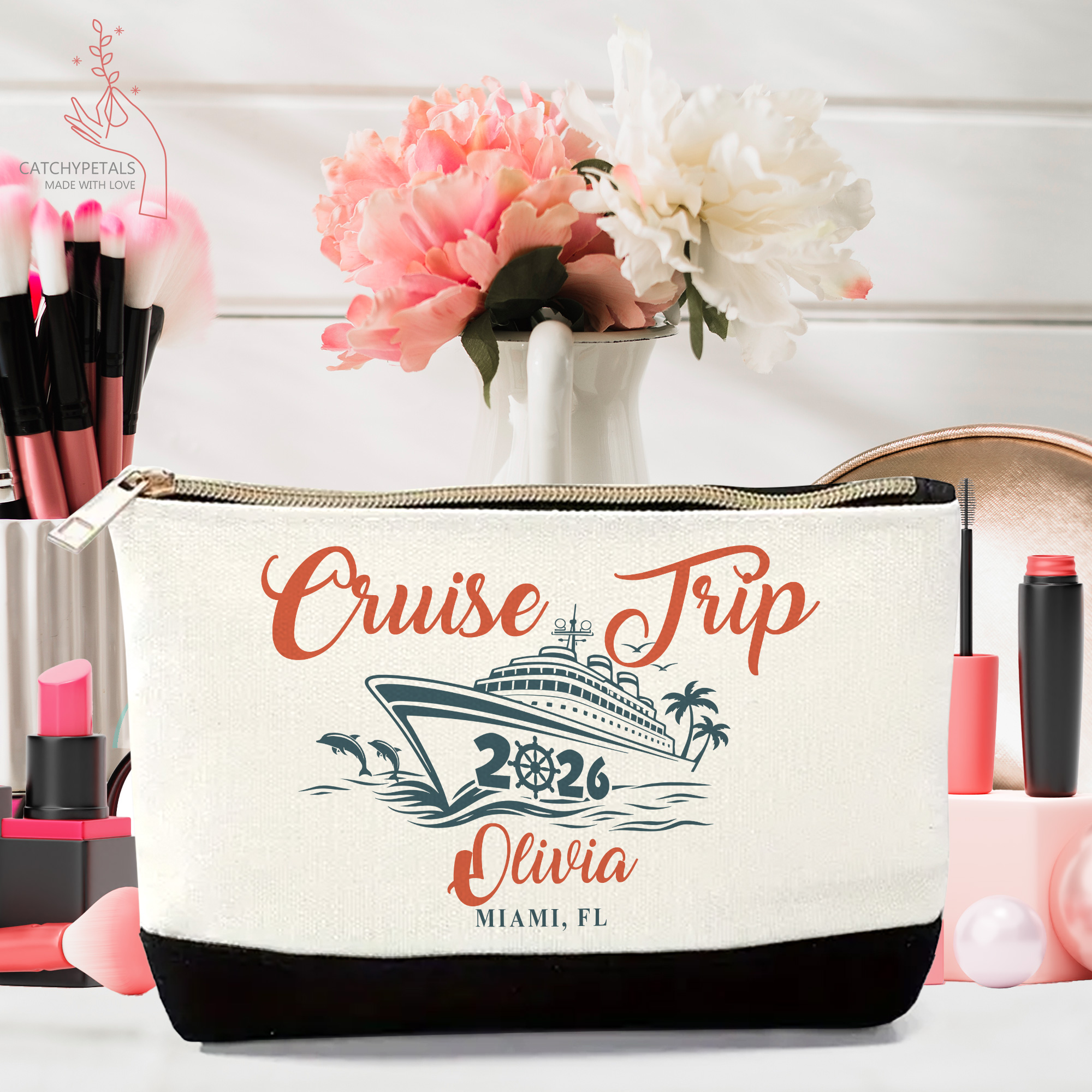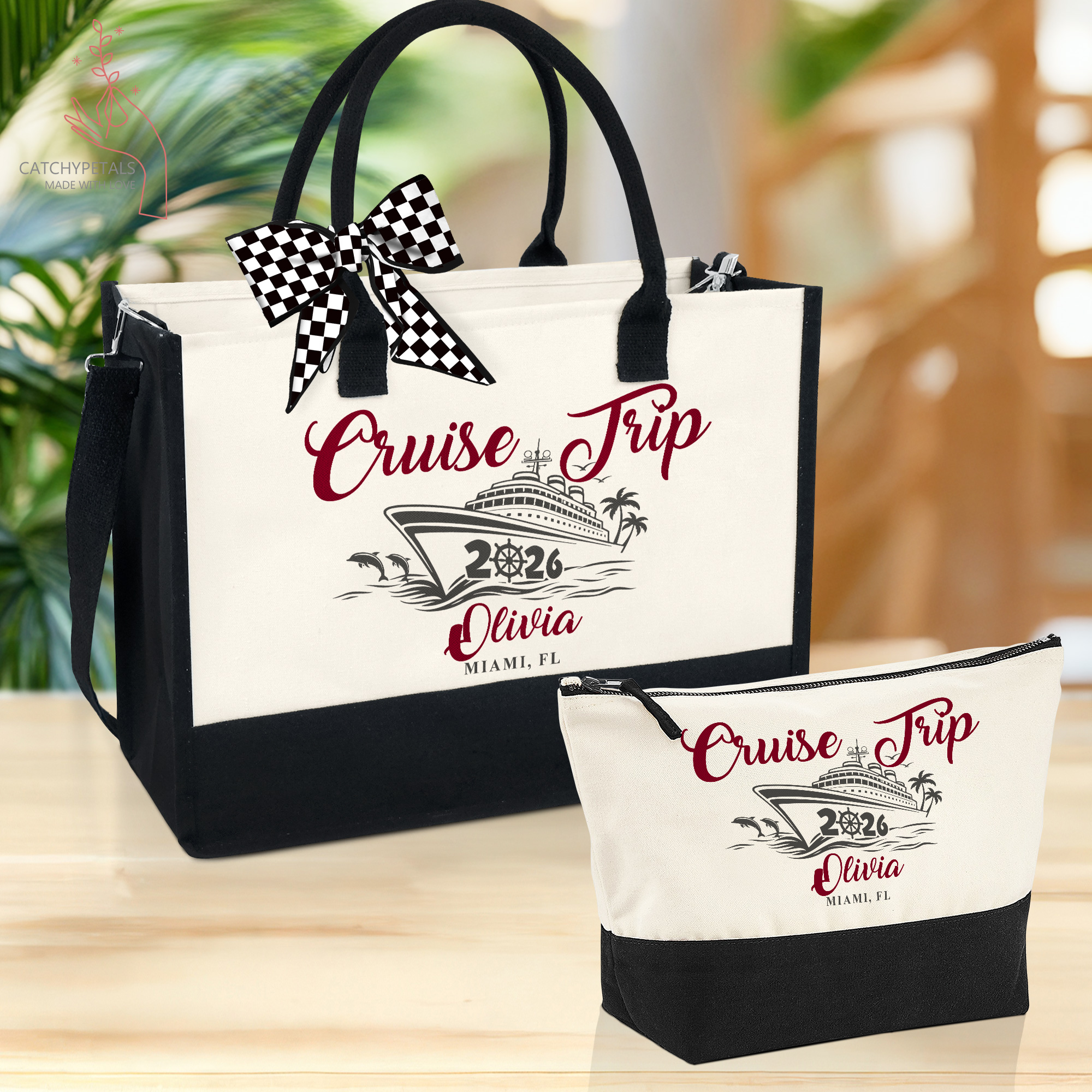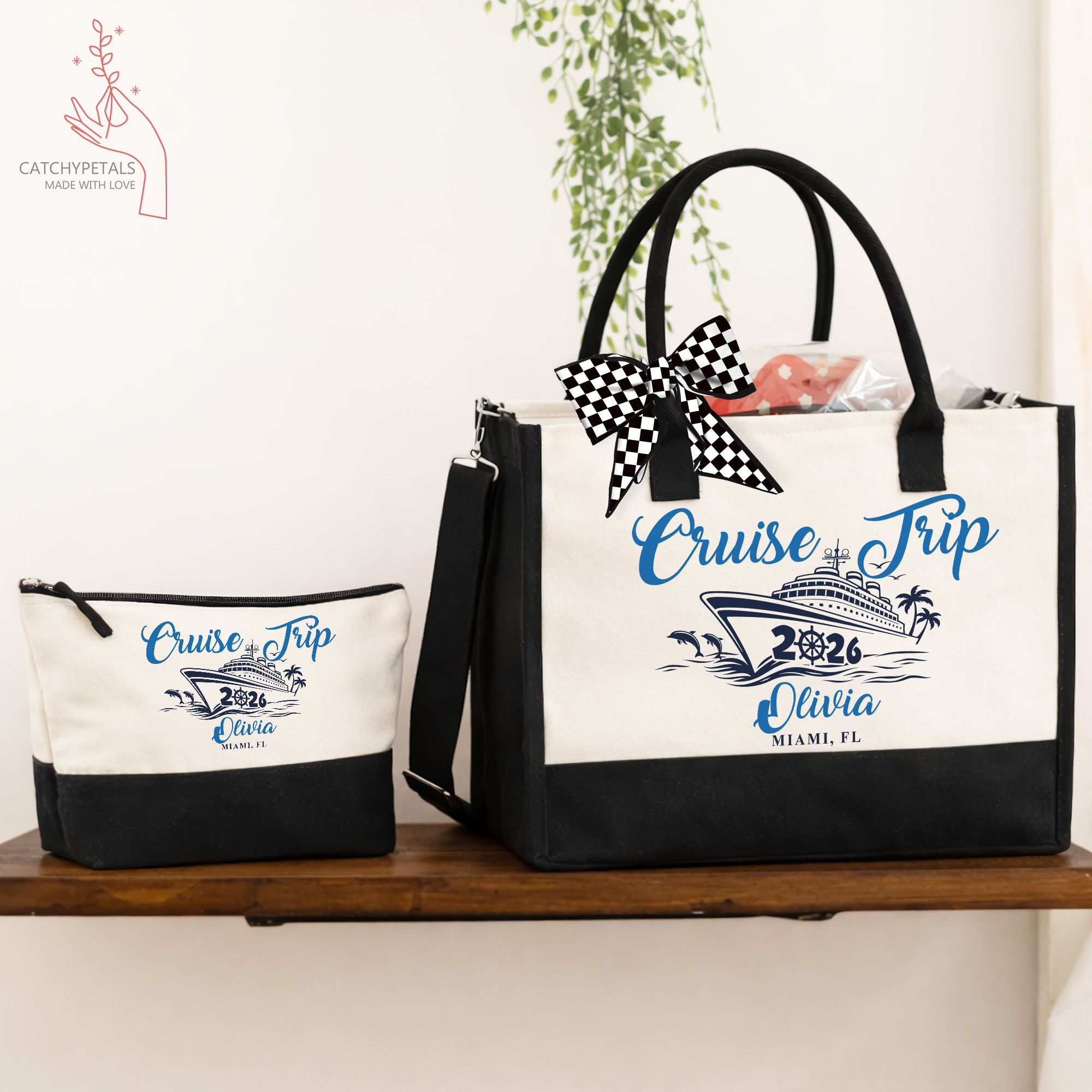 Cruise Trip Tote Bag, Custom Name Vacation Tote Gift, Travel Gift, Girls Weekend Tote Bag, Cruise Essentials Beach Bag, Family Cruise Gift