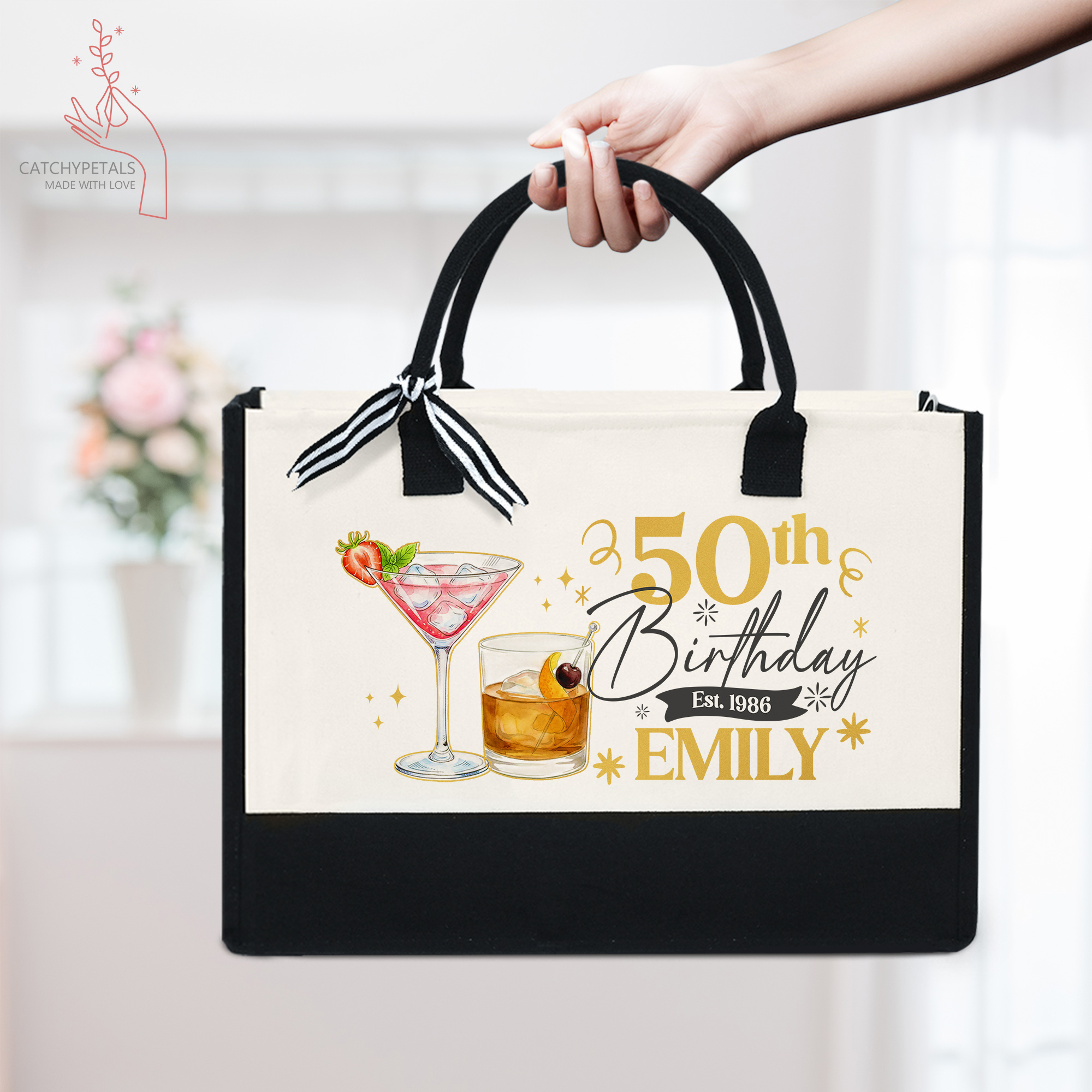 Custom 50th Birthday Tote Bag, 50th Birthday Gift Bag, Vintage 1976 Birthday Tote Bag, 50th Birthday Party,Girls Trip Tote,Birthday Gift Bag