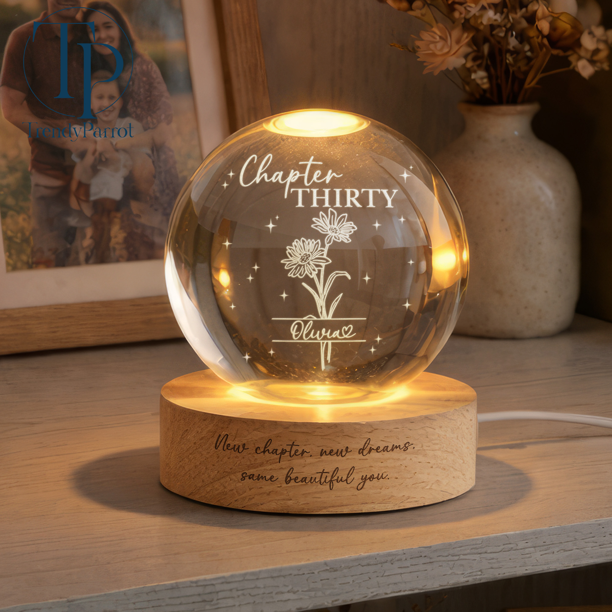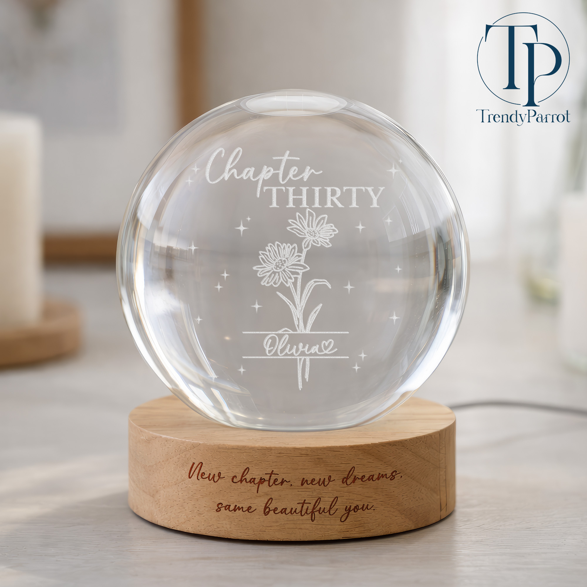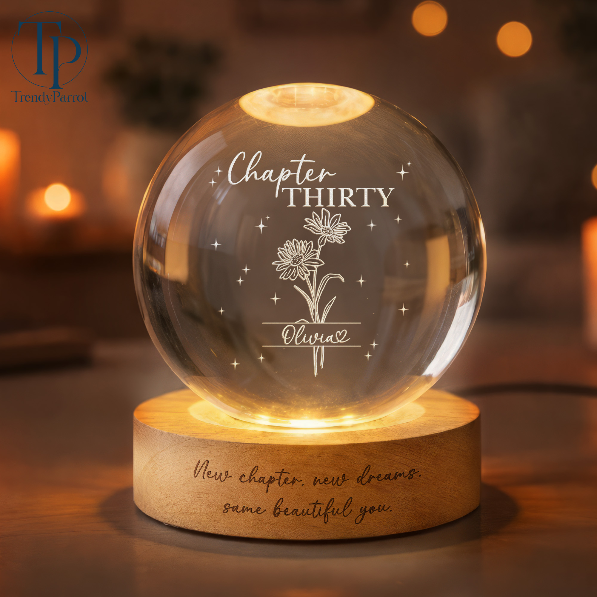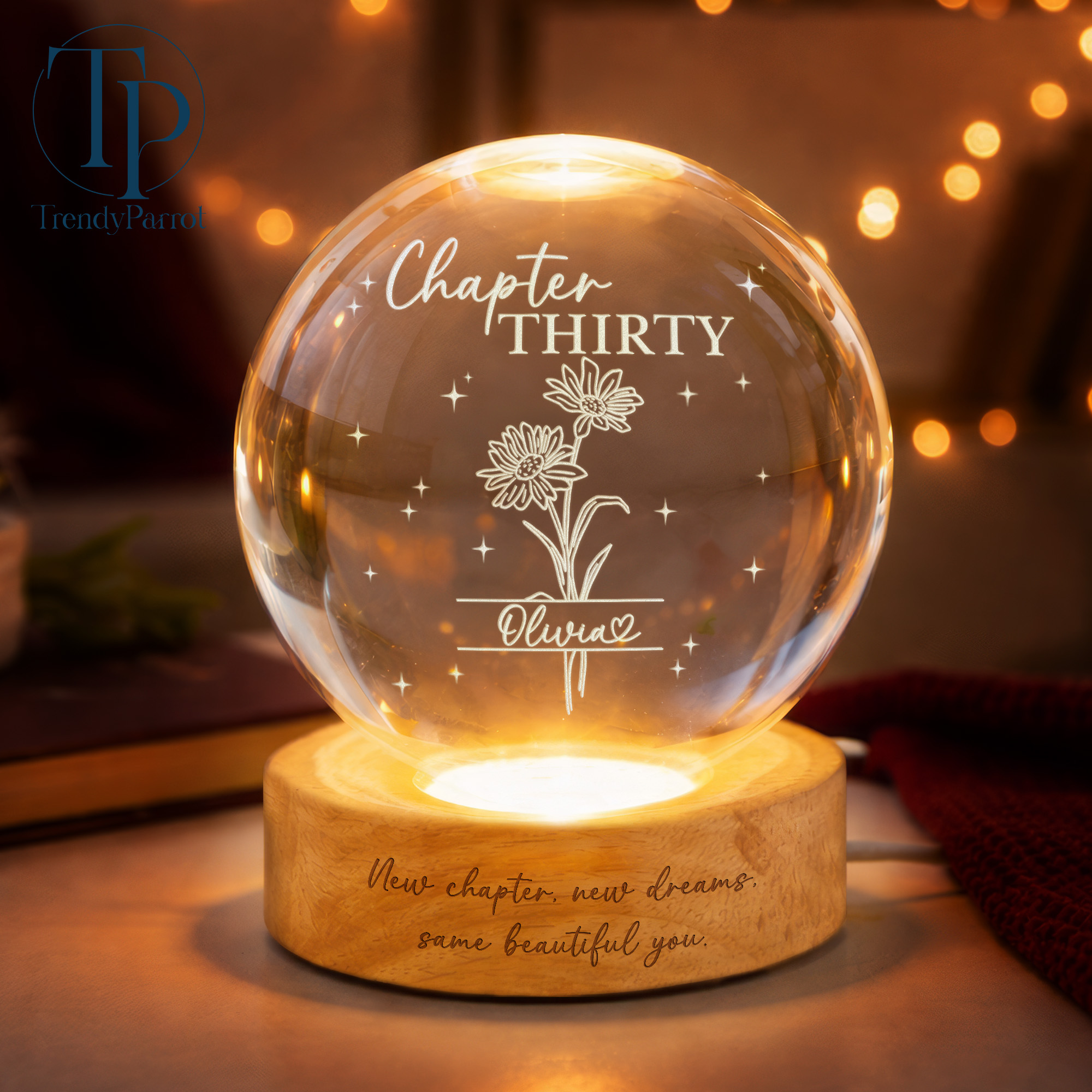 Custom Birth Month Flowers, Personalized Crystal Ball LED Night Light, 30th Bithday, New Chapter Gift Just Because Gift for Friend, Daughter