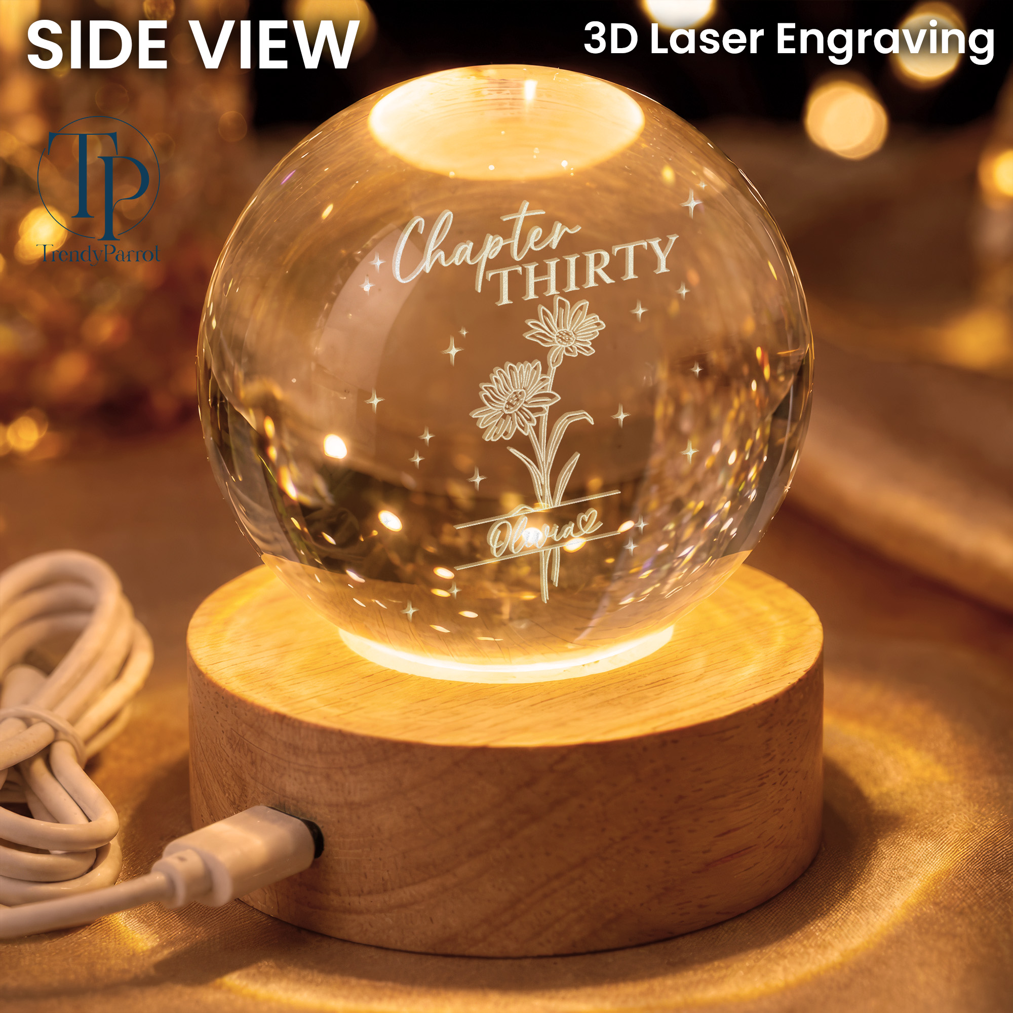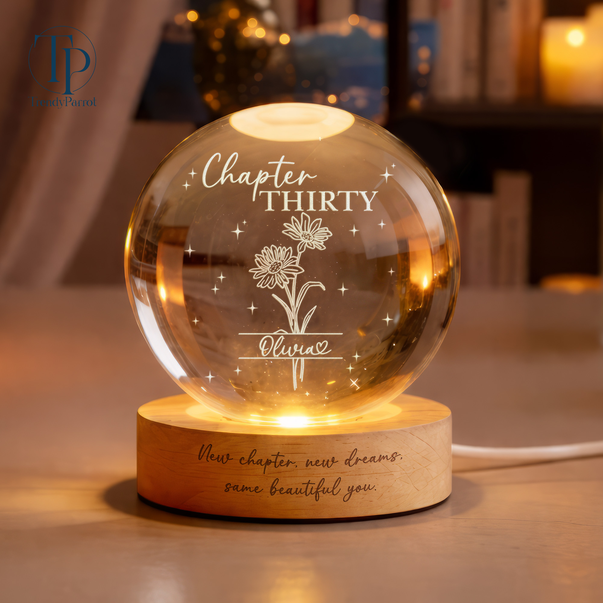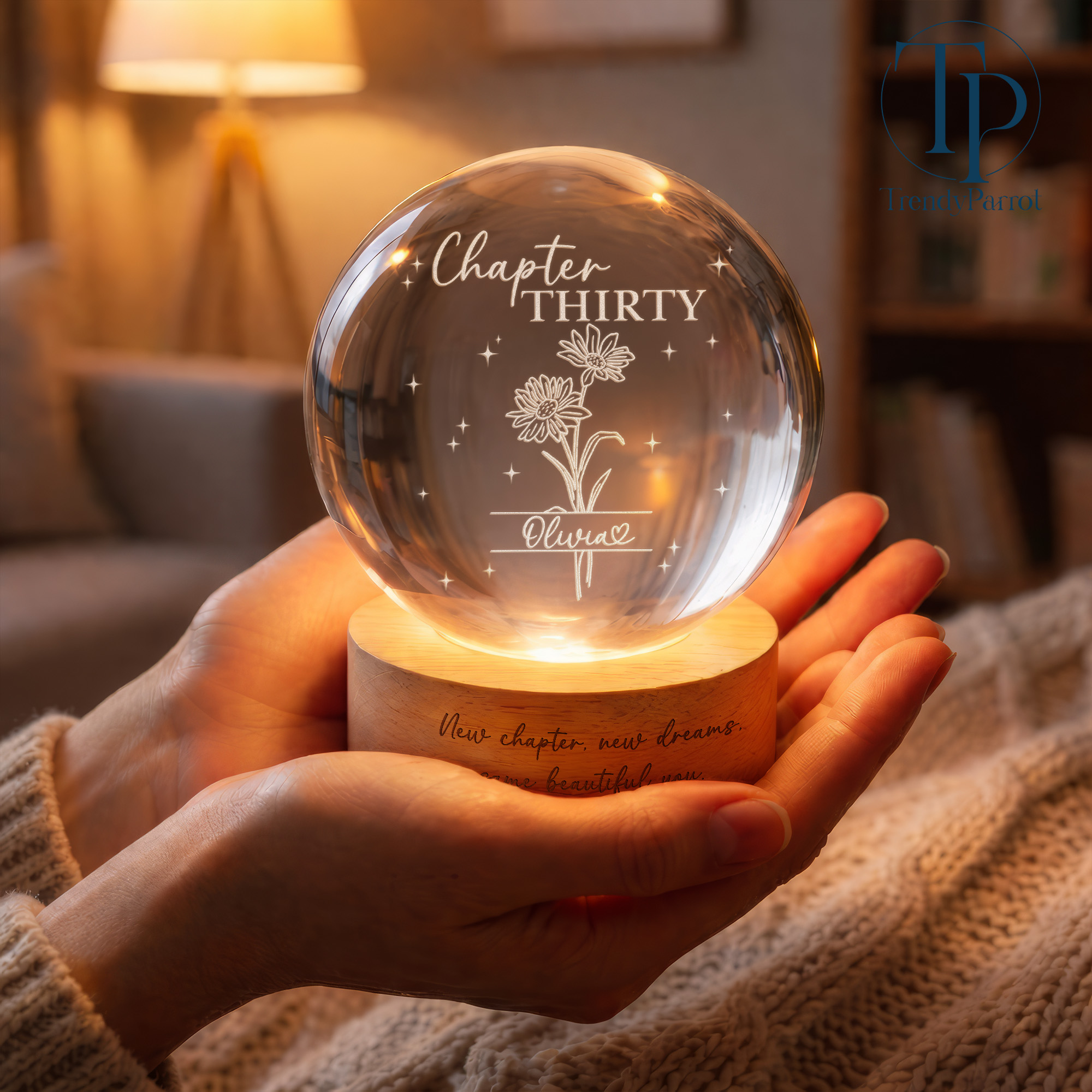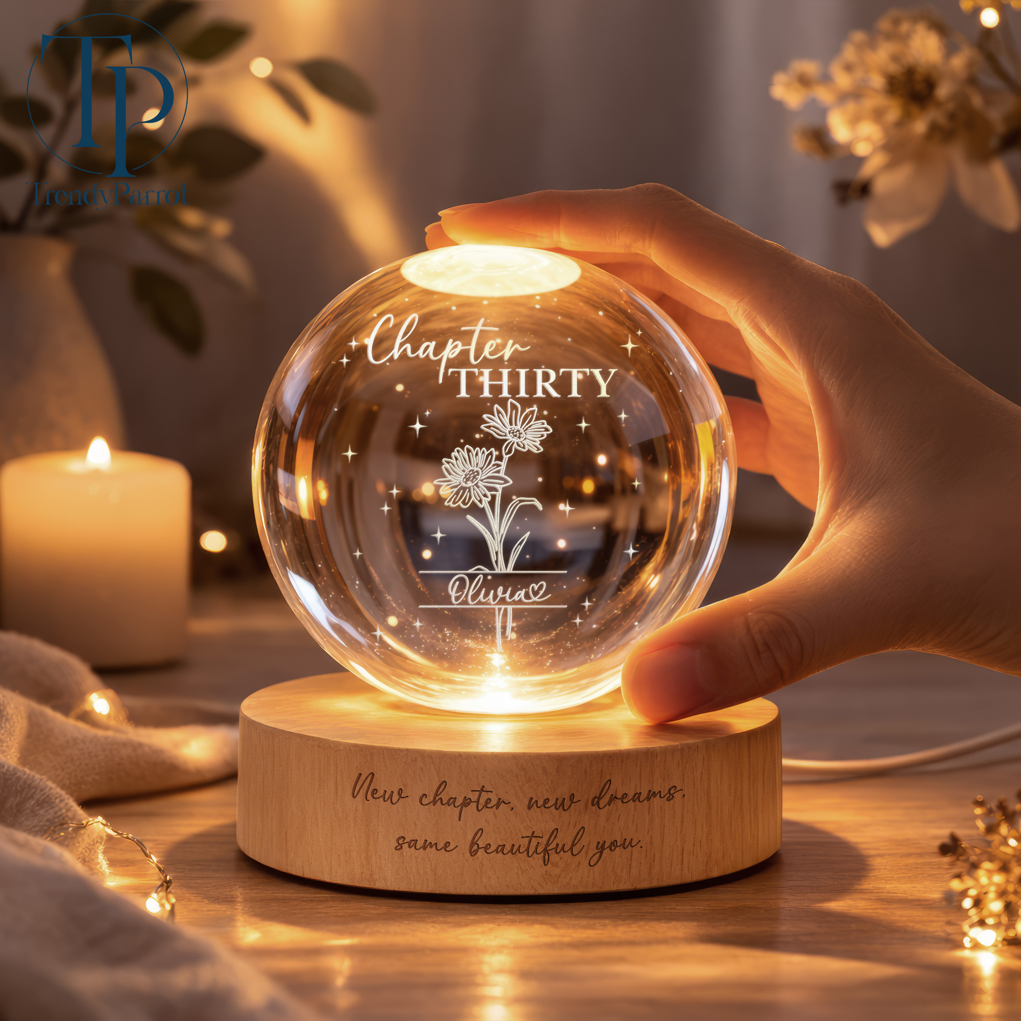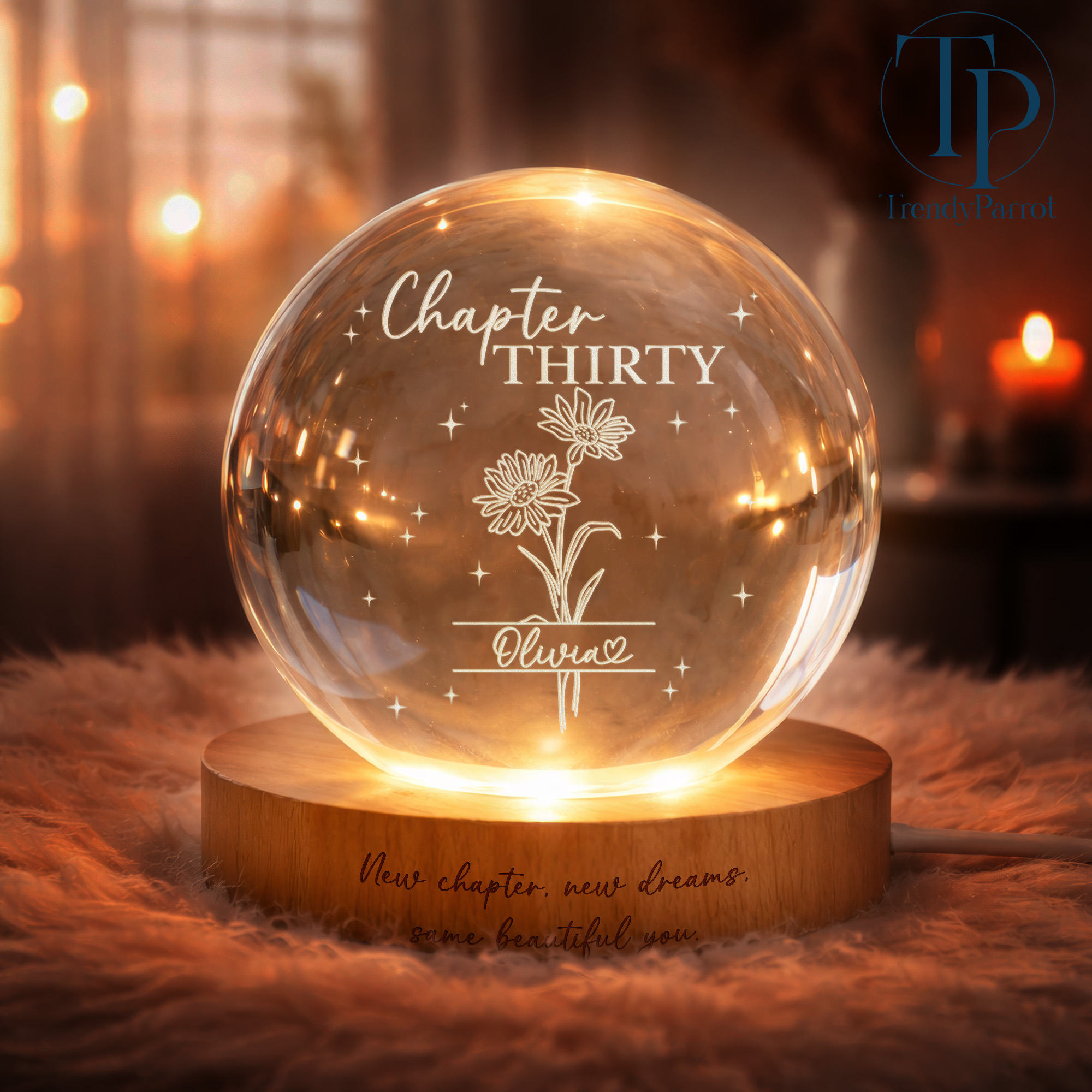 Custom Birth Month Flowers, Personalized Crystal Ball LED Night Light, 30th Bithday, New Chapter Gift Just Because Gift for Friend, Daughter