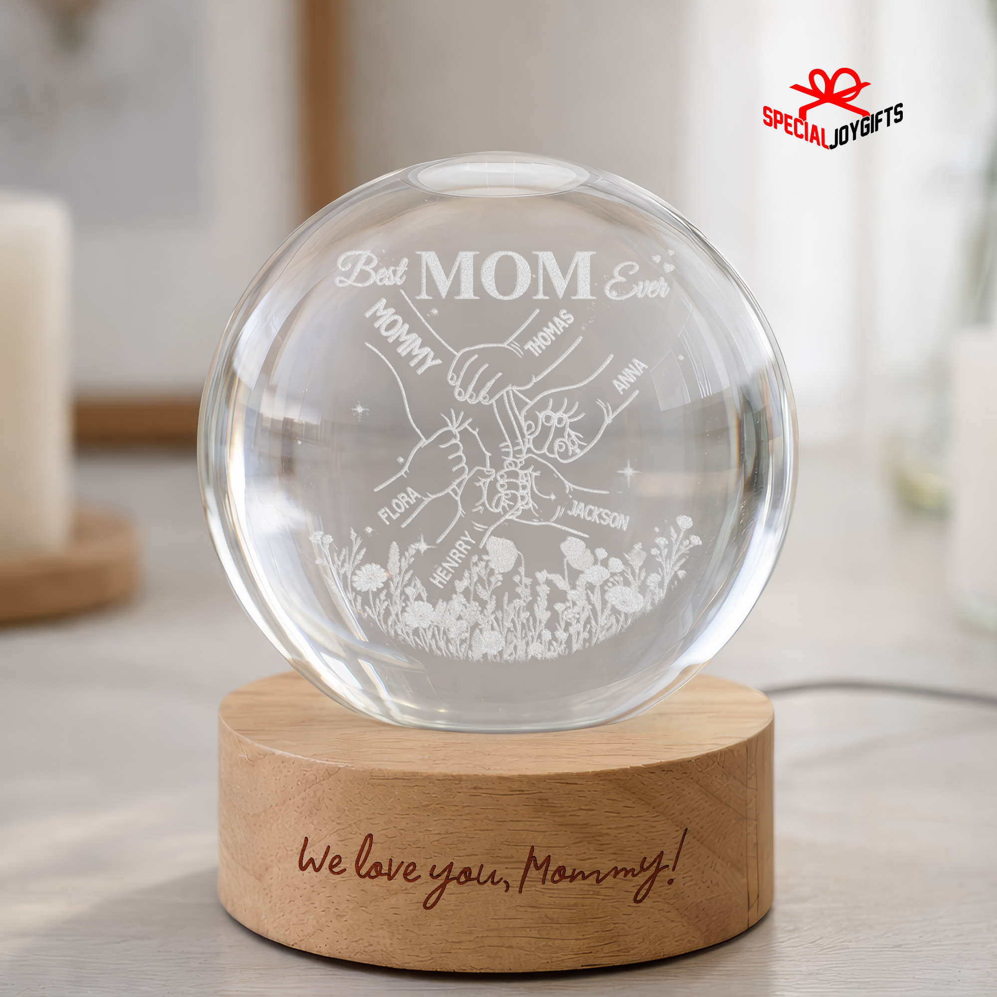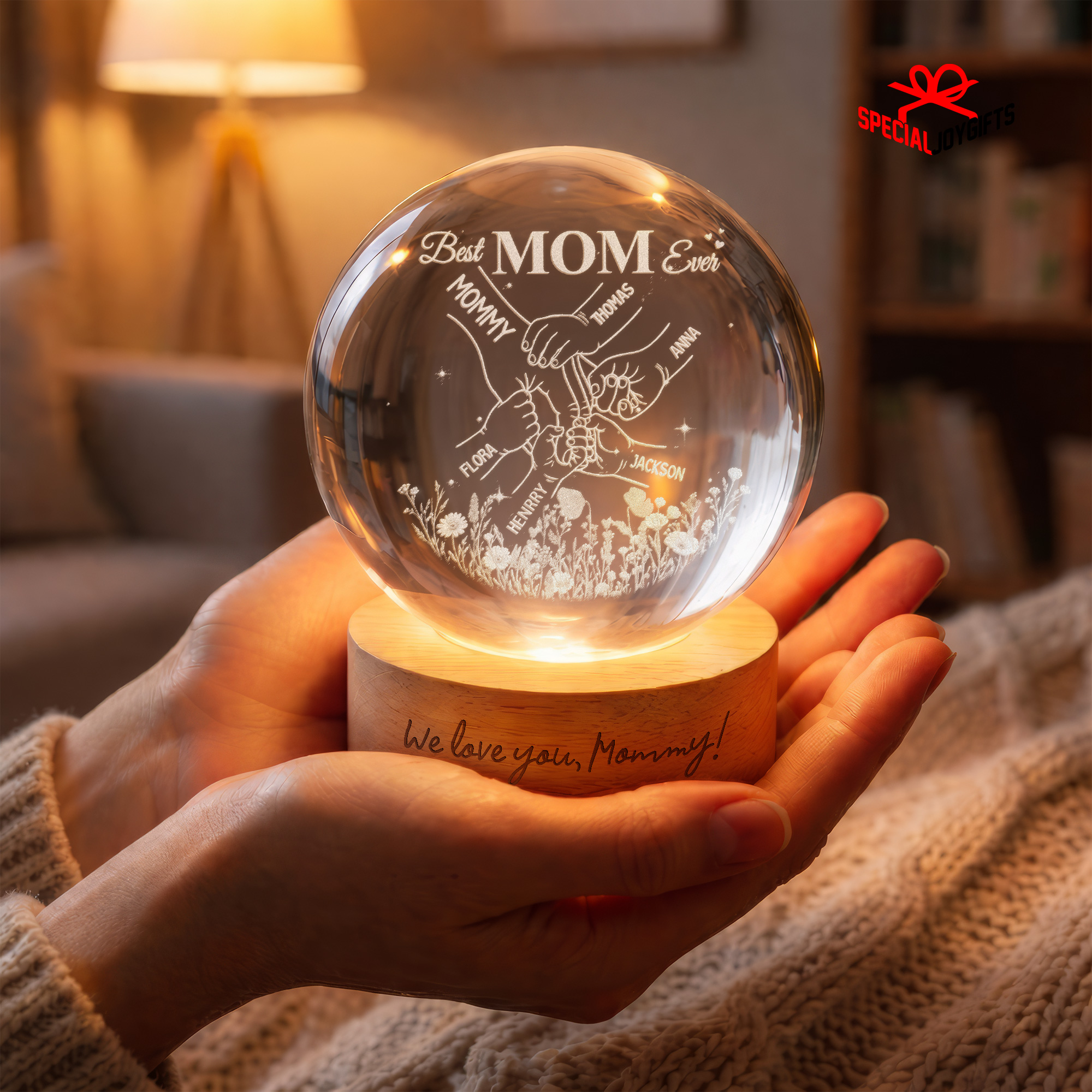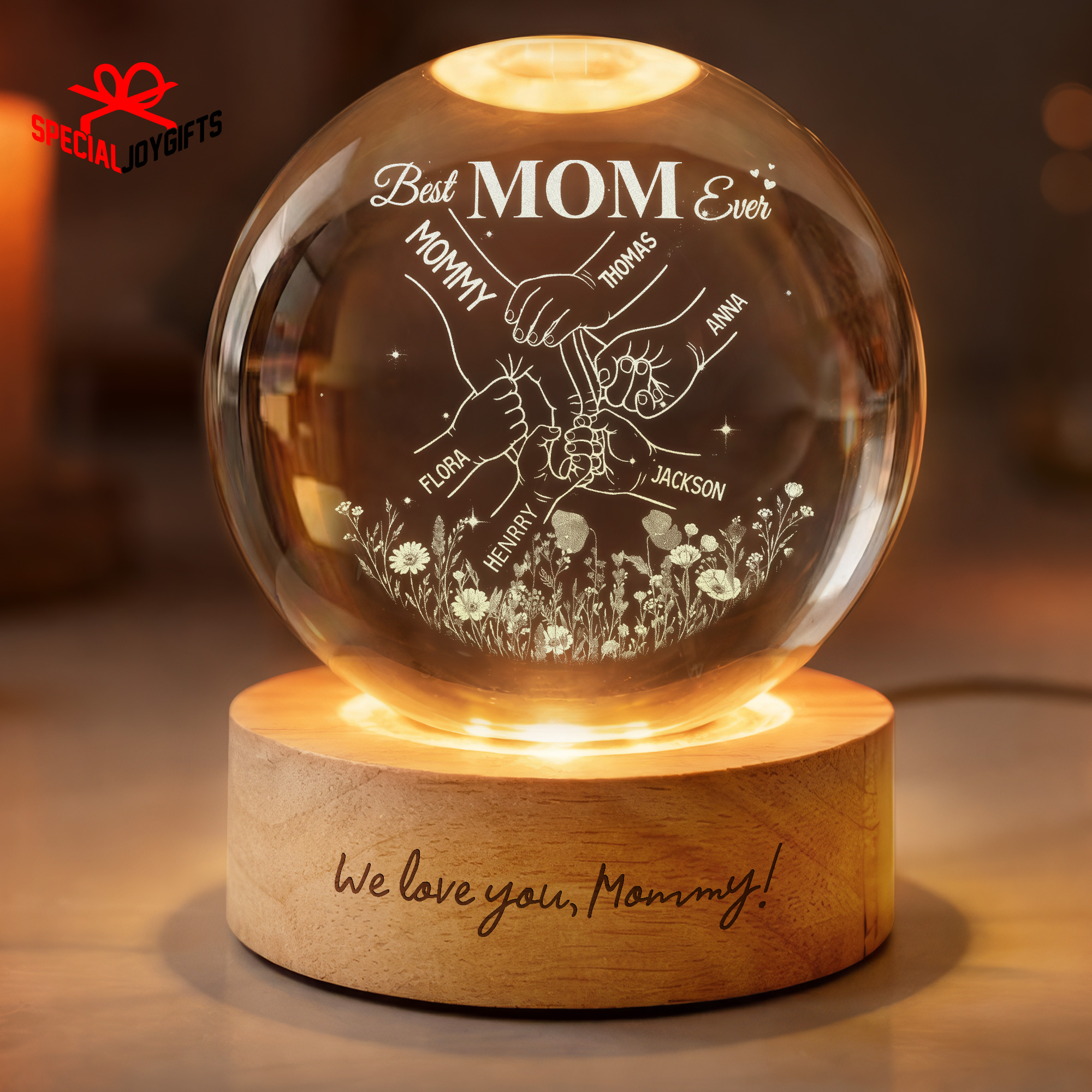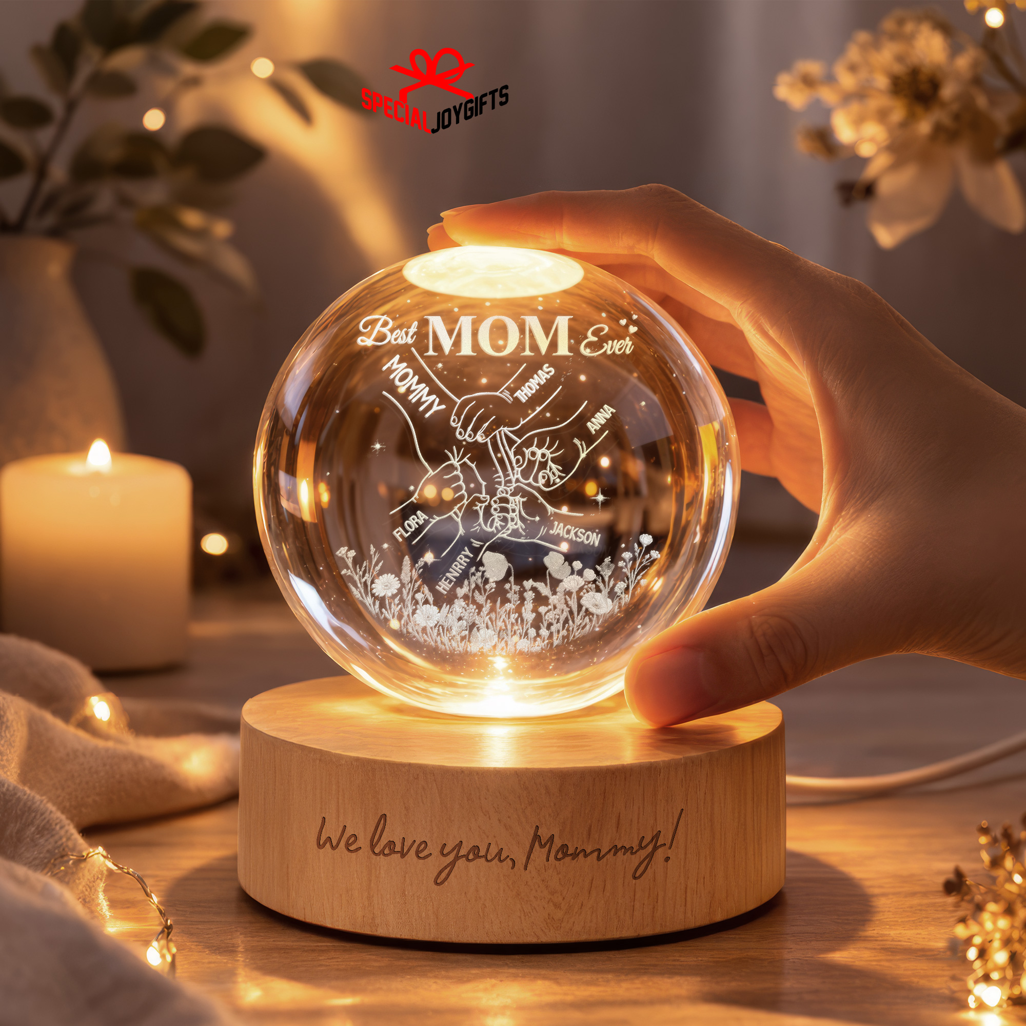 Custom Crystal Ball Night Light, Mom Gift, Mothers Day Gifts For Mom, Holding Mom Hands, Gift for Mama, Gift From Daughter,Mom Birthday Gift