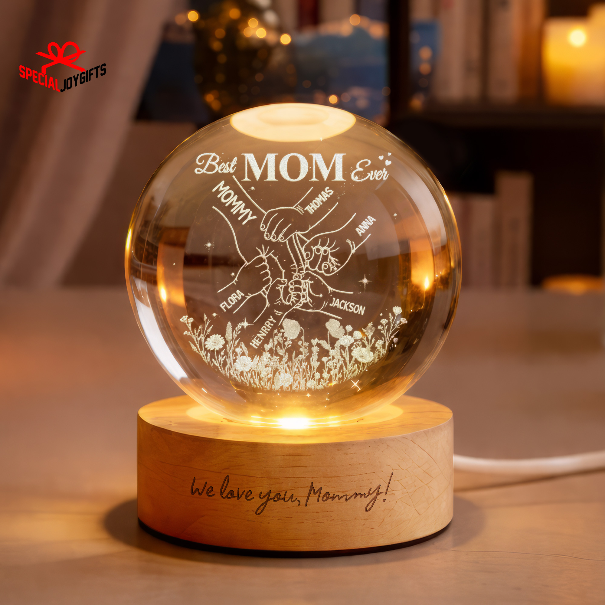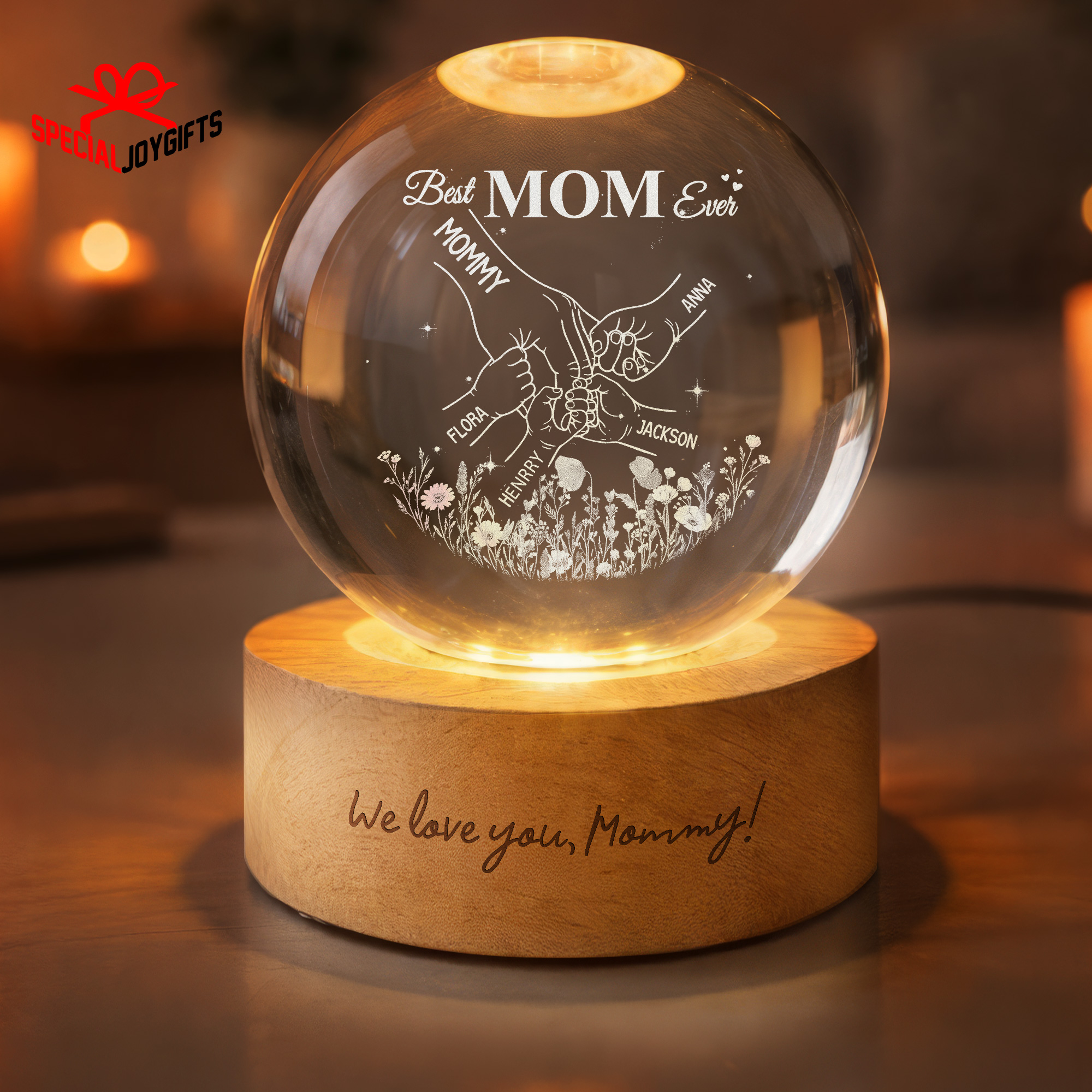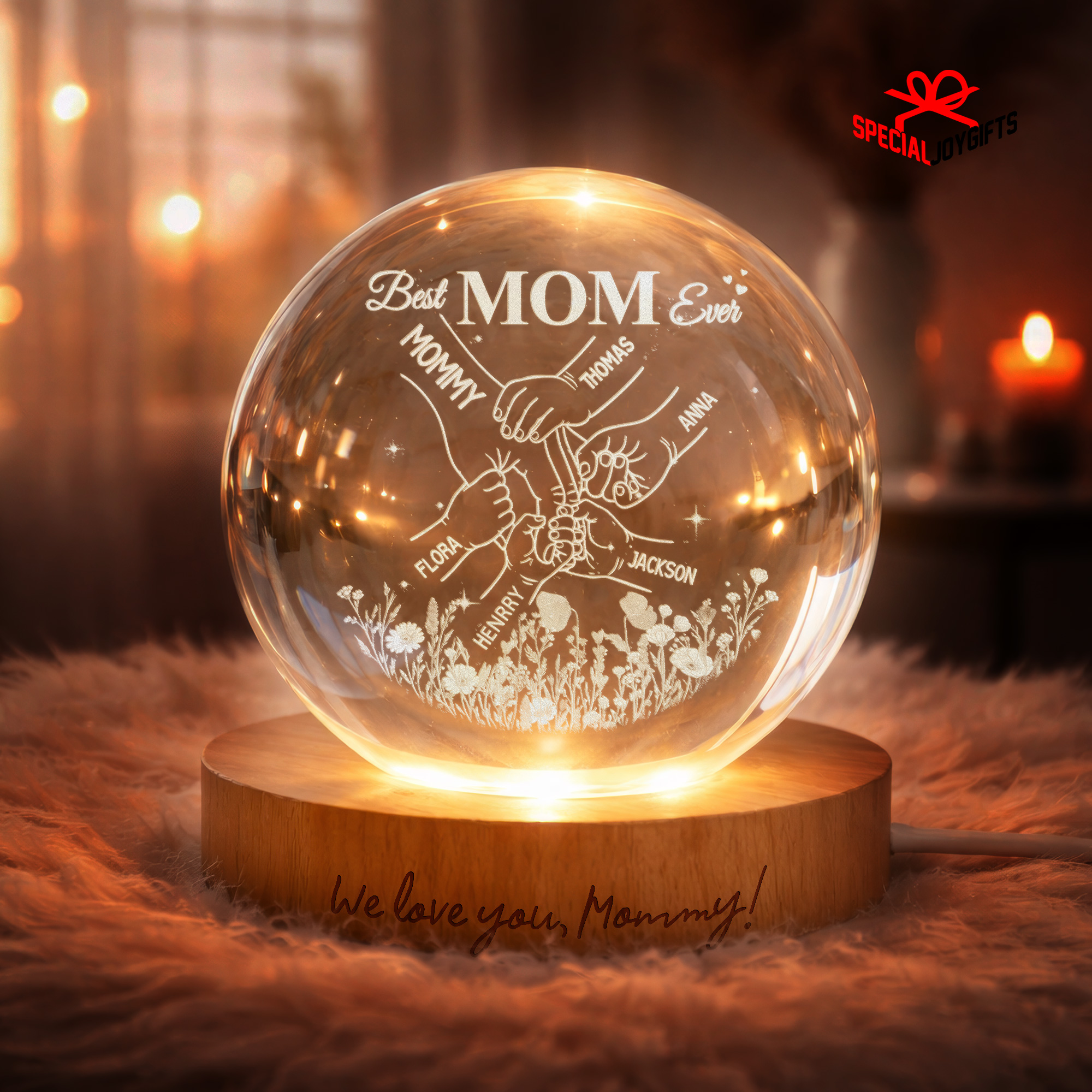 Custom Crystal Ball Night Light, Mom Gift, Mothers Day Gifts For Mom, Holding Mom Hands, Gift for Mama, Gift From Daughter,Mom Birthday Gift