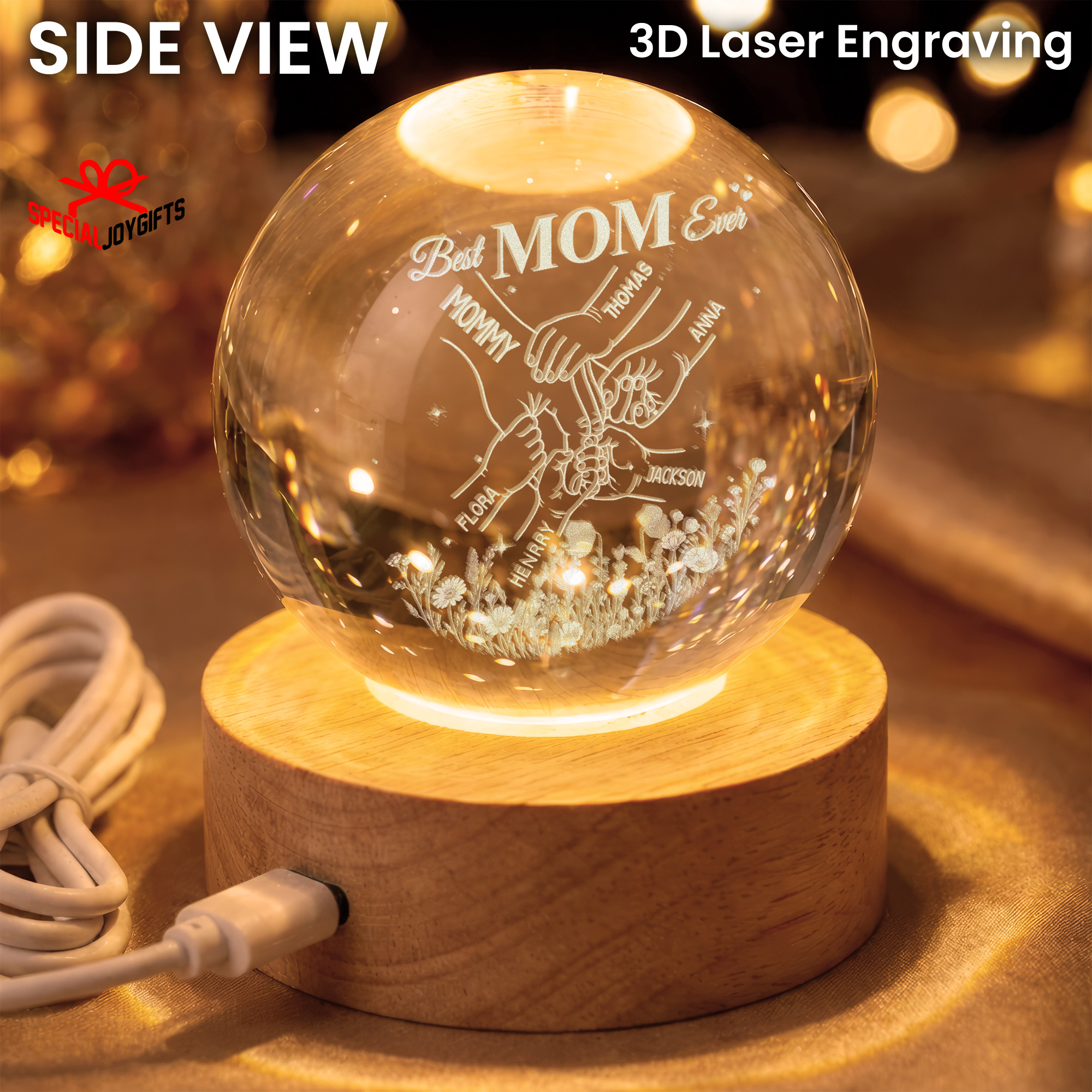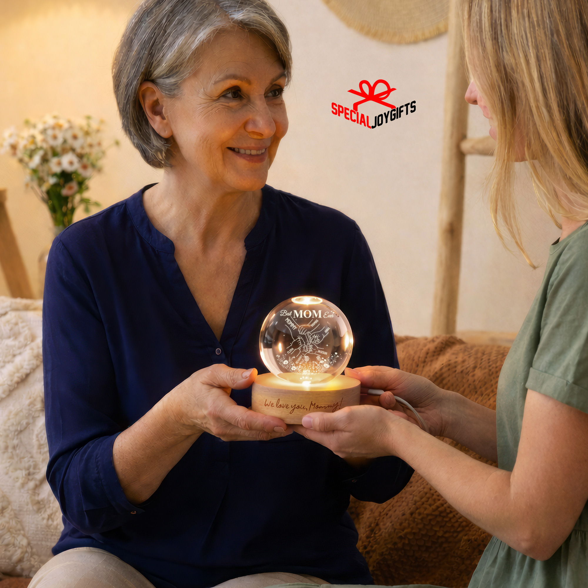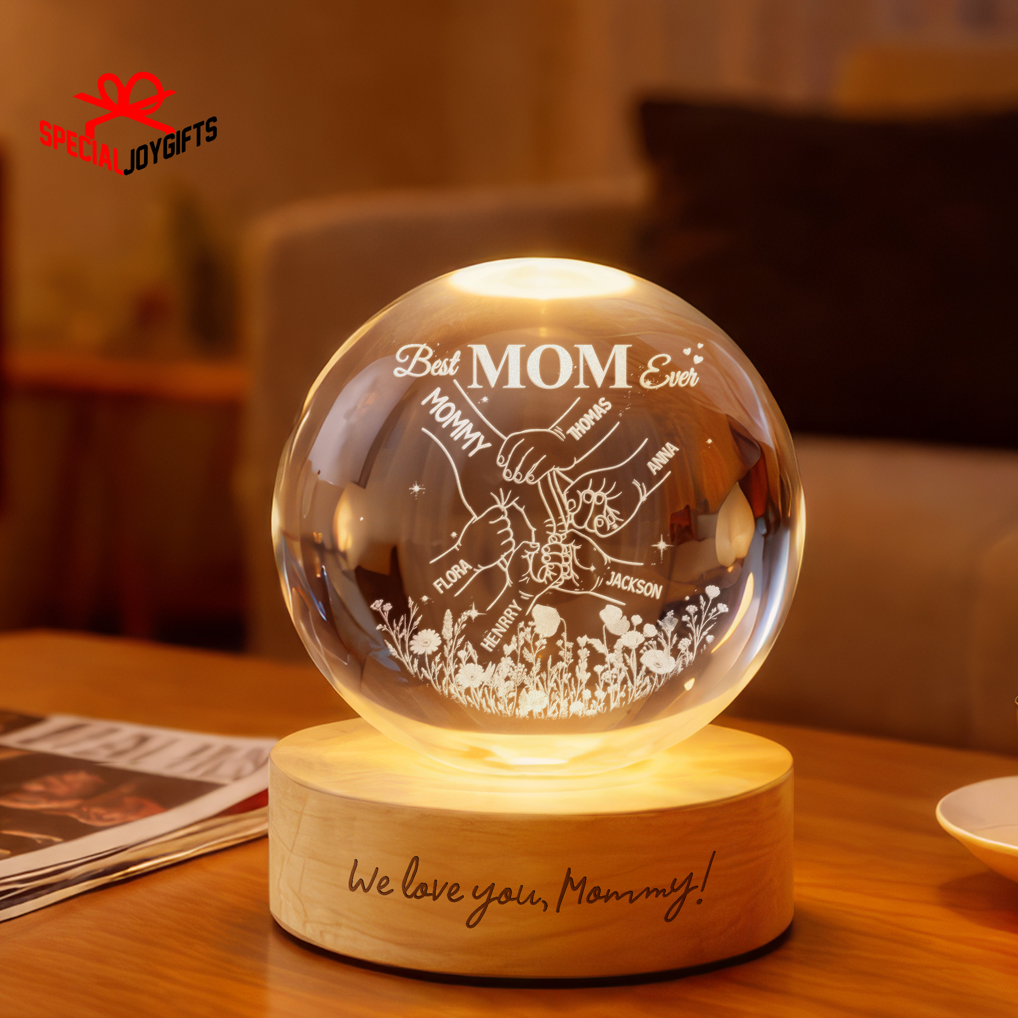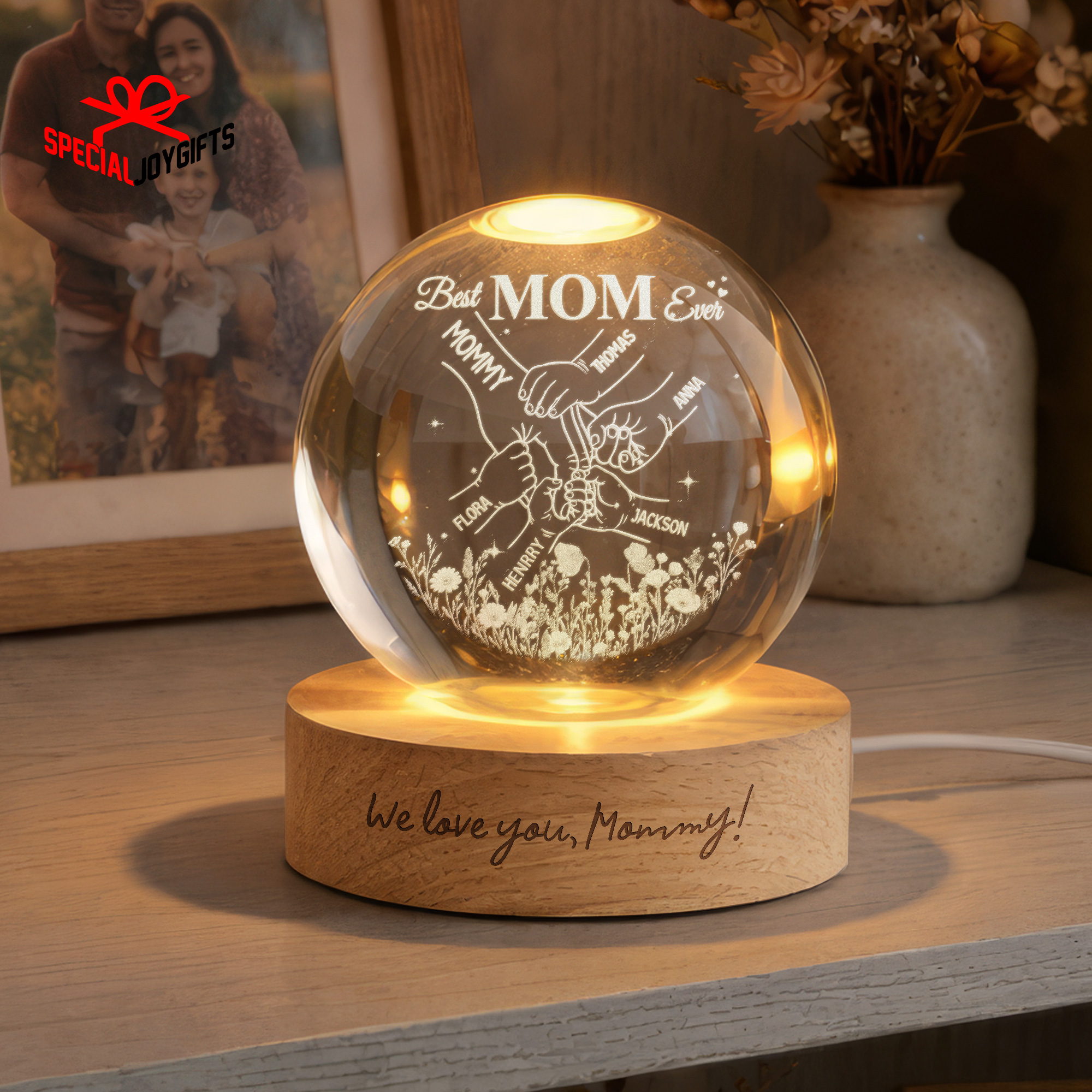 Custom Crystal Ball Night Light, Mom Gift, Mothers Day Gifts For Mom, Holding Mom Hands, Gift for Mama, Gift From Daughter,Mom Birthday Gift