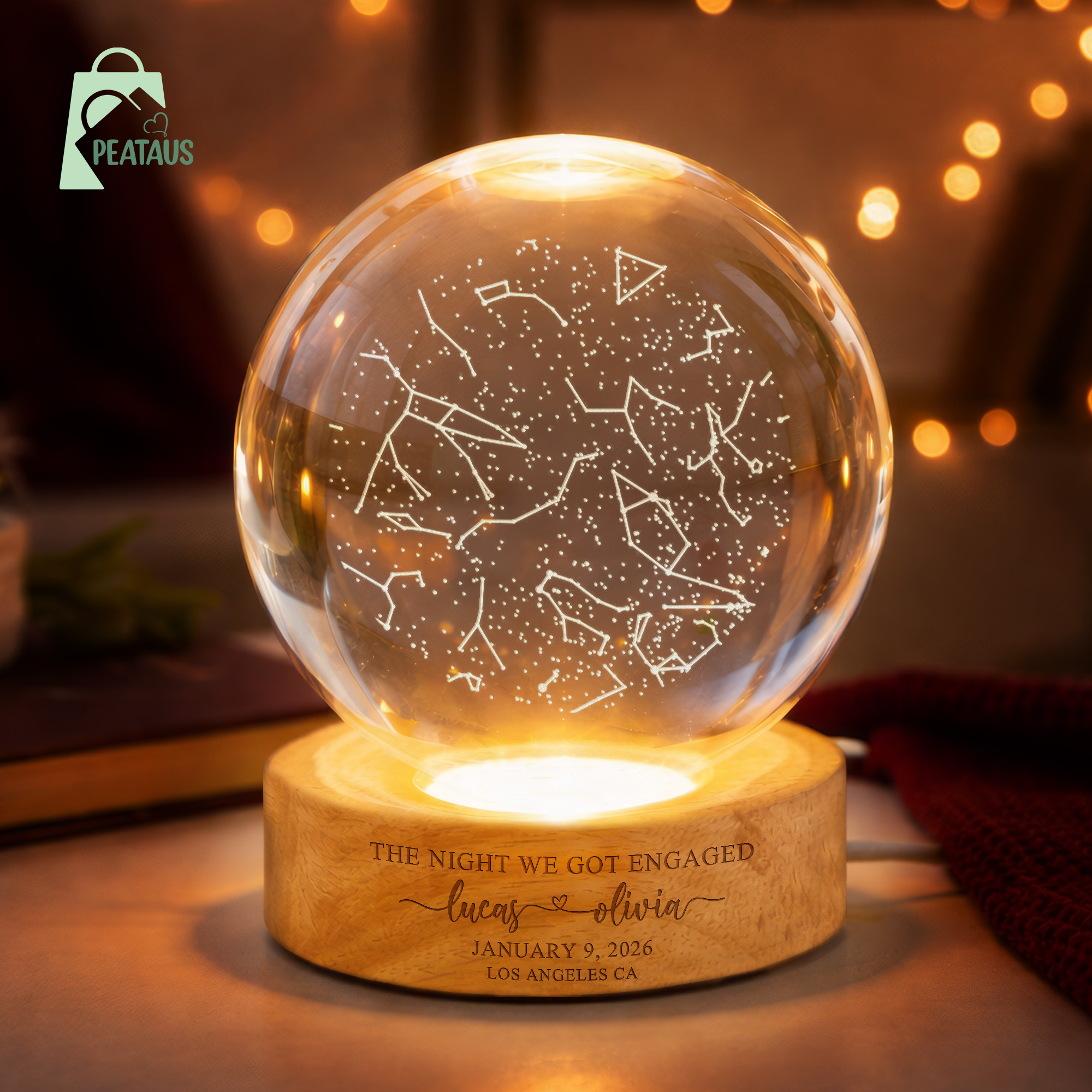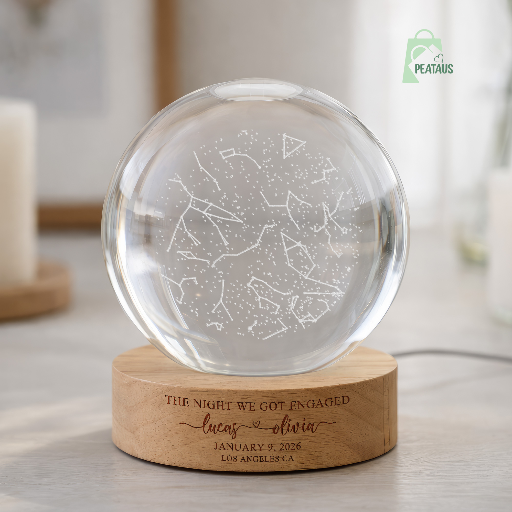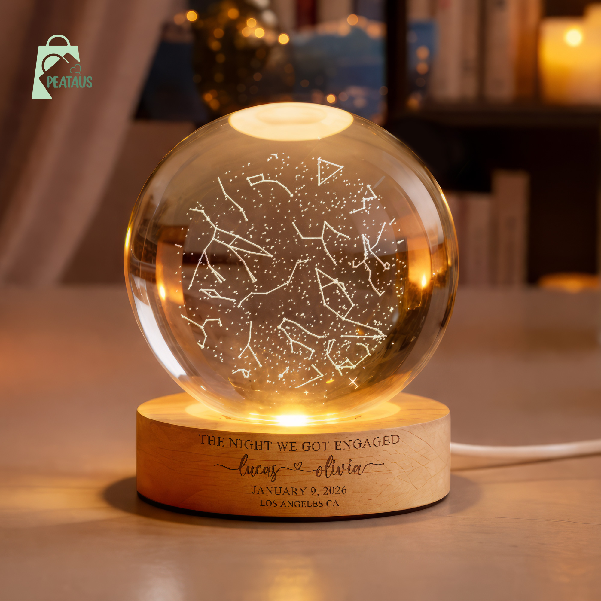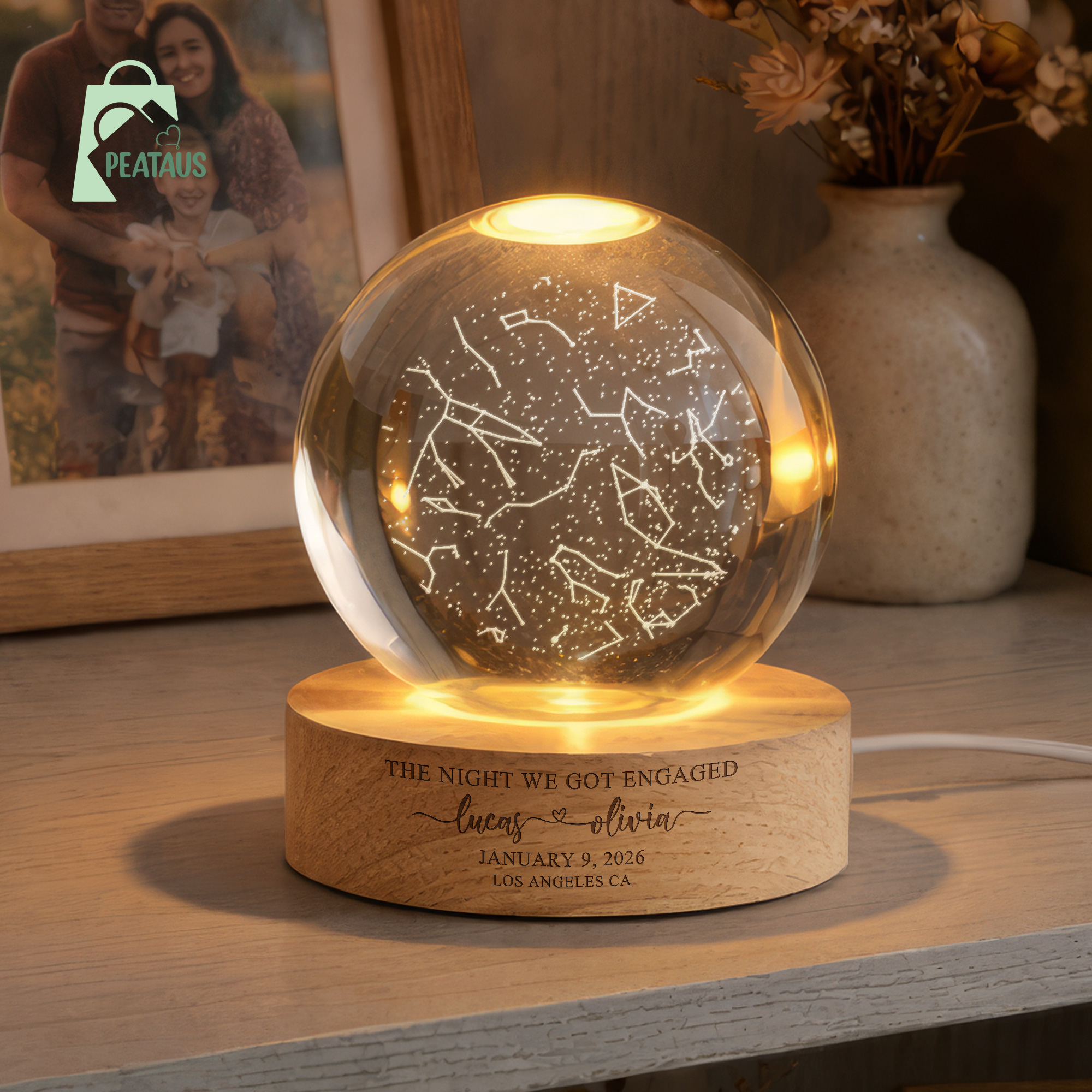 Custom Star Map Night Light: Engagement Constellation Lamp, Night Sky Gift, Couple Gift, Anniversary Gift,Star Map By Date,Crystal Ball Lamp