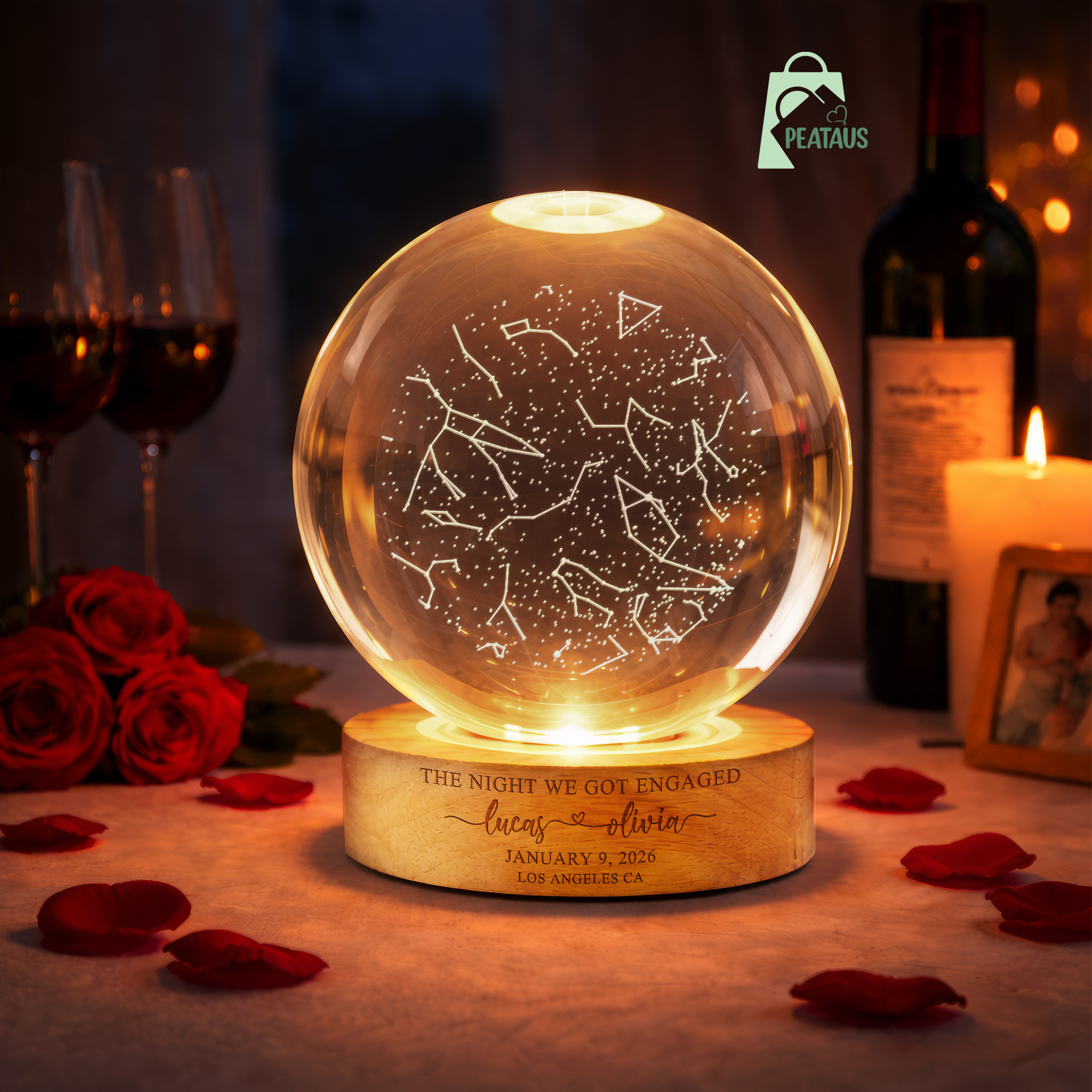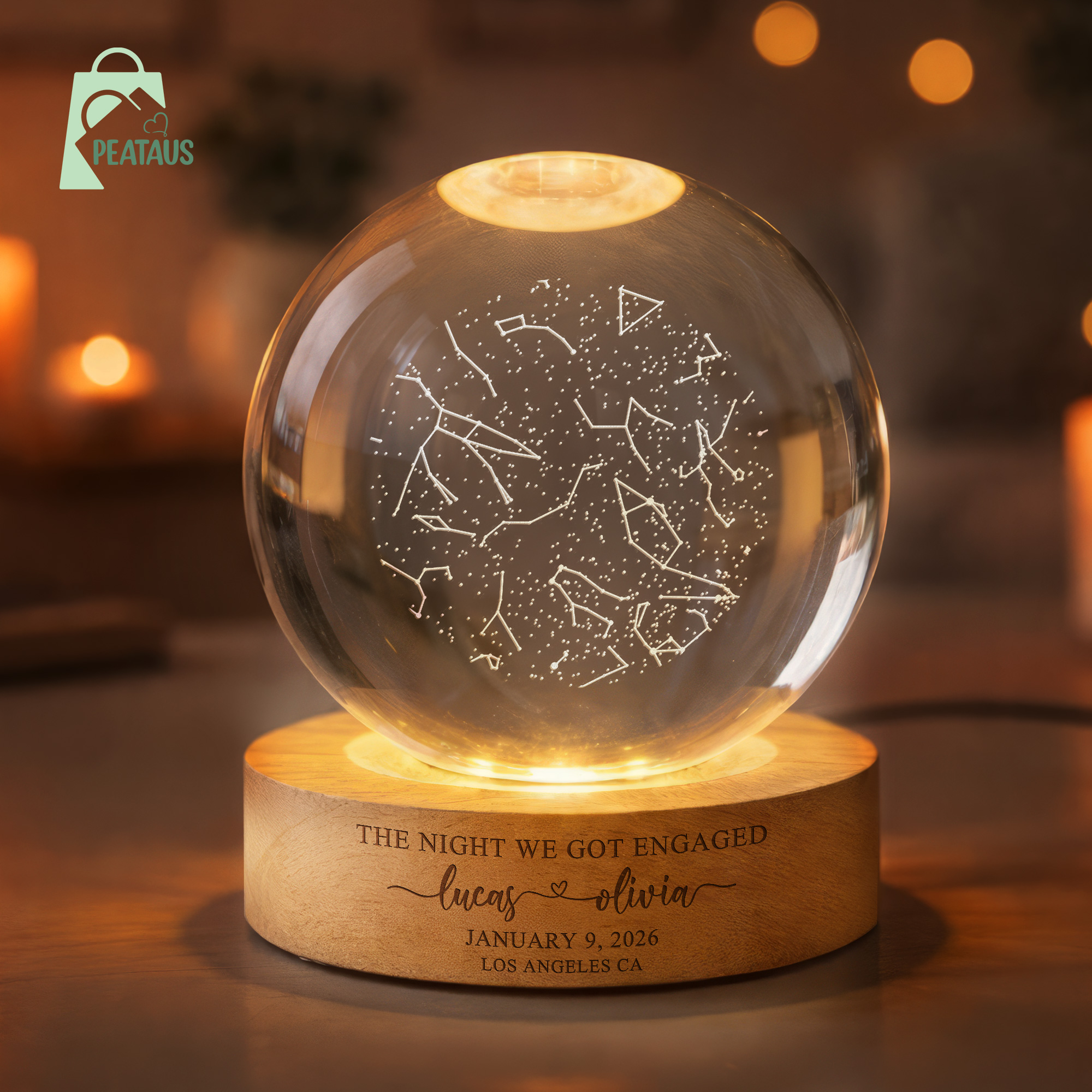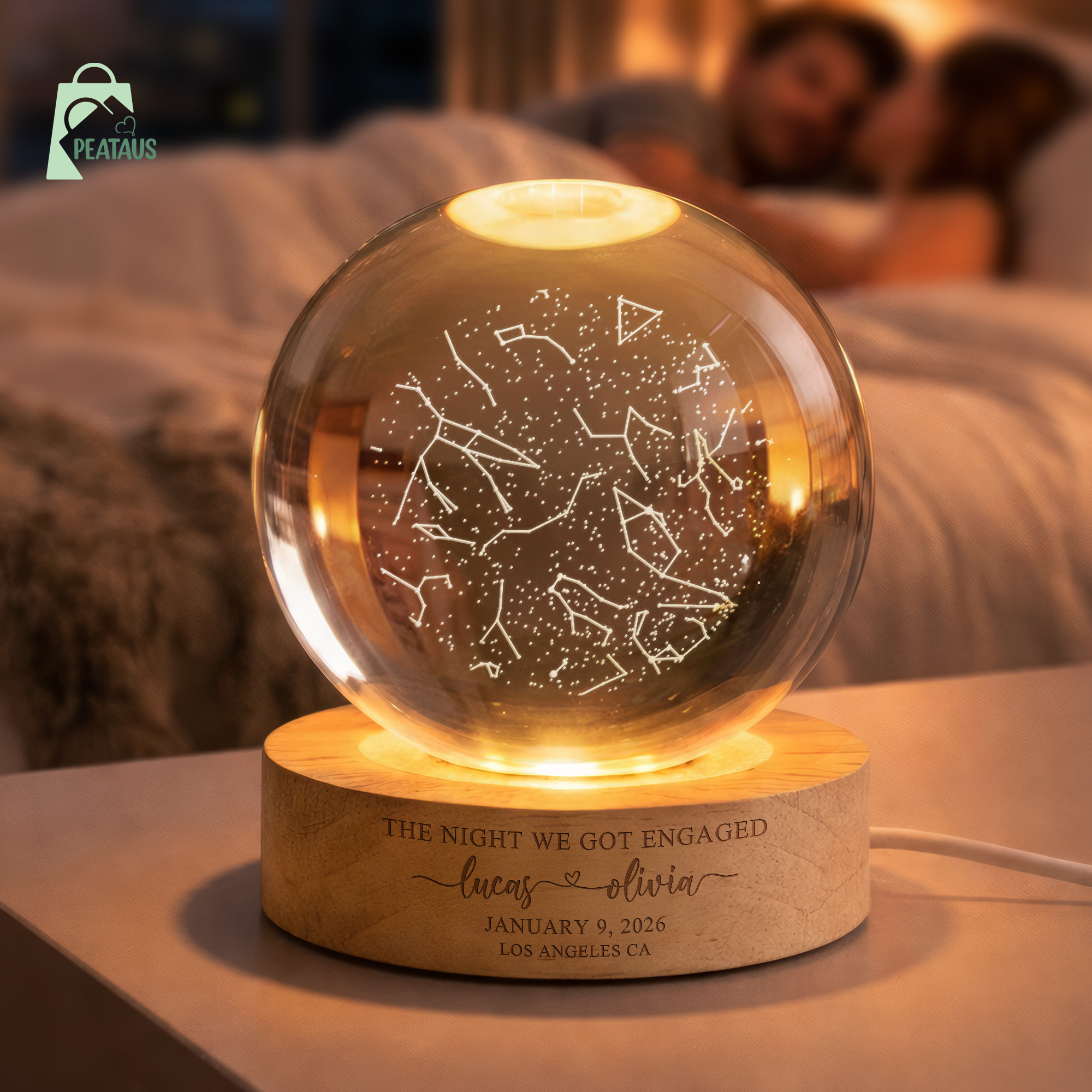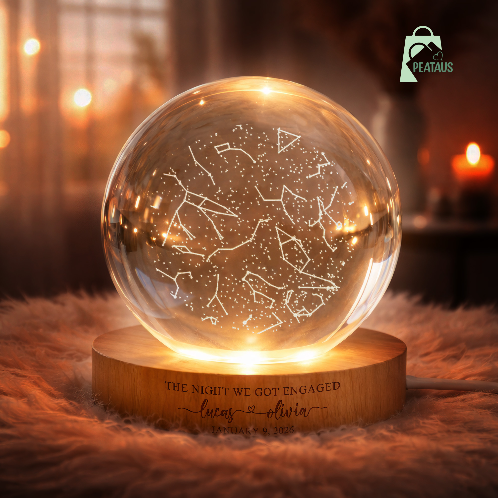 Custom Star Map Night Light: Engagement Constellation Lamp, Night Sky Gift, Couple Gift, Anniversary Gift,Star Map By Date,Crystal Ball Lamp