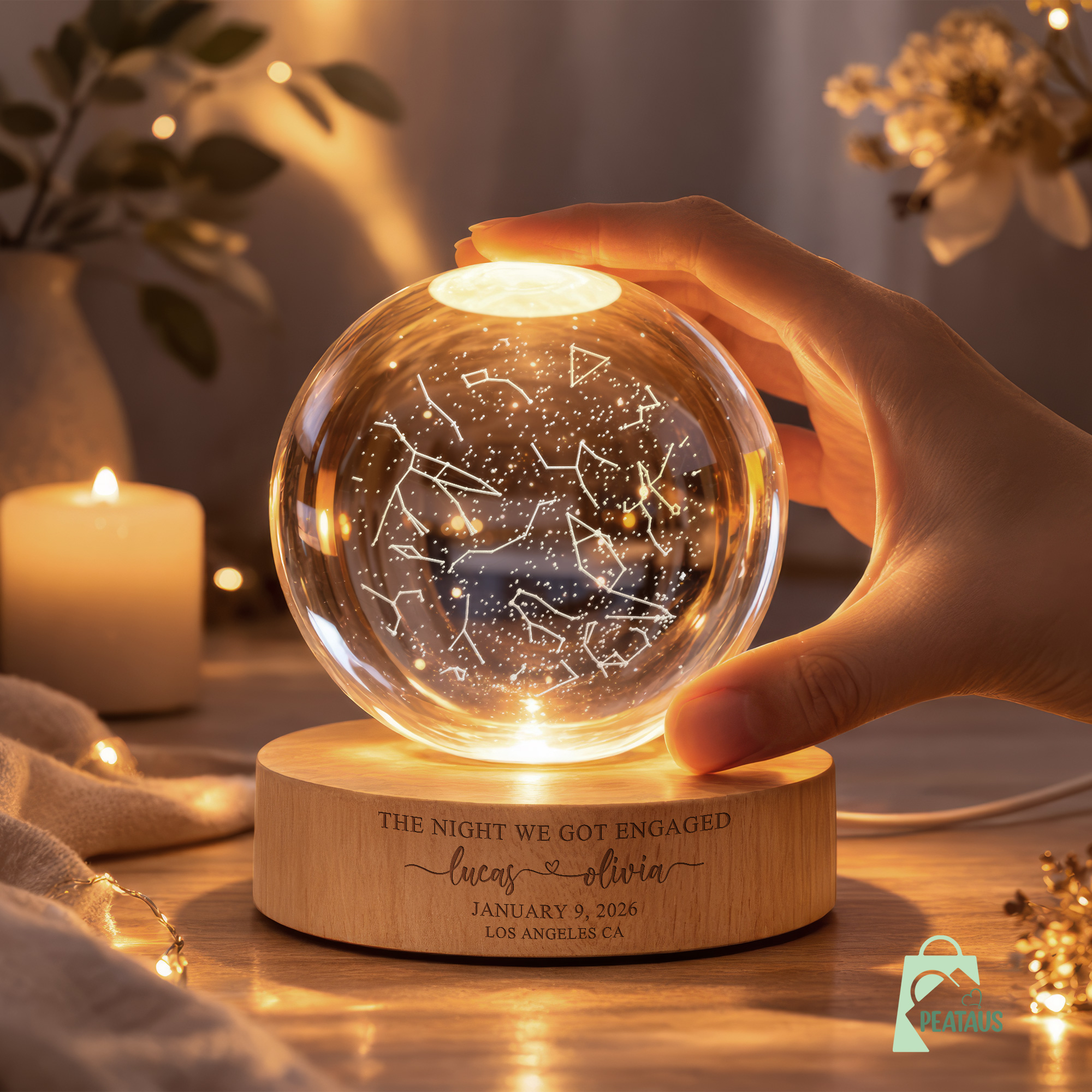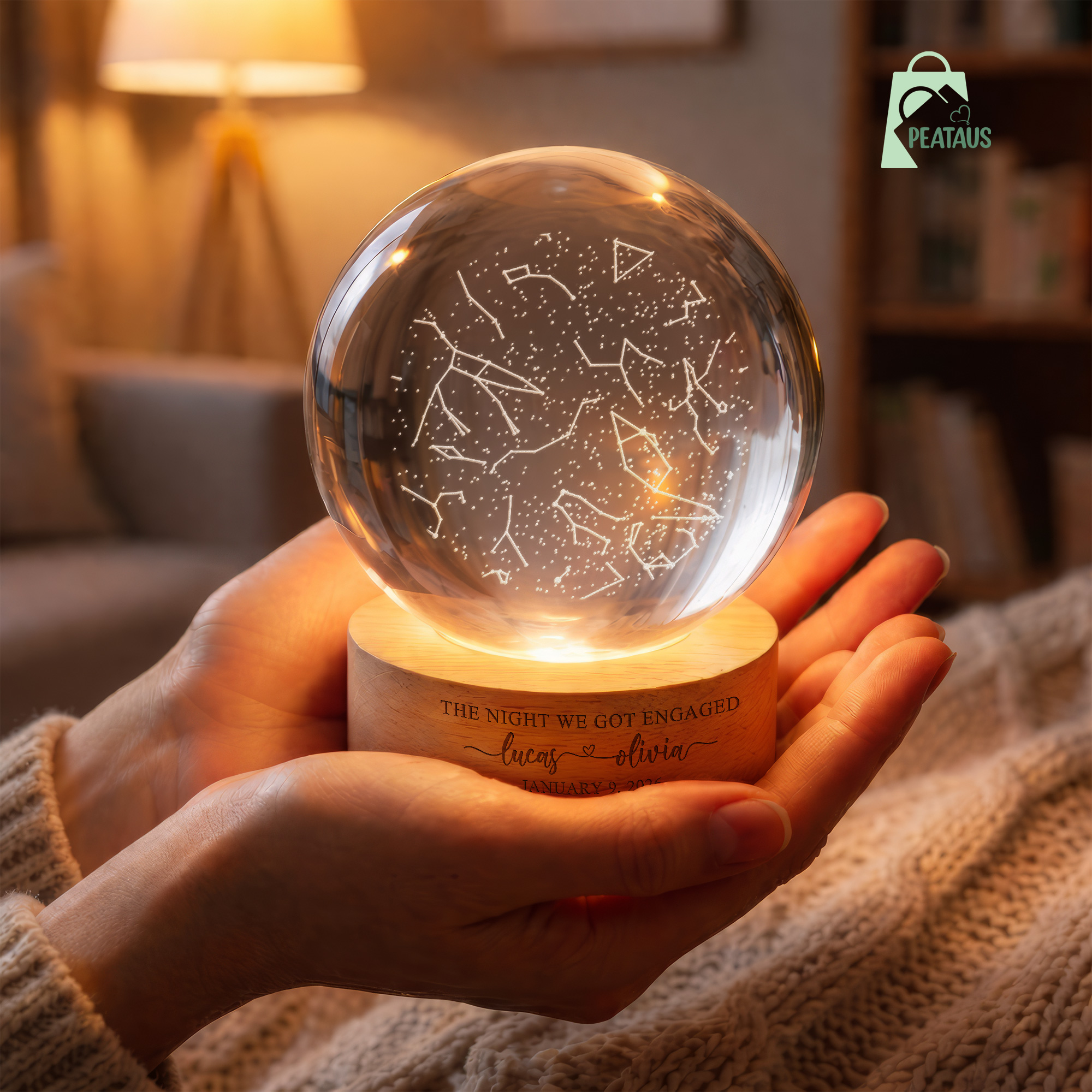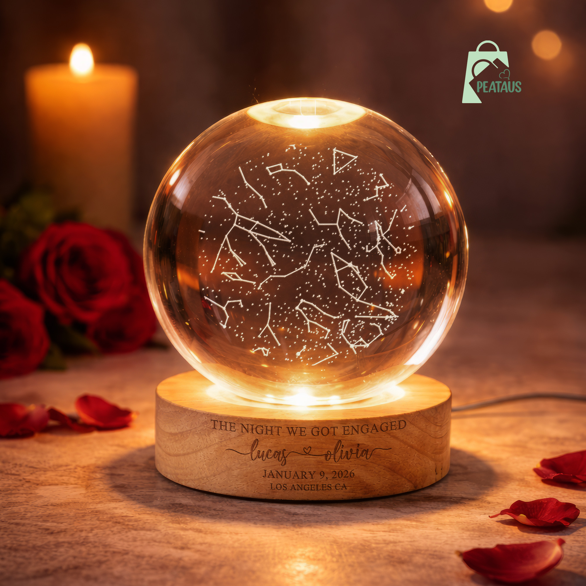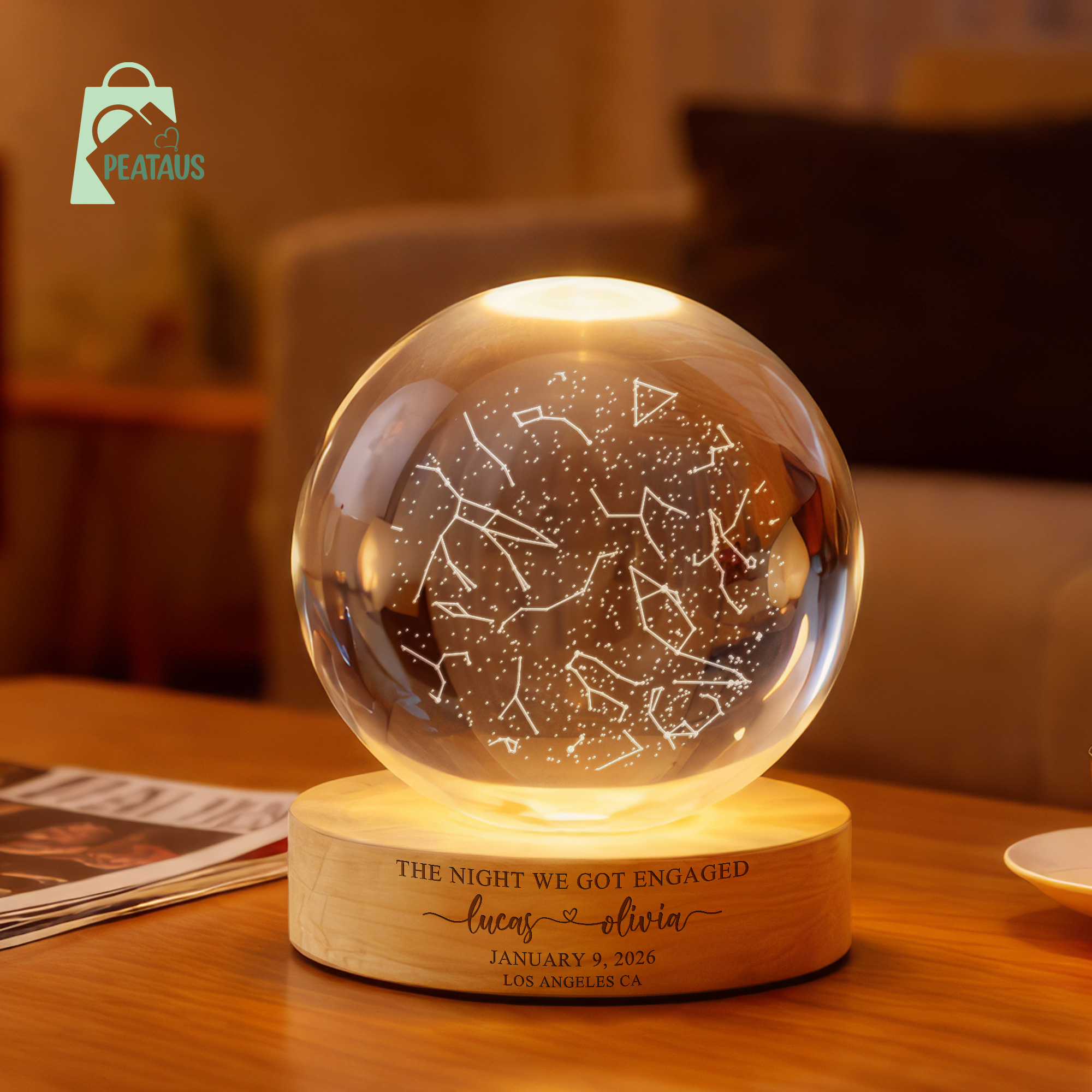 Custom Star Map Night Light: Engagement Constellation Lamp, Night Sky Gift, Couple Gift, Anniversary Gift,Star Map By Date,Crystal Ball Lamp