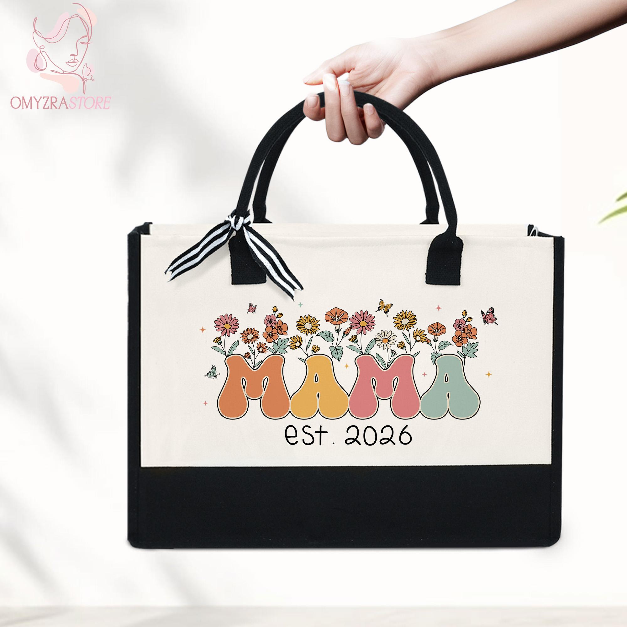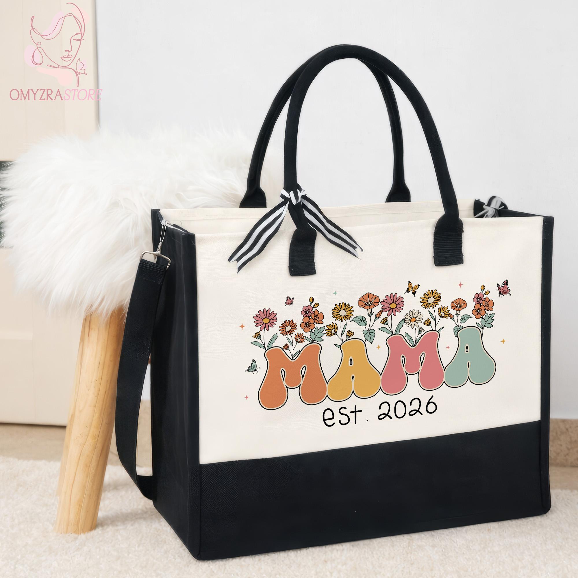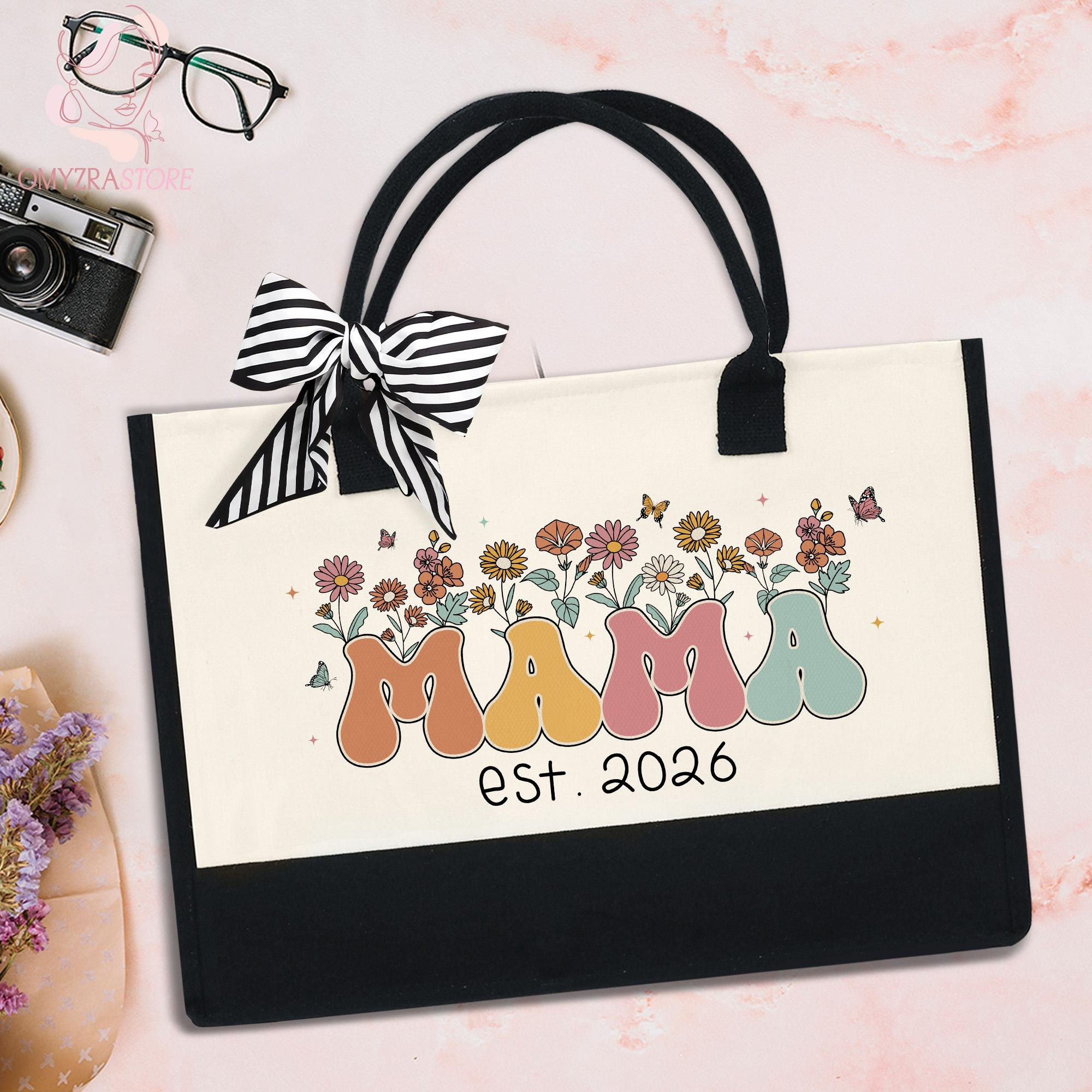 New Mama Tote Bag, Wildflowers Mama Bag, Personalized Mom Tote Bag, Mama Est 2026 Tote, Mothers Day Gift for New Mom Gift, Pregnancy Gift