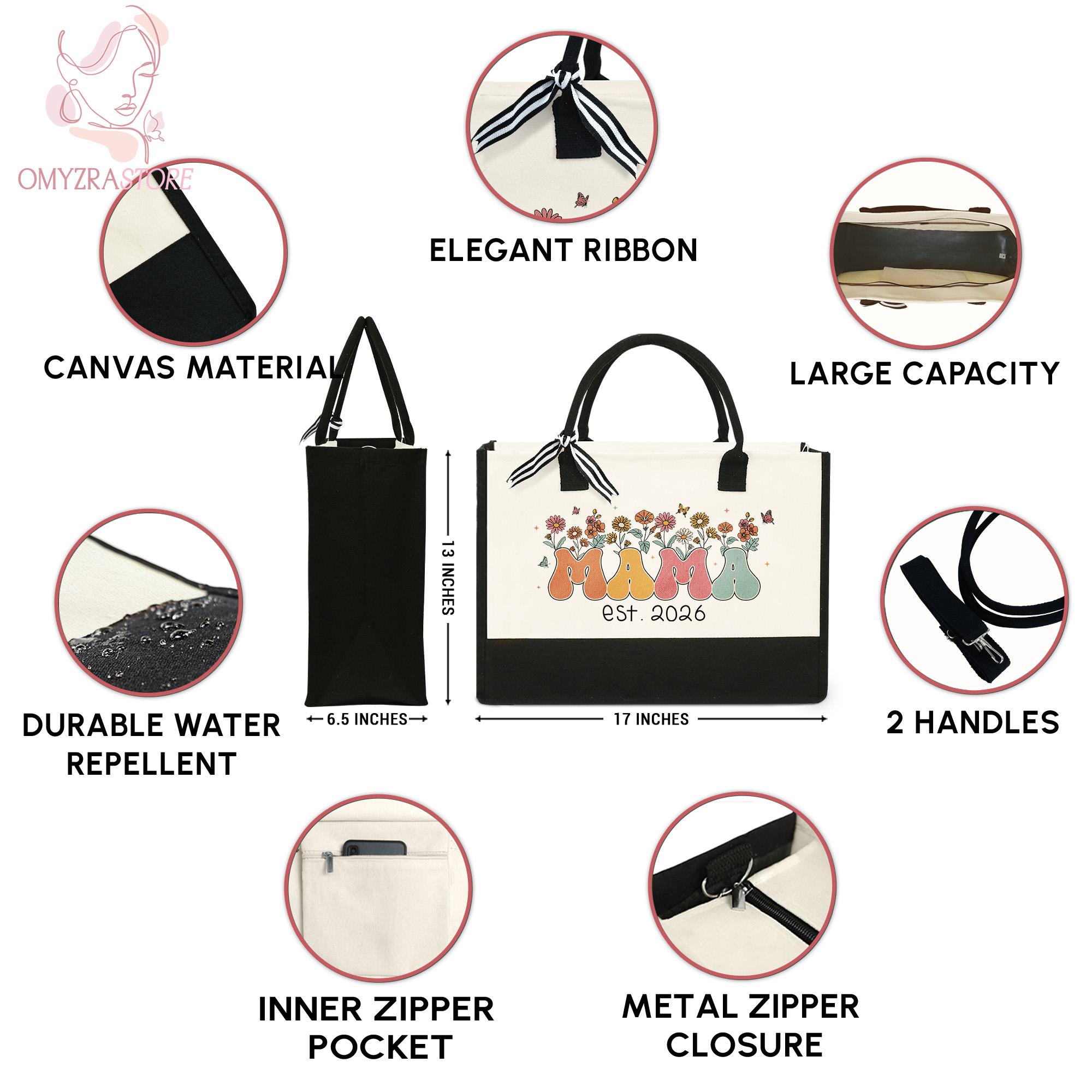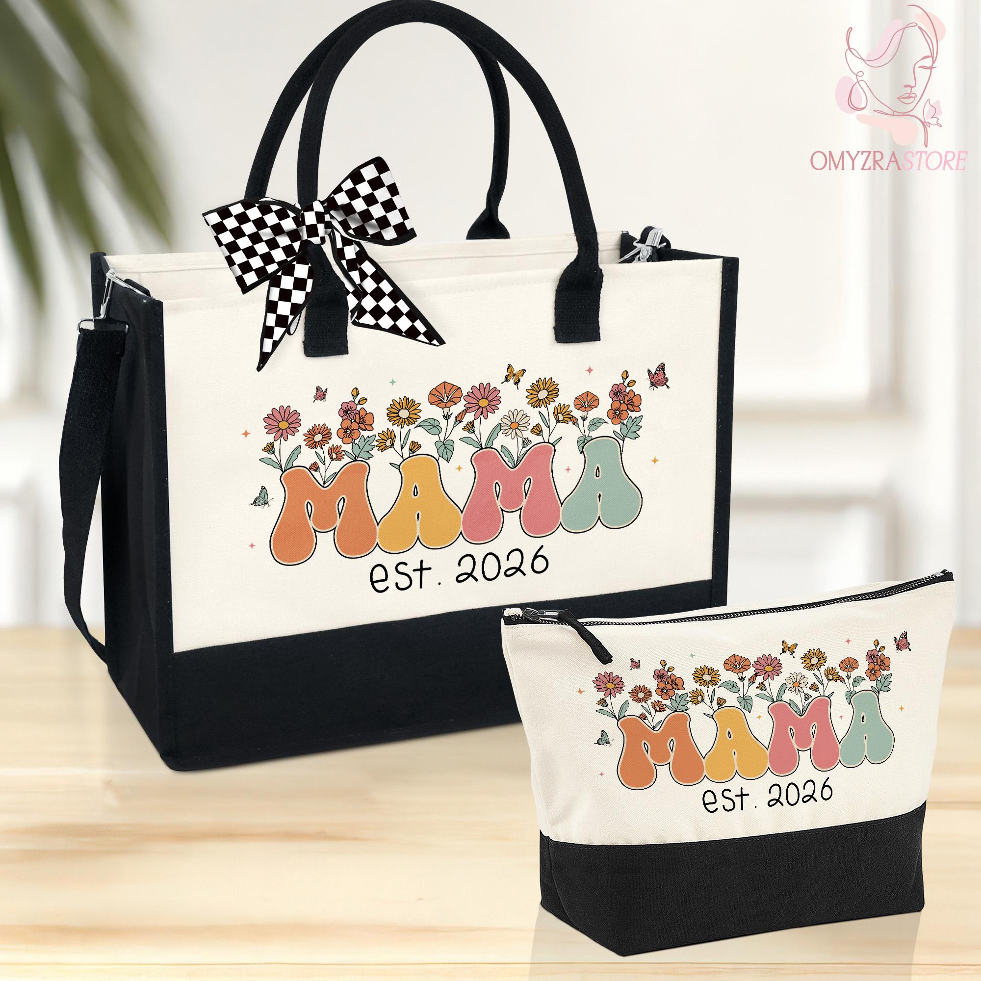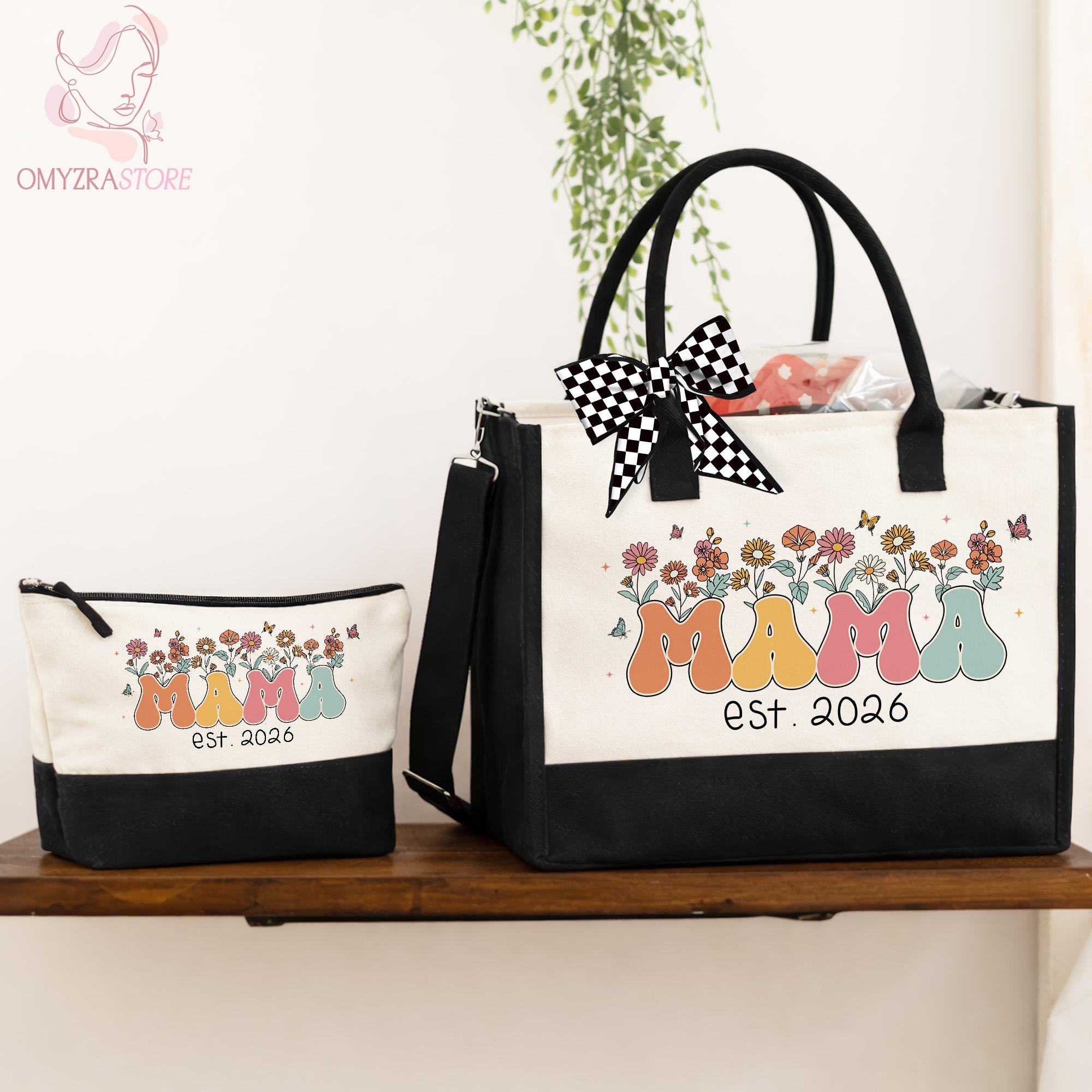 New Mama Tote Bag, Wildflowers Mama Bag, Personalized Mom Tote Bag, Mama Est 2026 Tote, Mothers Day Gift for New Mom Gift, Pregnancy Gift