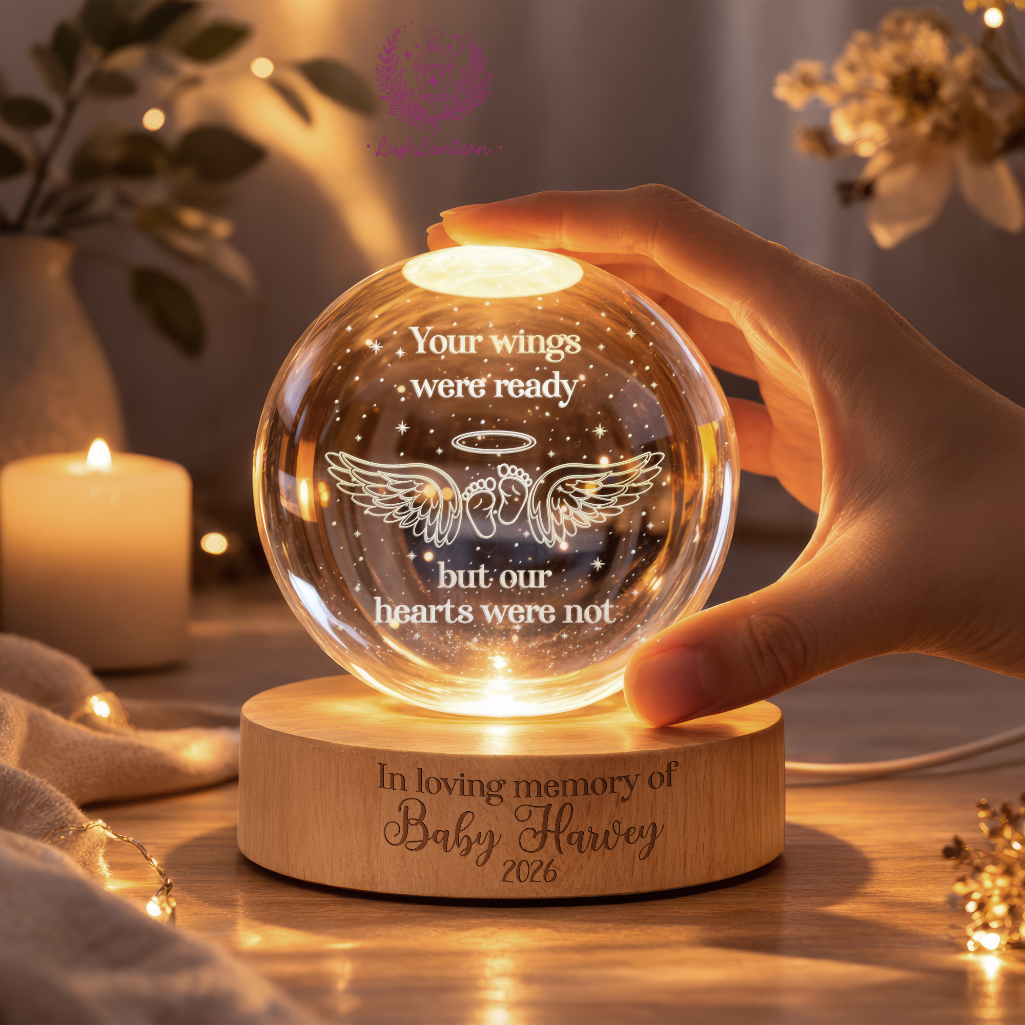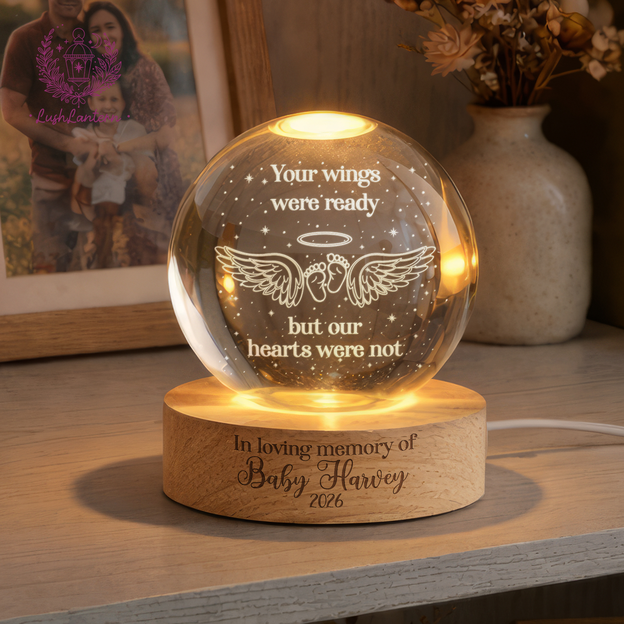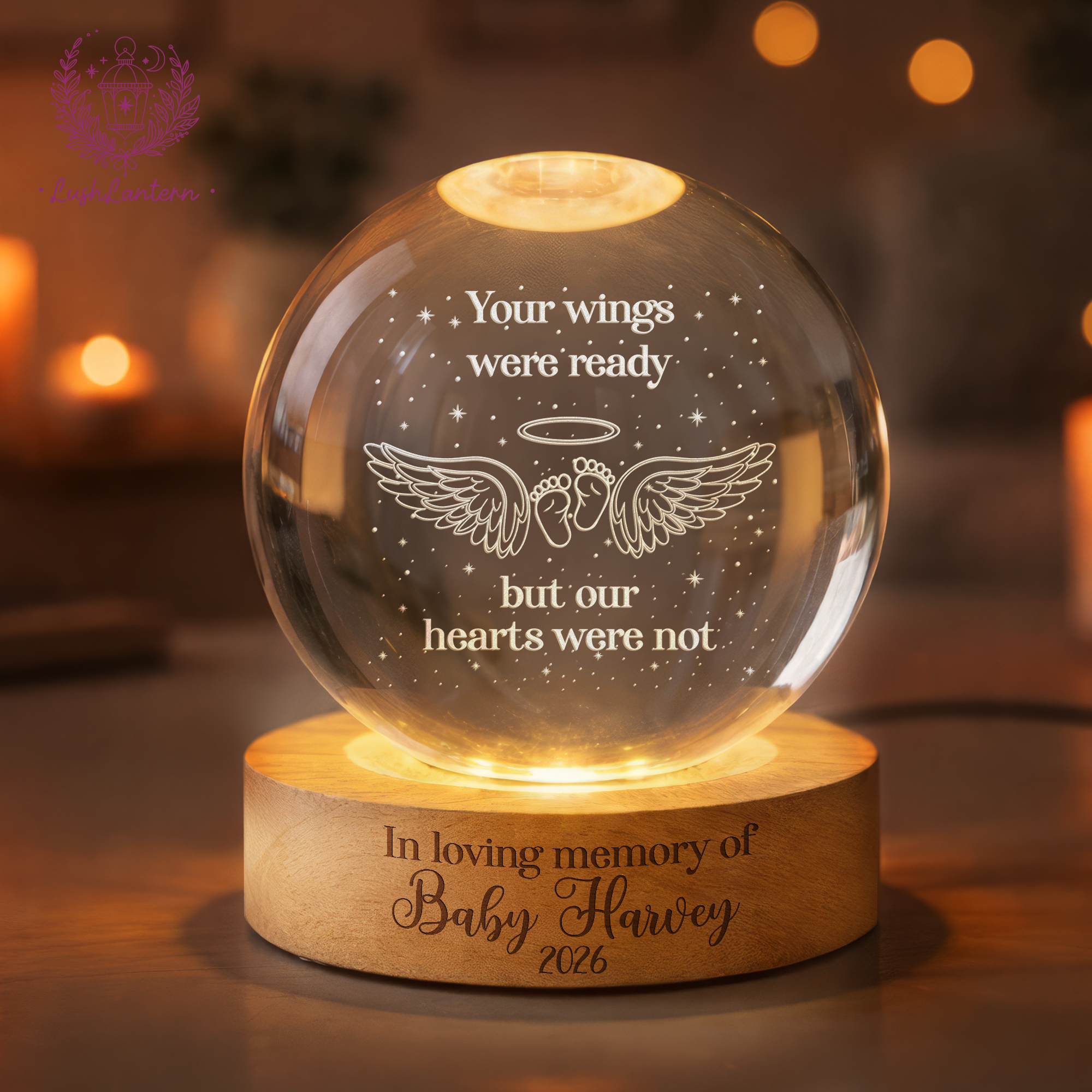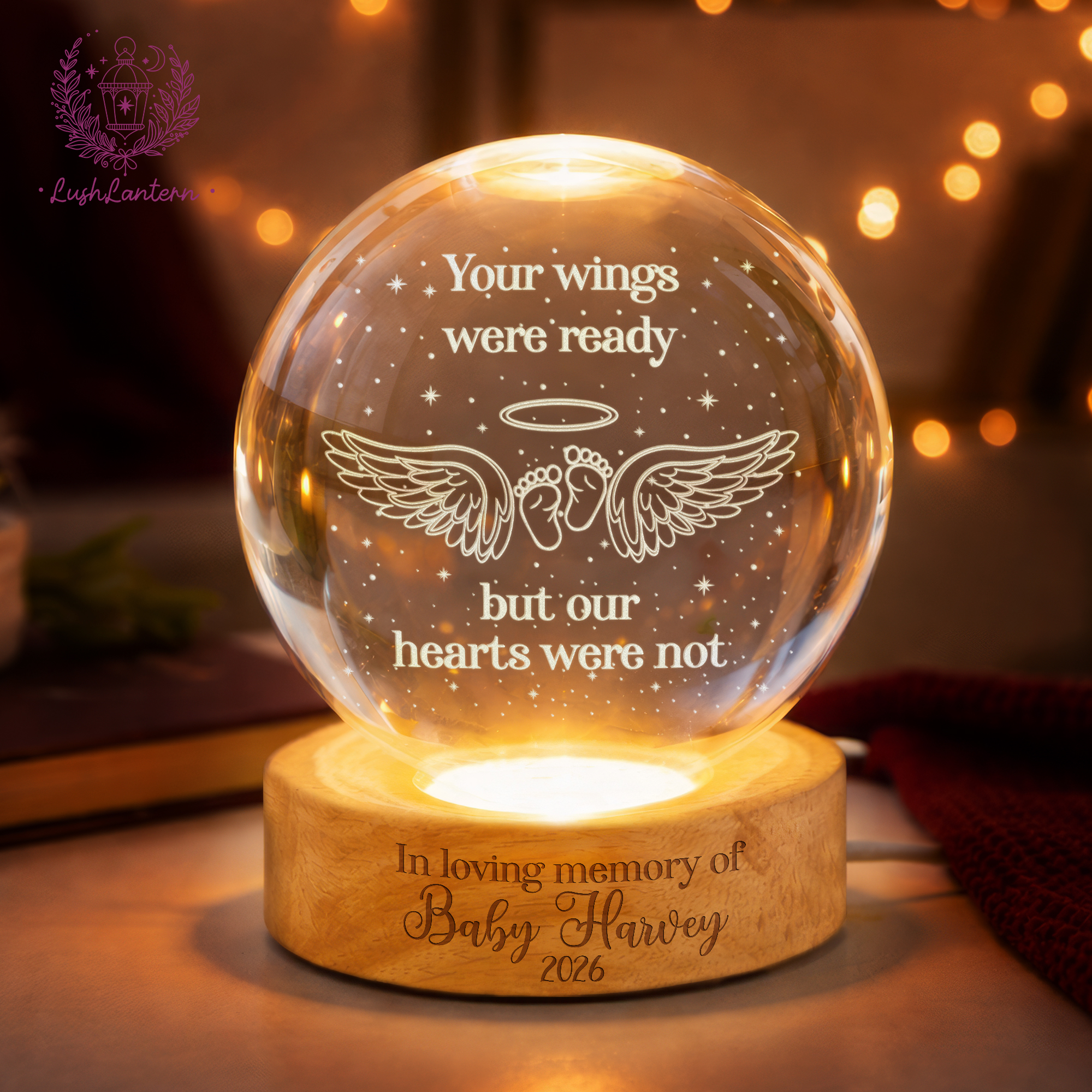 Personalized Baby Memorial Night Light, Miscarriage Memorial Crystal Ball Night Light, Angel Baby Memorial Gifts, Baby Loss, Sympathy Gift