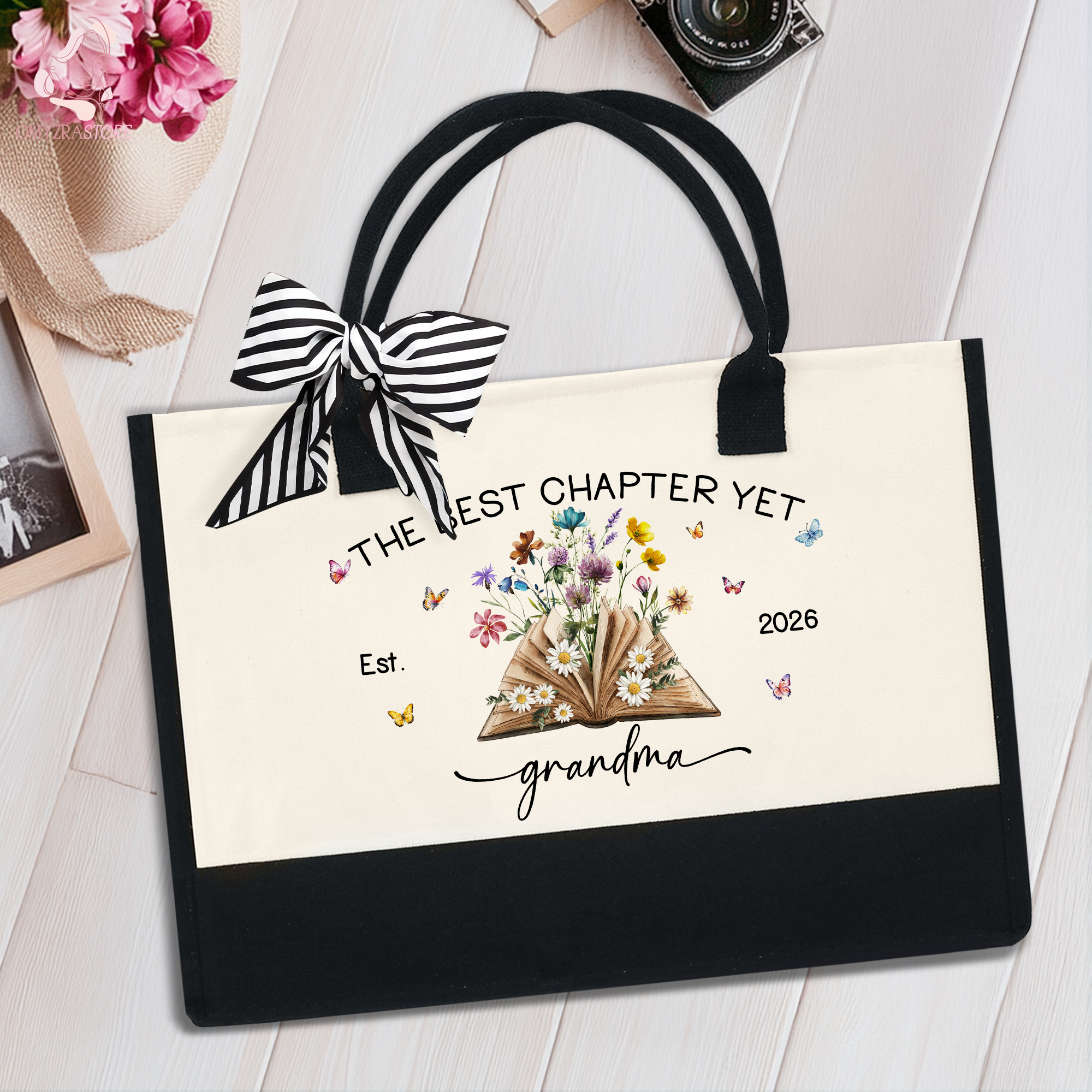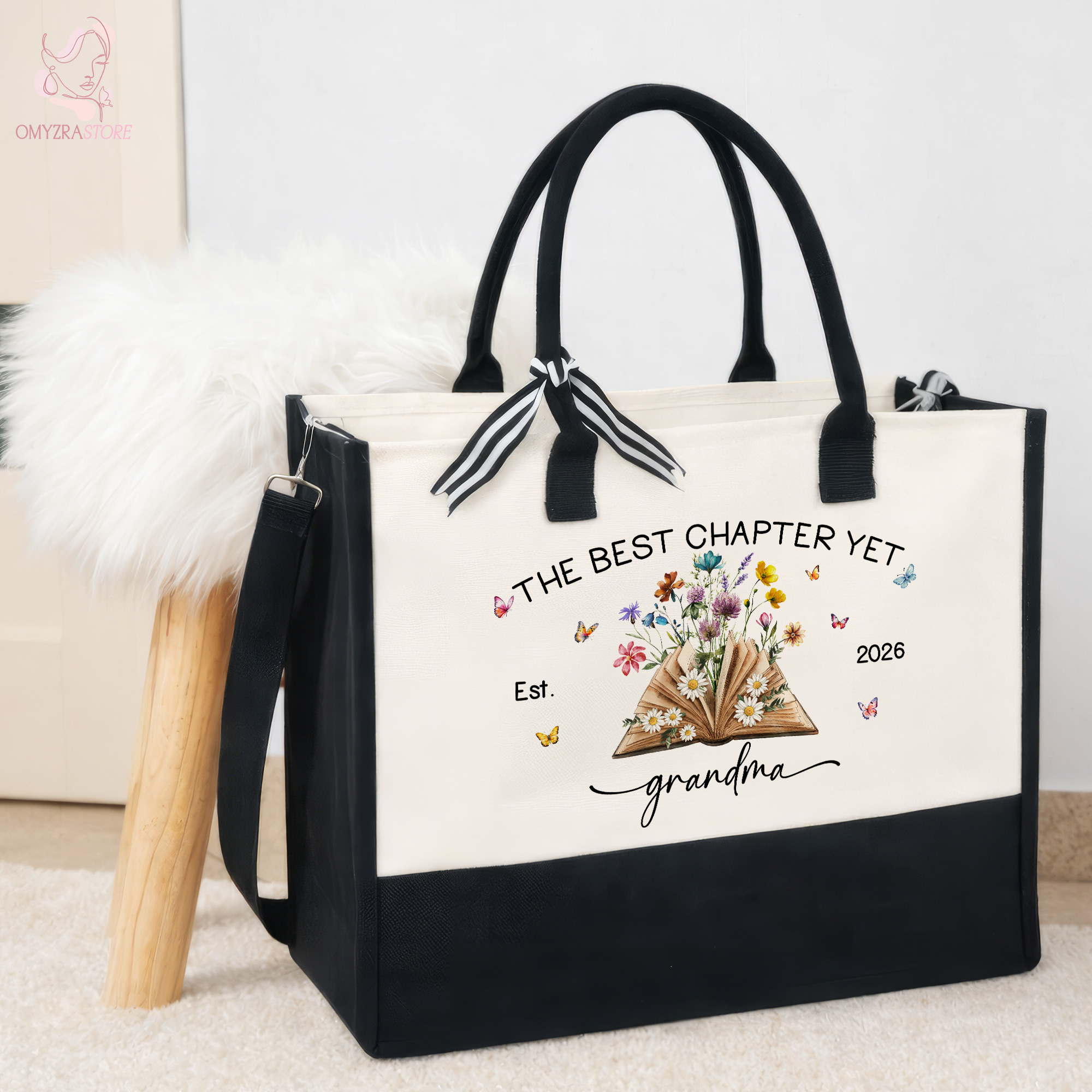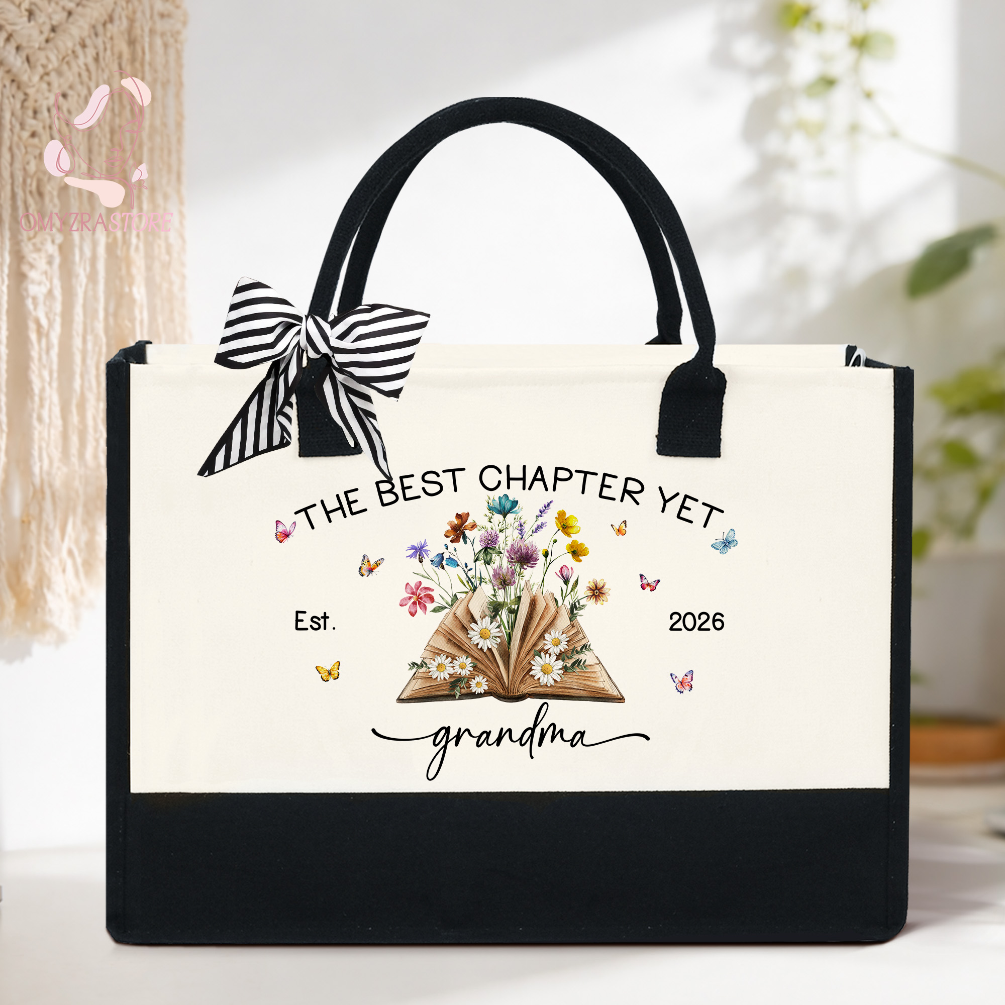 Personalized Floral Grandma Tote Bag, Grandma Est New Grandma Bag, First Time Grandma Gift, Mothers Day Gift for Grandma, Grandma To Be Gift