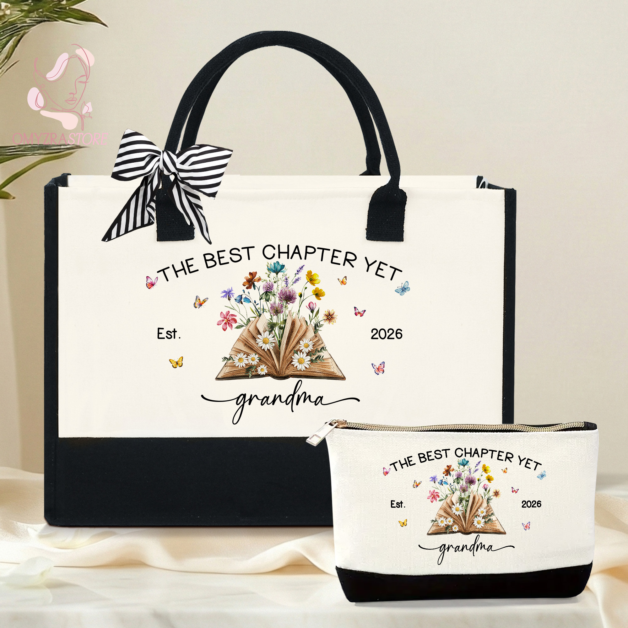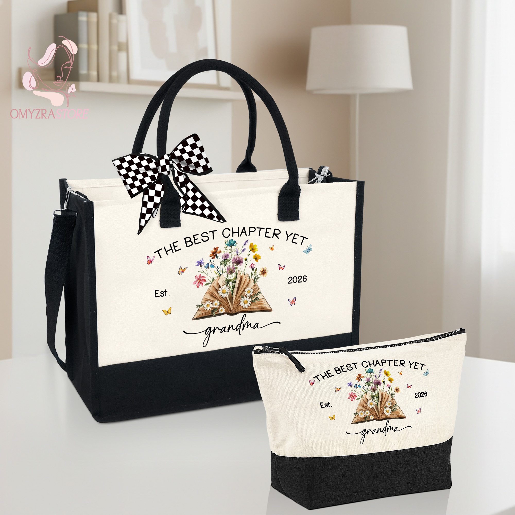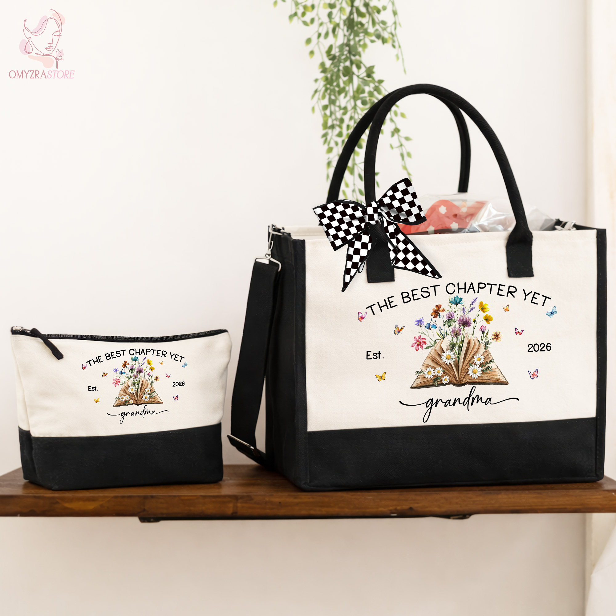 Personalized Floral Grandma Tote Bag, Grandma Est New Grandma Bag, First Time Grandma Gift, Mothers Day Gift for Grandma, Grandma To Be Gift