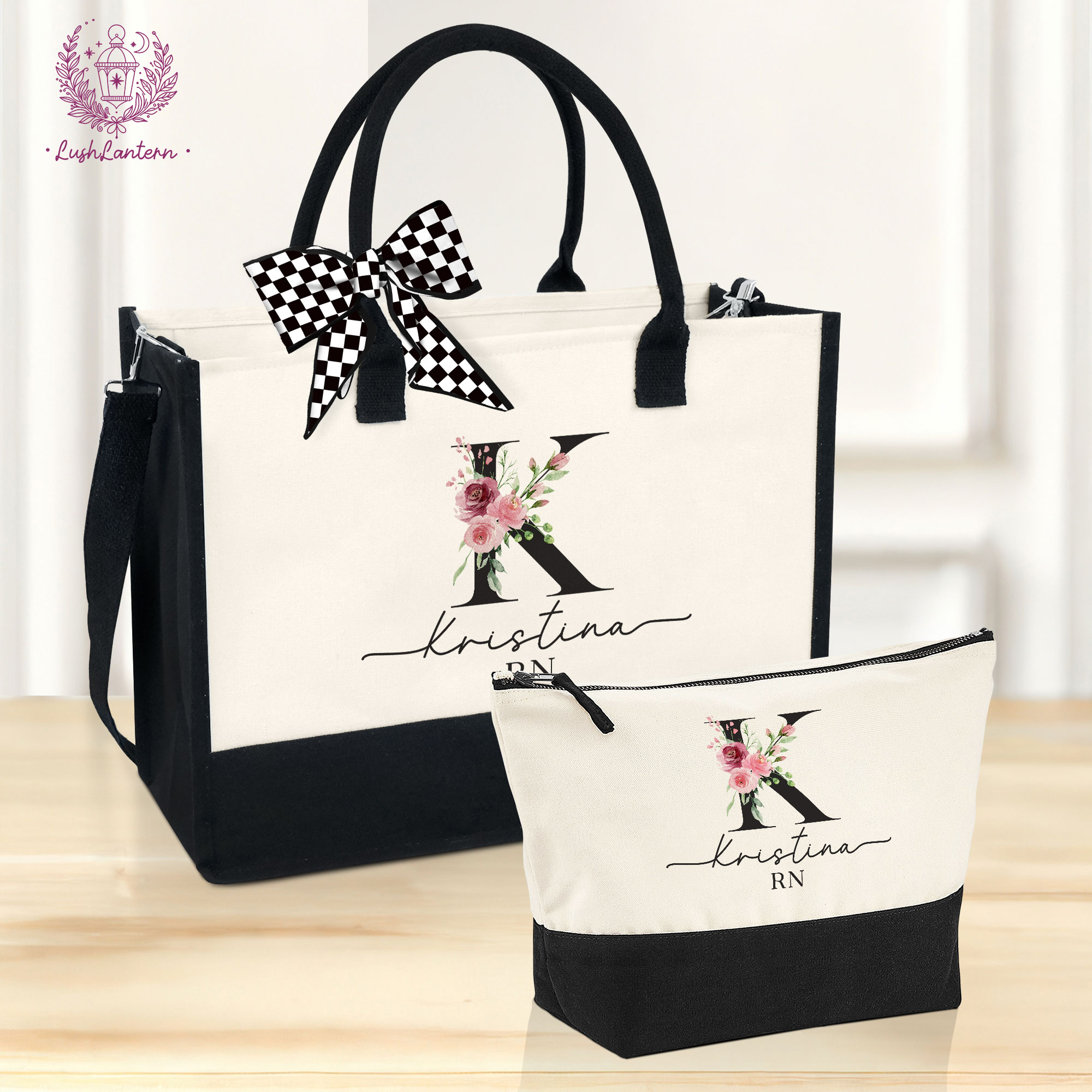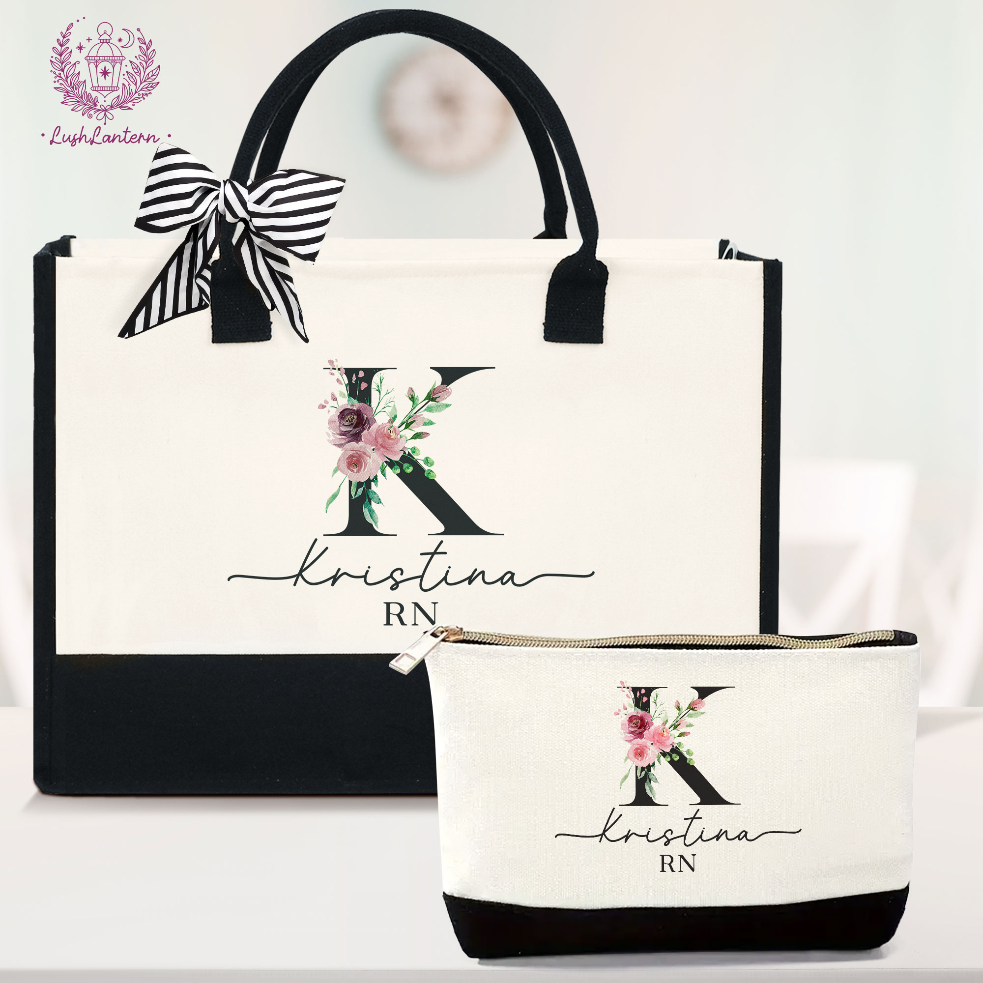 Personalized Nurse Name And Monogram Tote Bag,Nurse Gift,Nurse Graduation Gift,Nurse Pencil Pouch, Nurse Appreciation Week,Name Cosmetic Bag