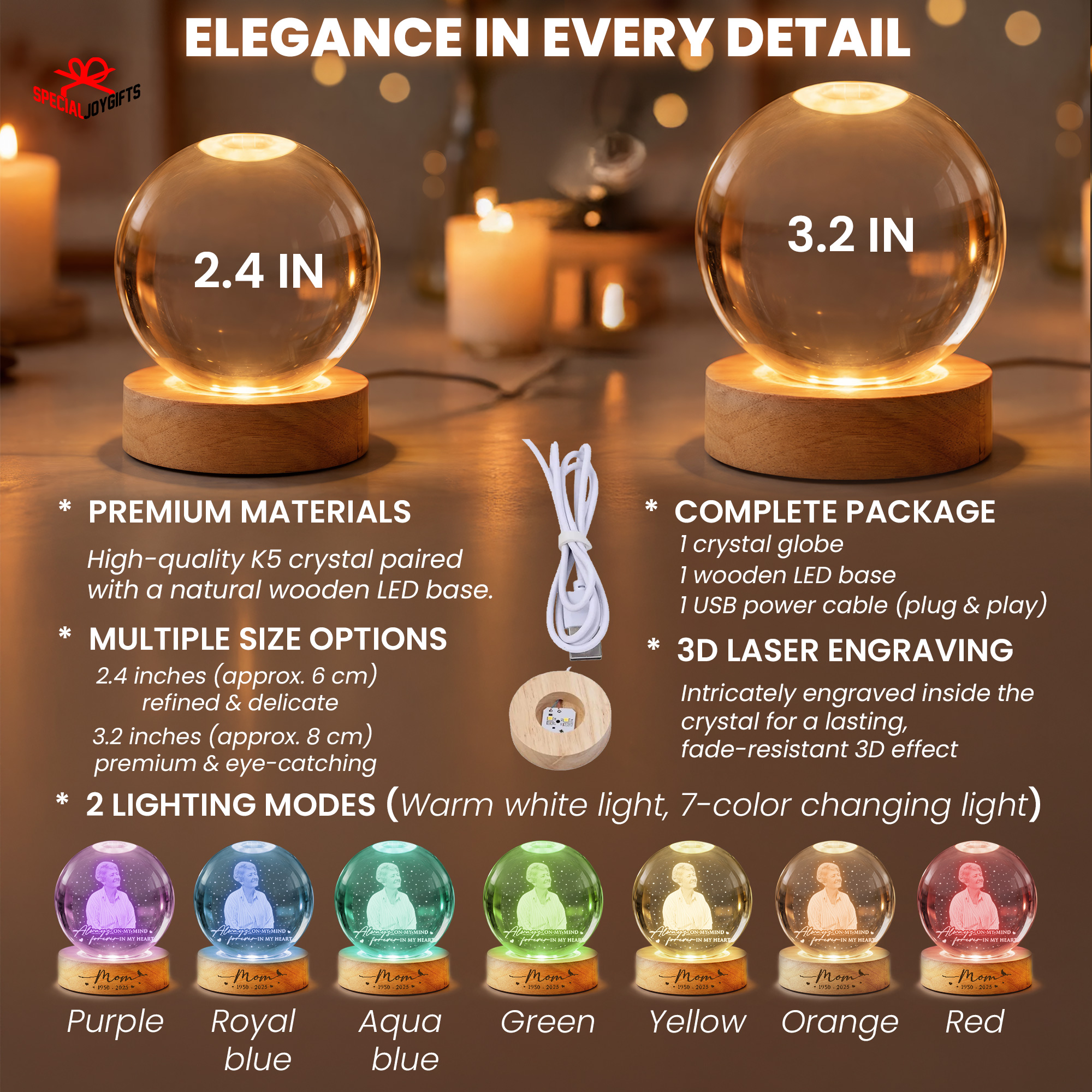 Personalized Photo Memorial Night Light, Photo Crystal Ball Night Light, Loss of Mom Dad, Memorial Gift, Memorial Picture Gift,Sympathy Gift