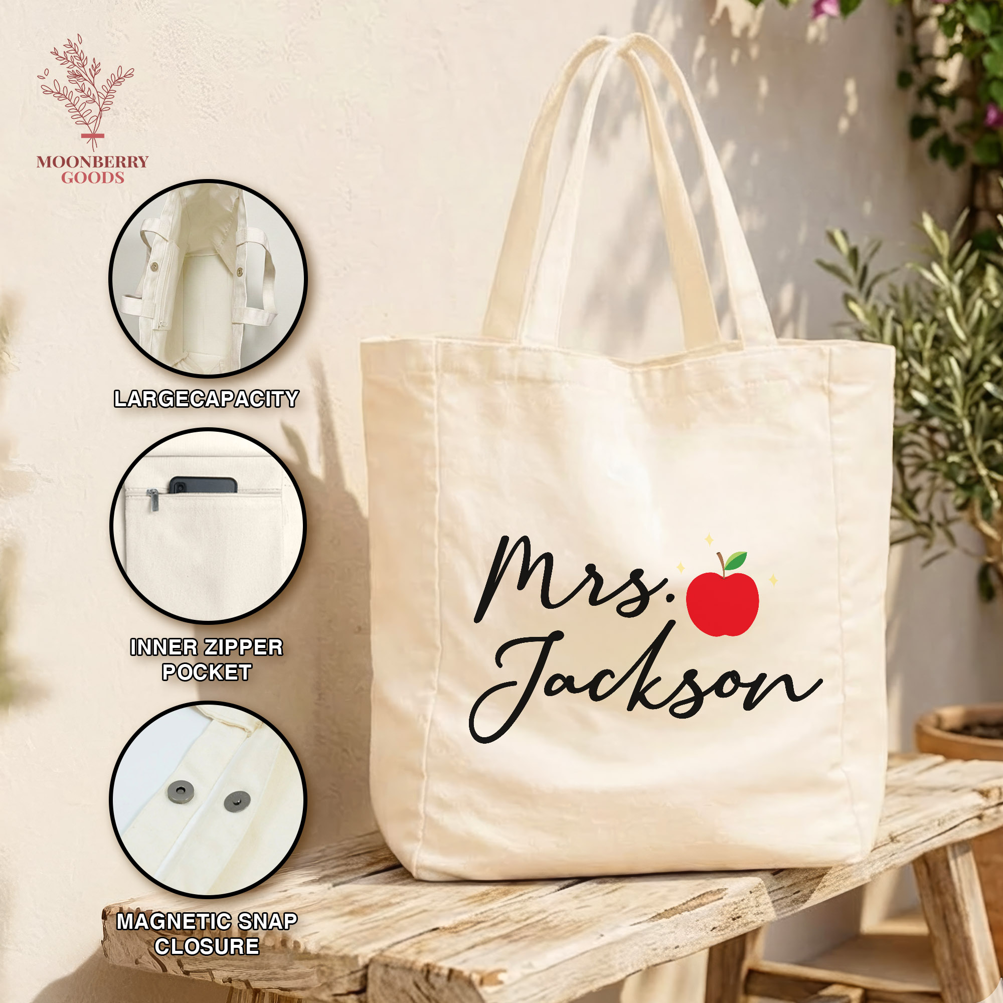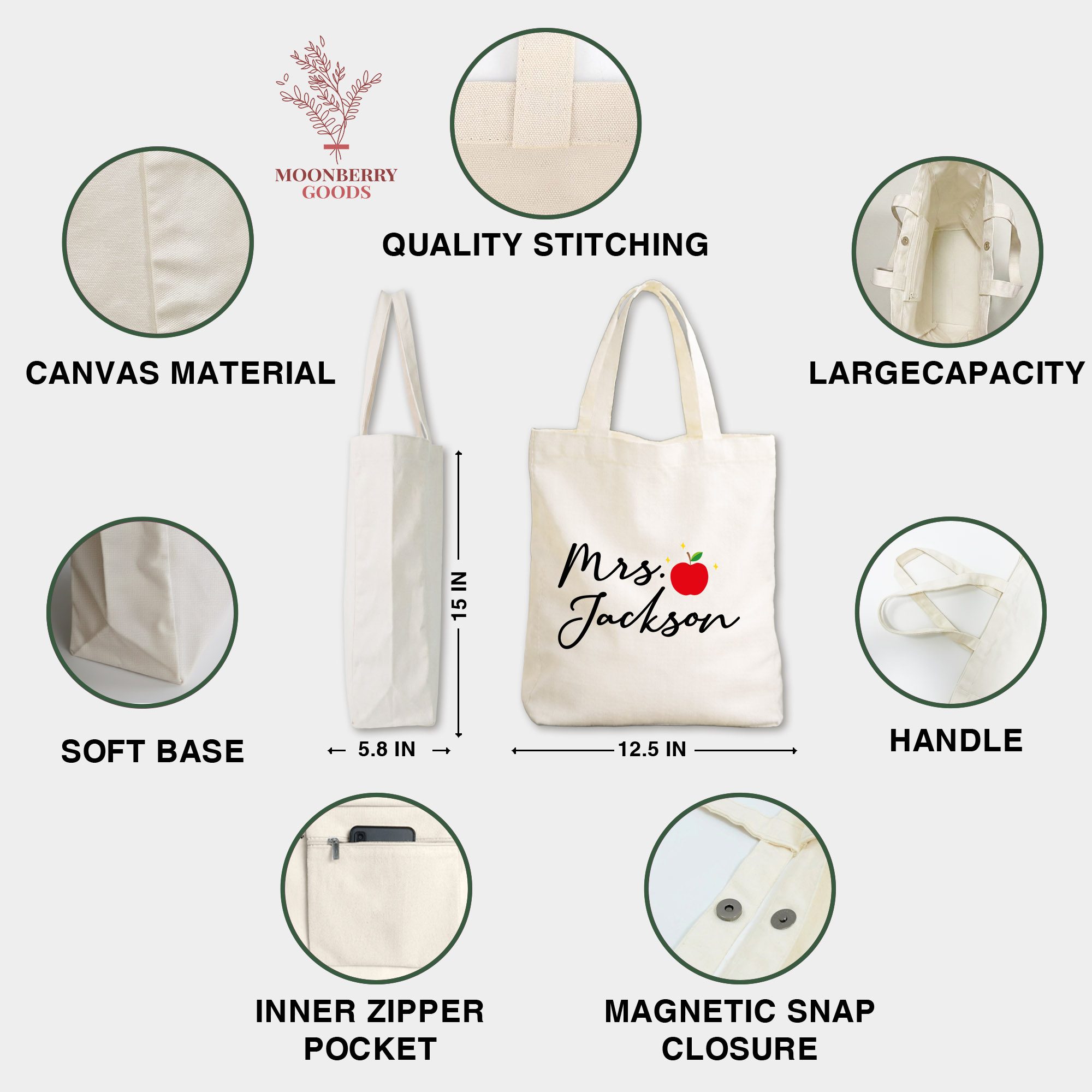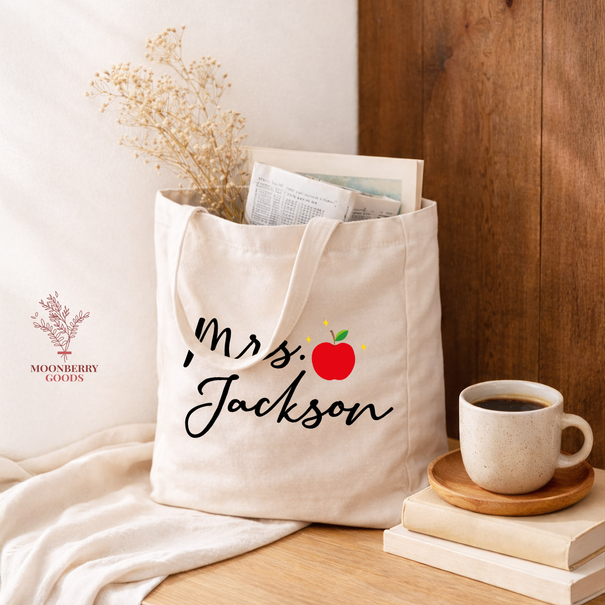 Personalized Teacher Tote Bag with Name, Custom Teacher Tote, Teacher Gift Bag, School Supplies Classroom Bag, Teacher Appreciation Gift
