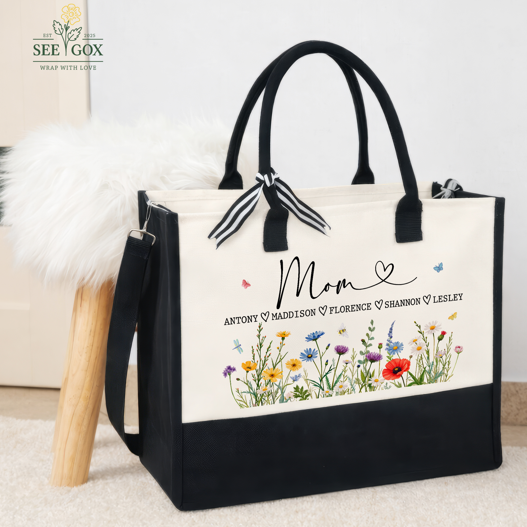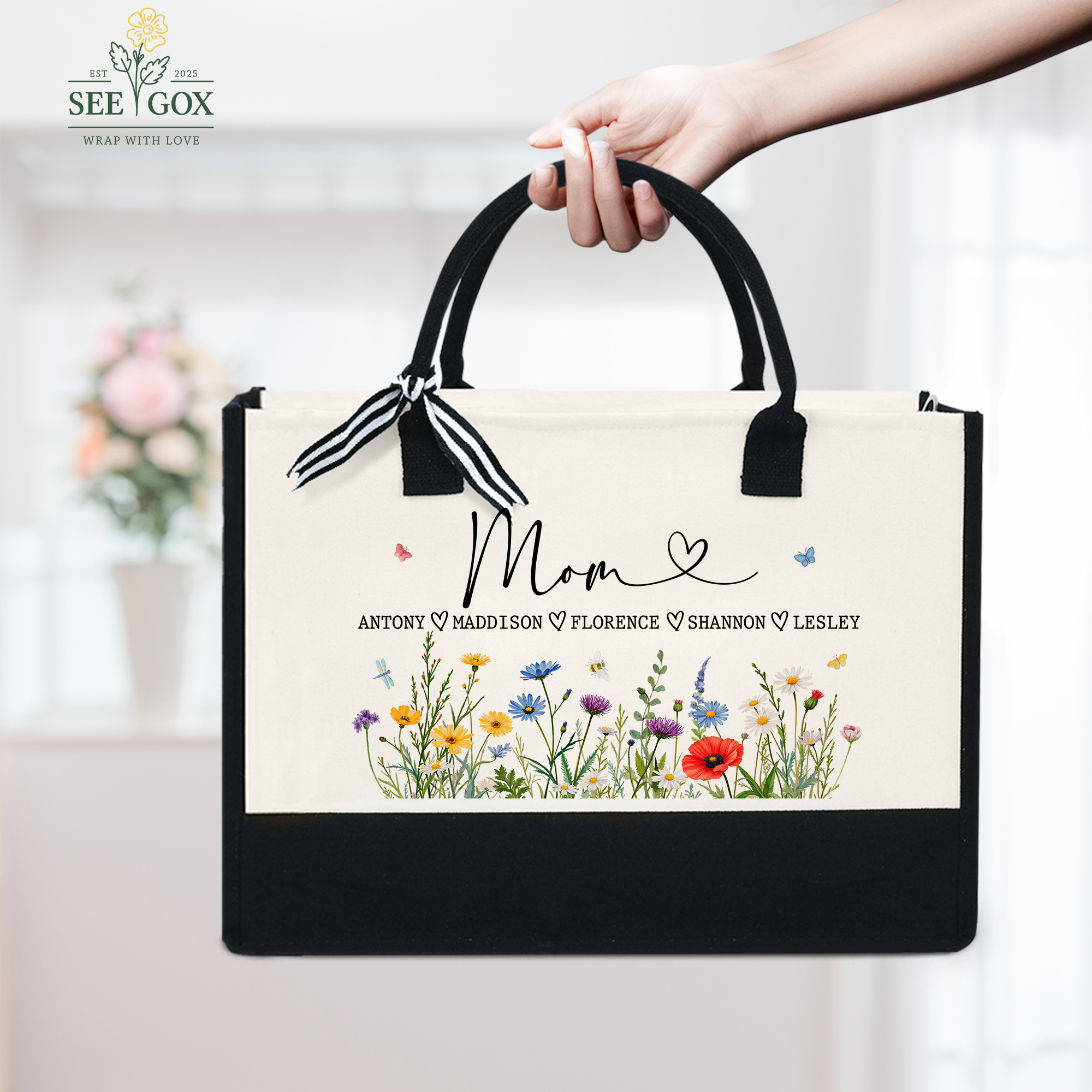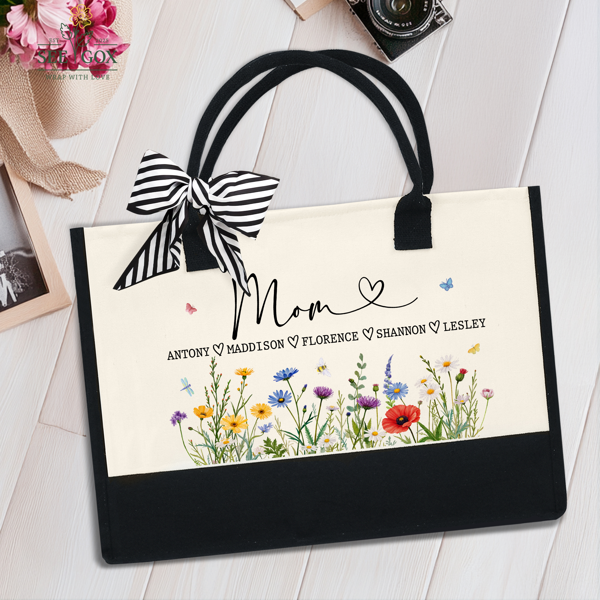 Personalized Wildflowers Mom Tote Bag, Gifts For Mom, Grandma Gift, Mother’s Day Gift, Gigi Gift, New Grandma Gift, Nana gift, Birthday Gift