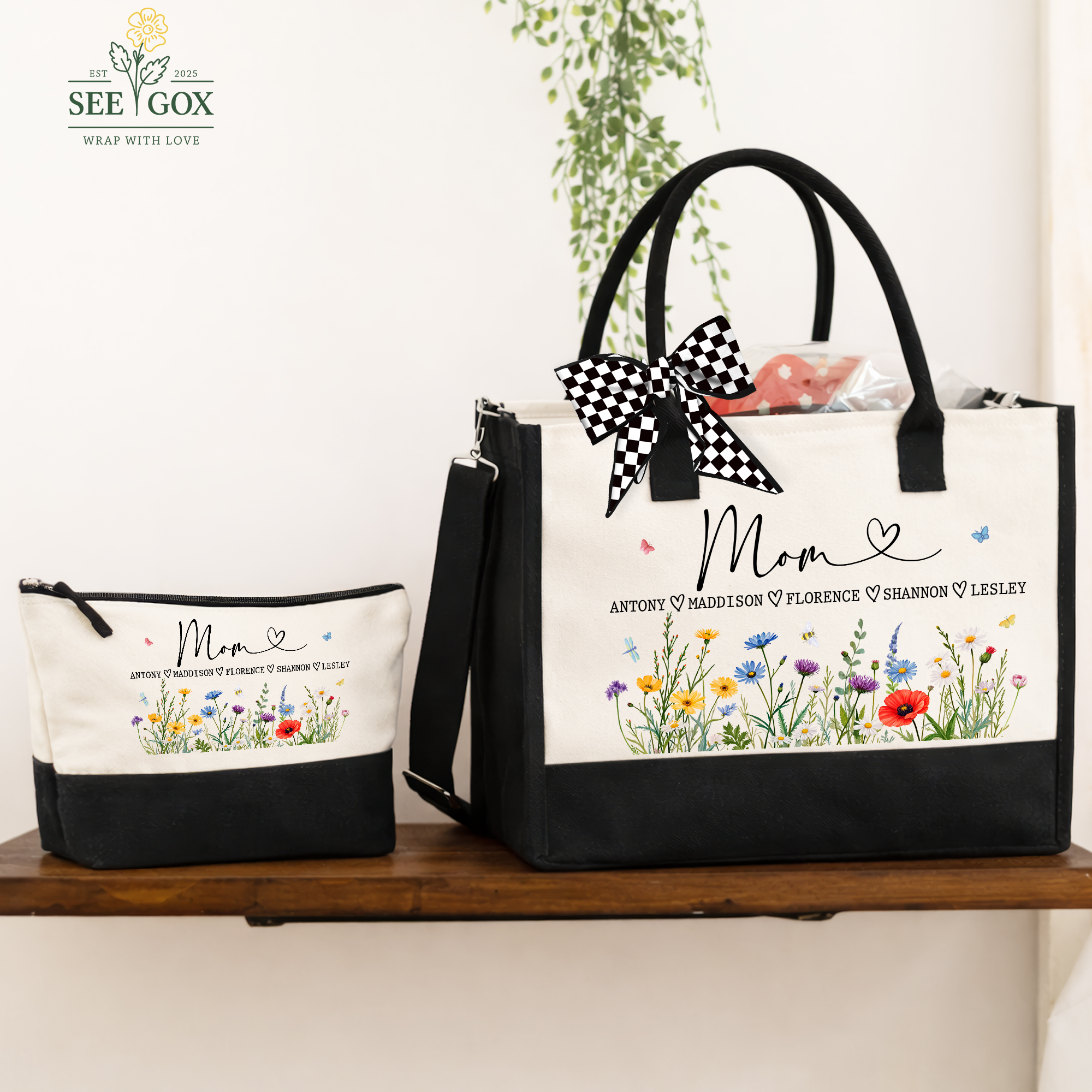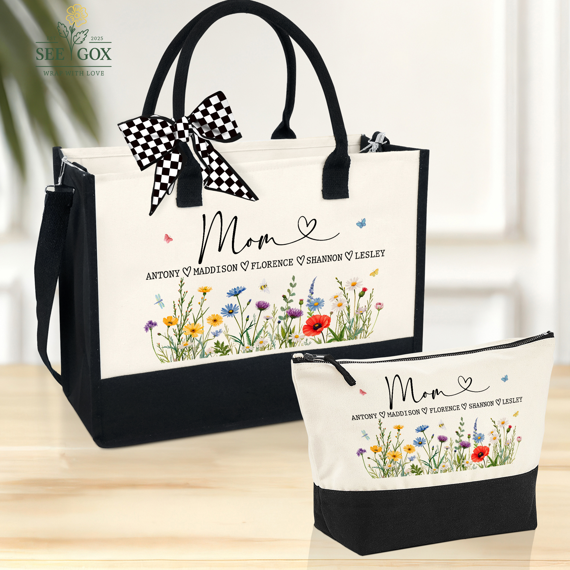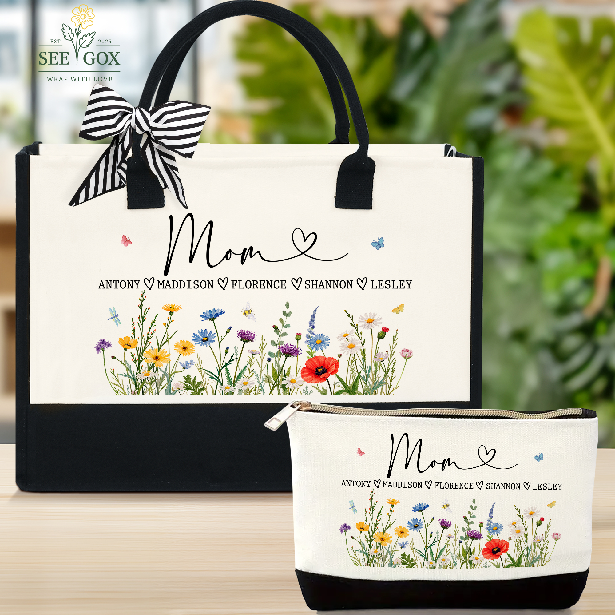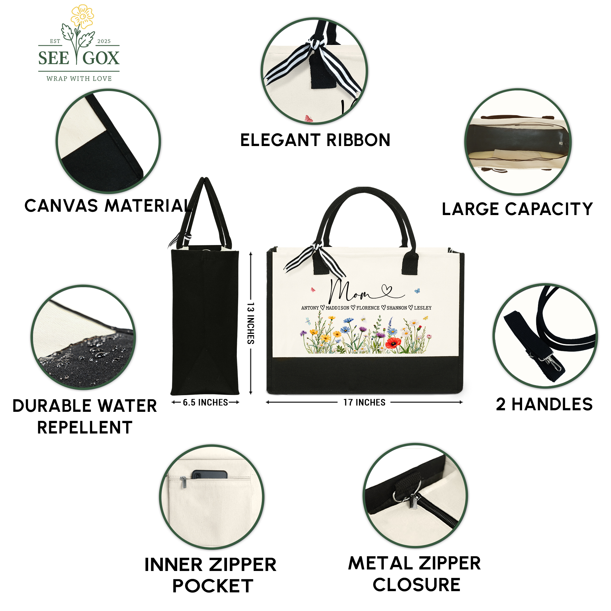 Personalized Wildflowers Mom Tote Bag, Gifts For Mom, Grandma Gift, Mother’s Day Gift, Gigi Gift, New Grandma Gift, Nana gift, Birthday Gift