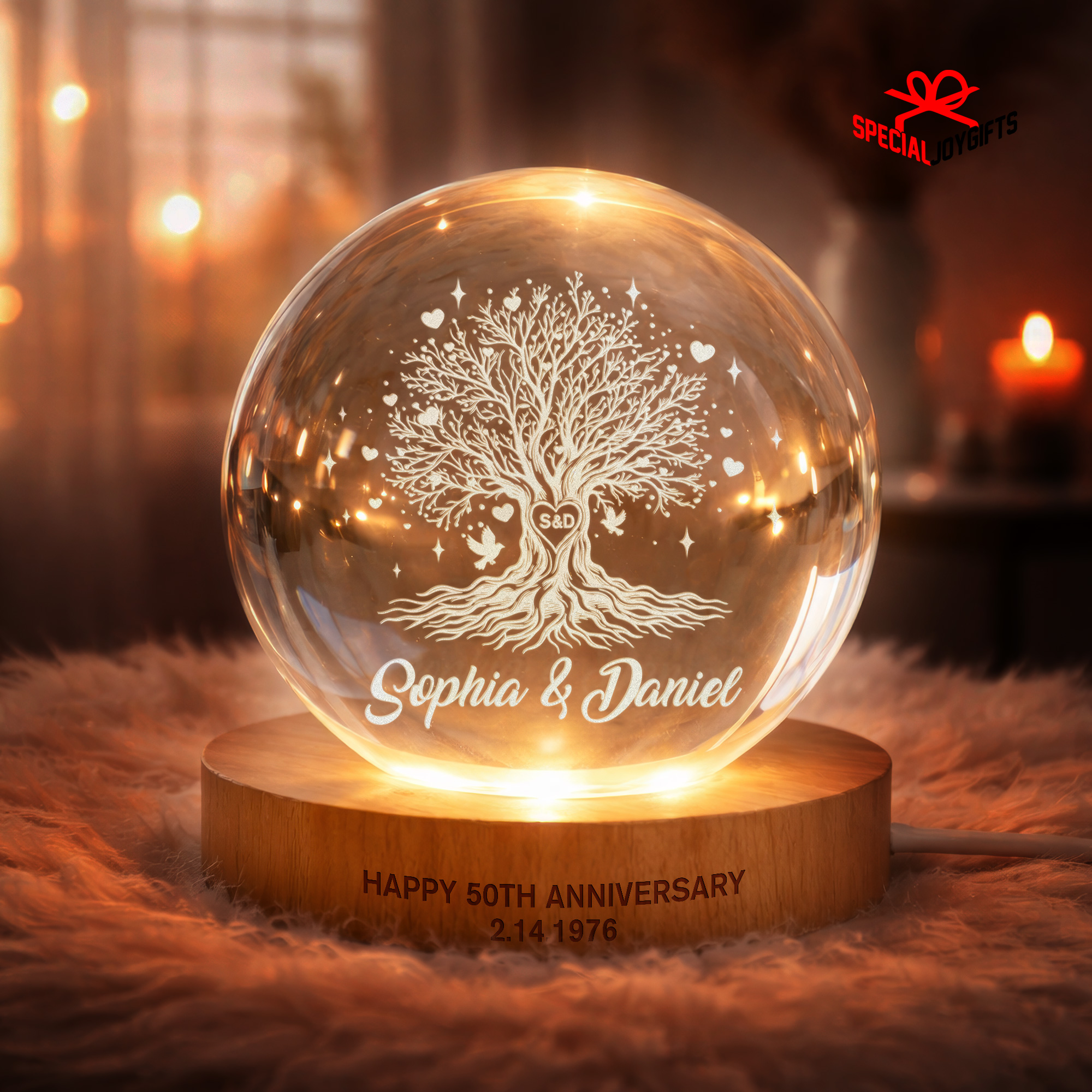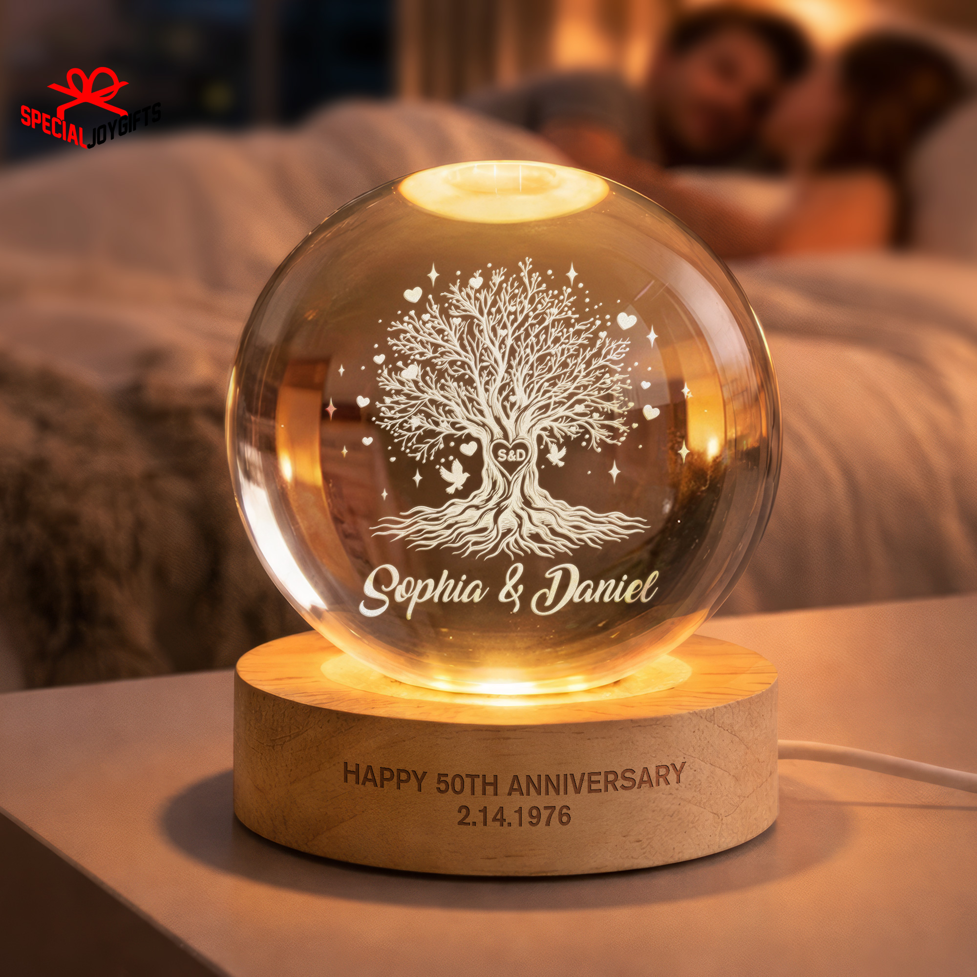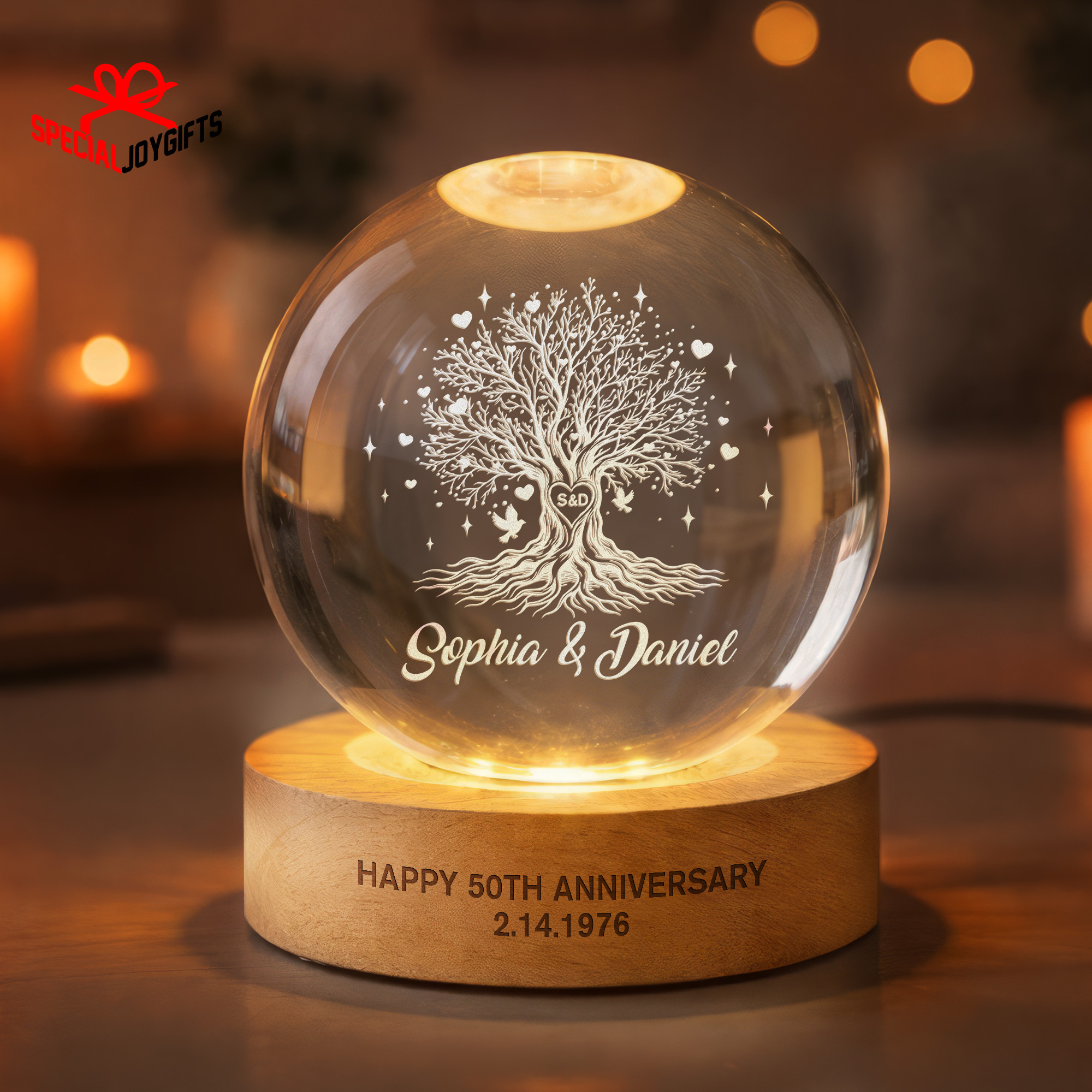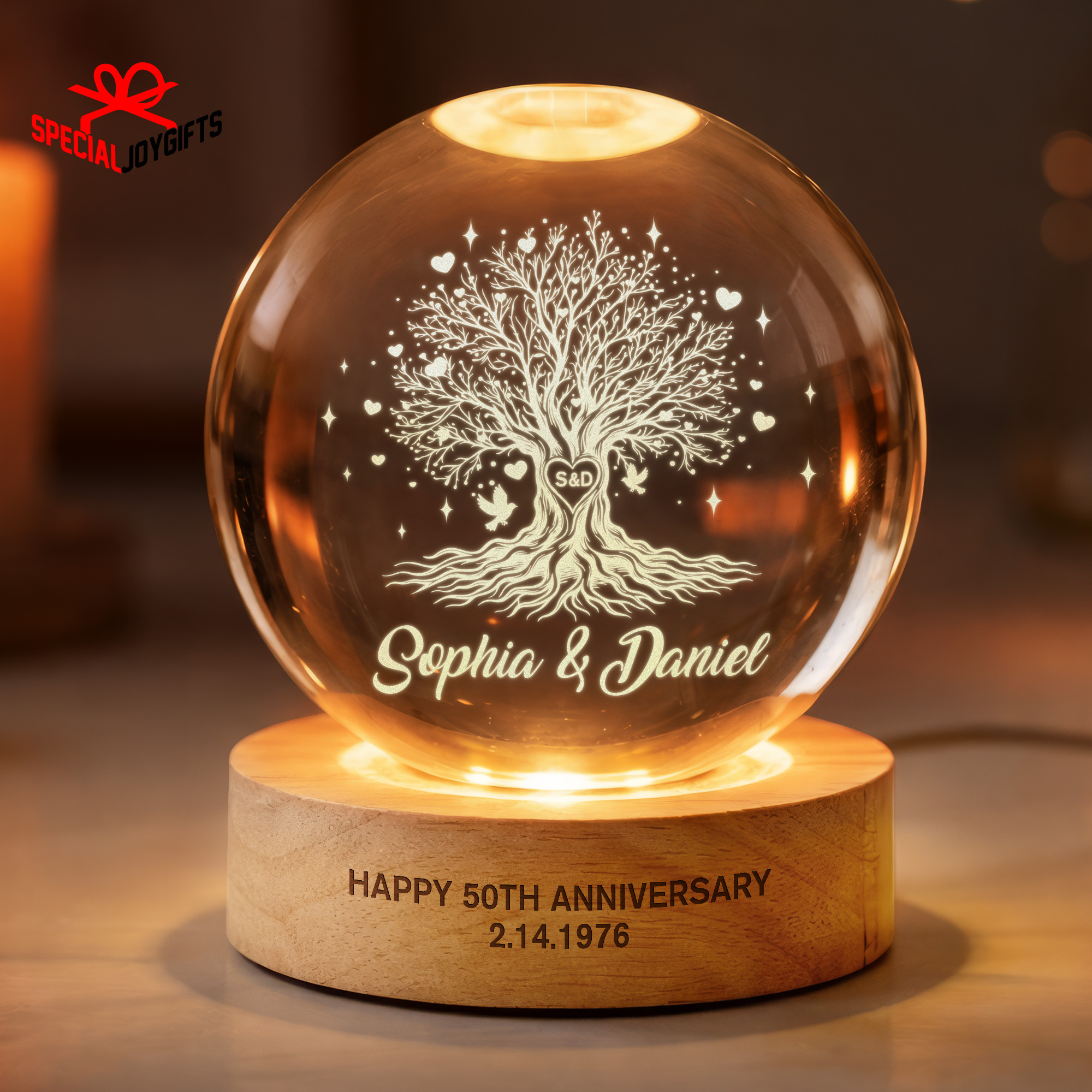Tree of Love Personalized Couples Crystal Ball Night Light, 50th Anniversary Gift, Wedding Anniversary Gift, Couple Gift, Mom Gift, Dad Gift