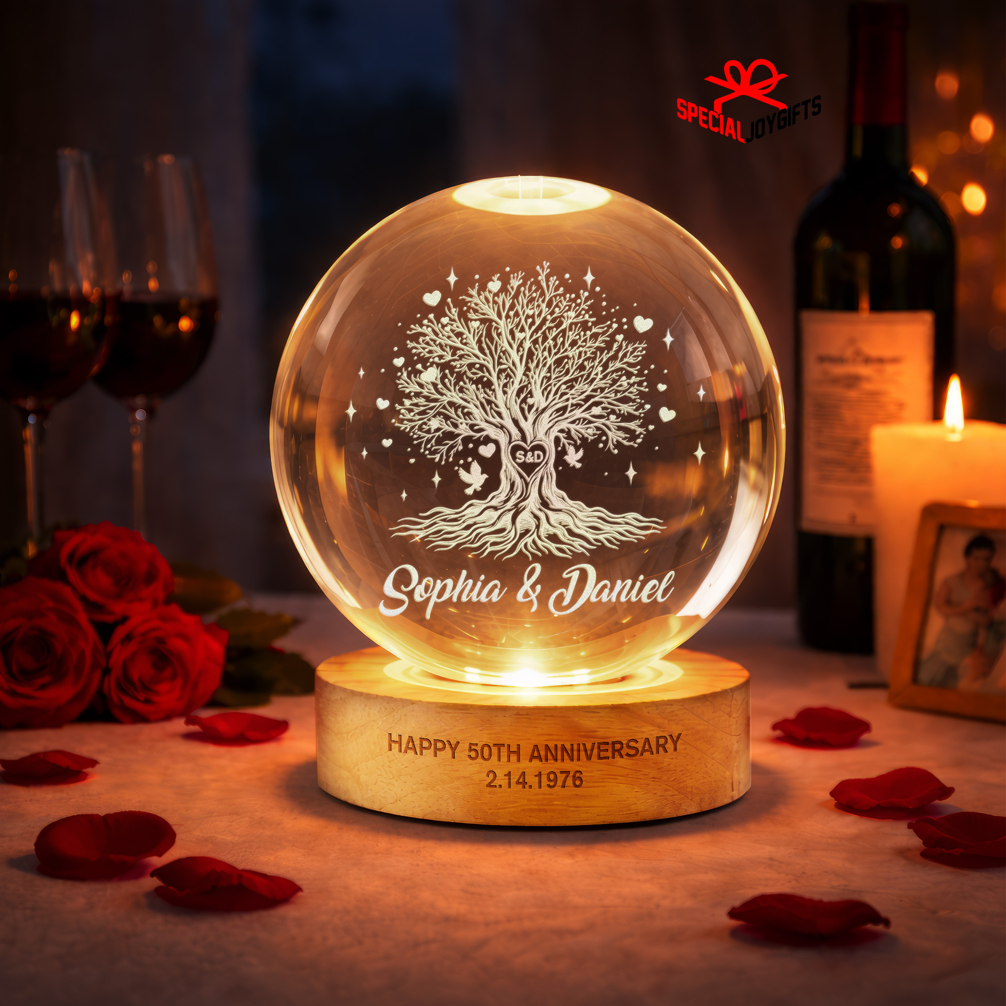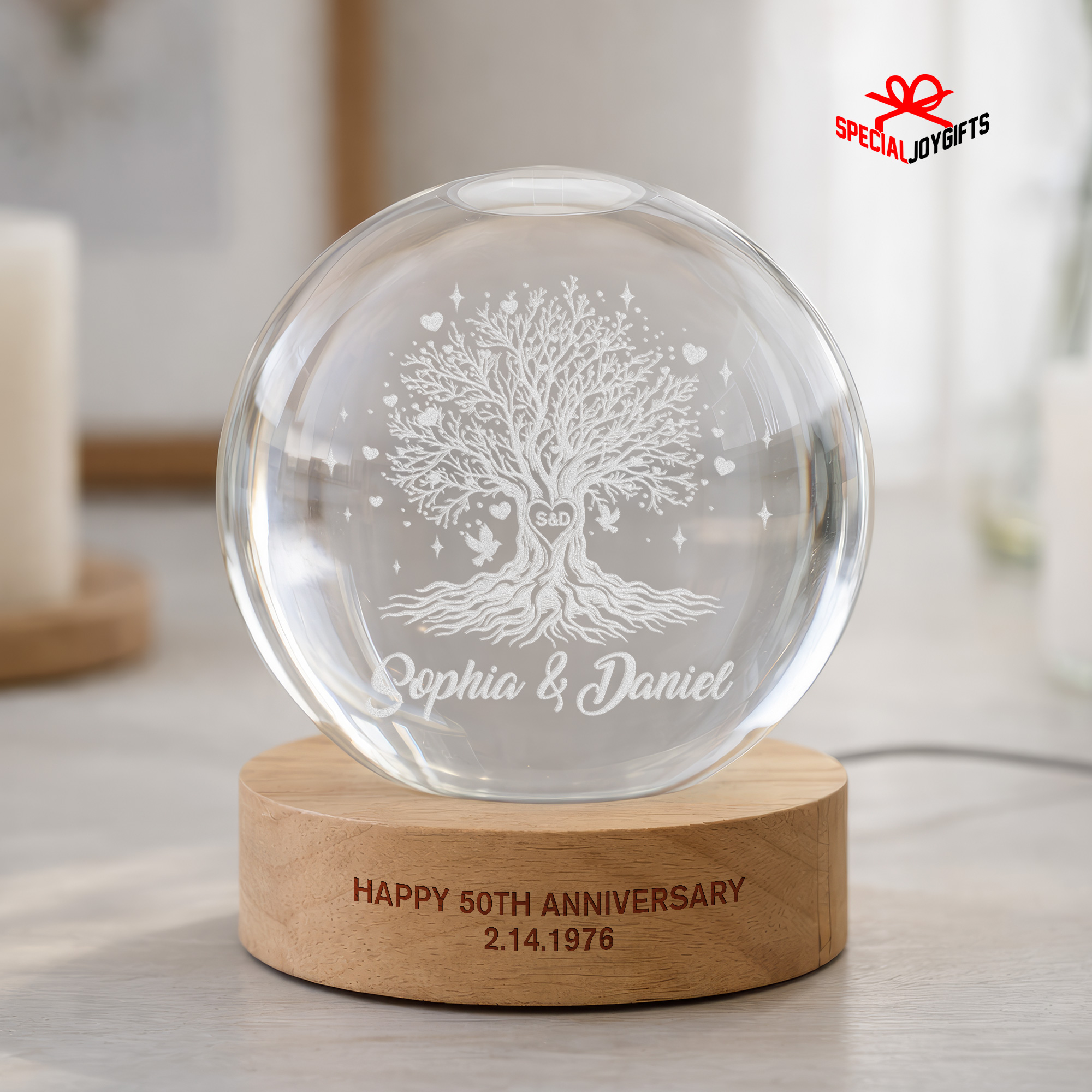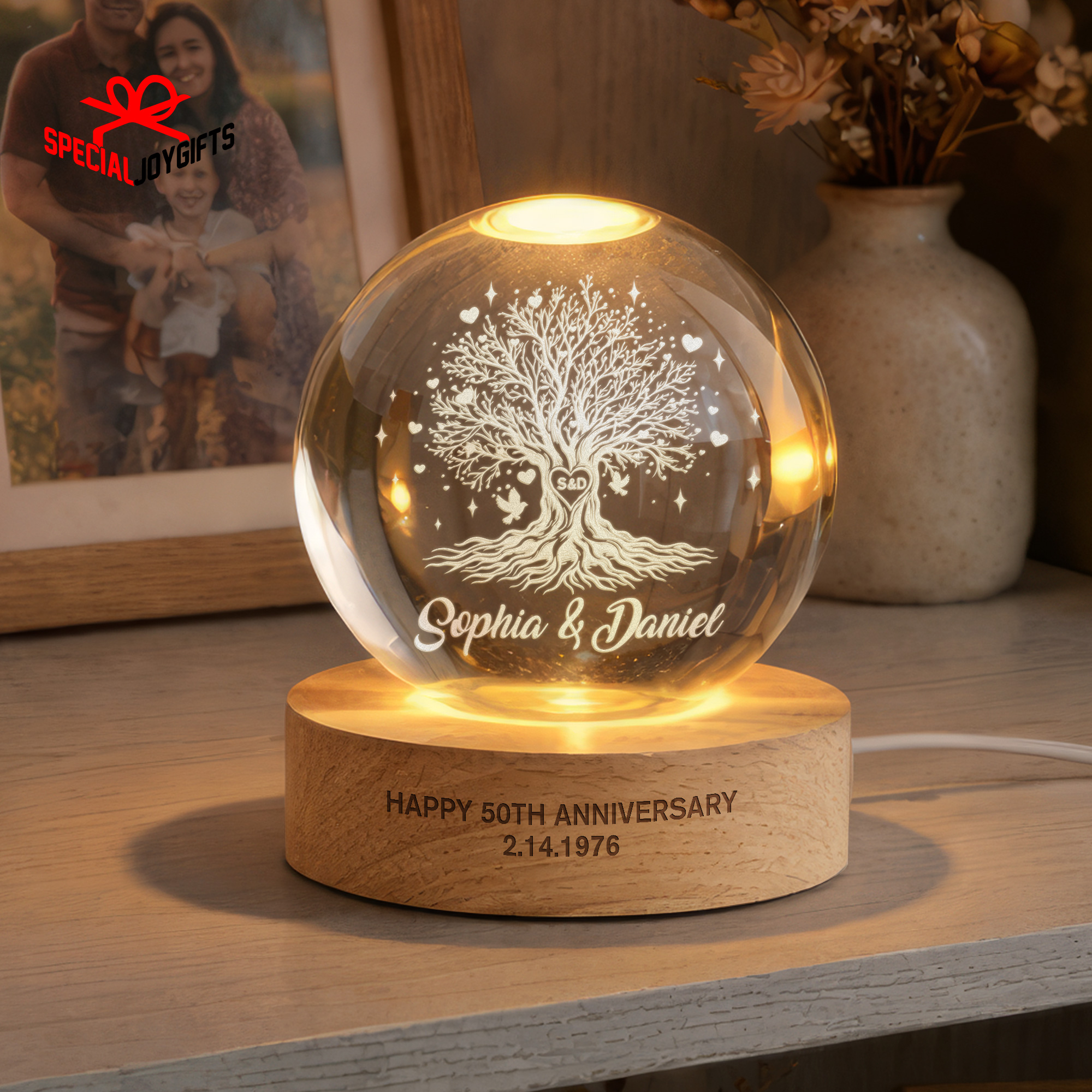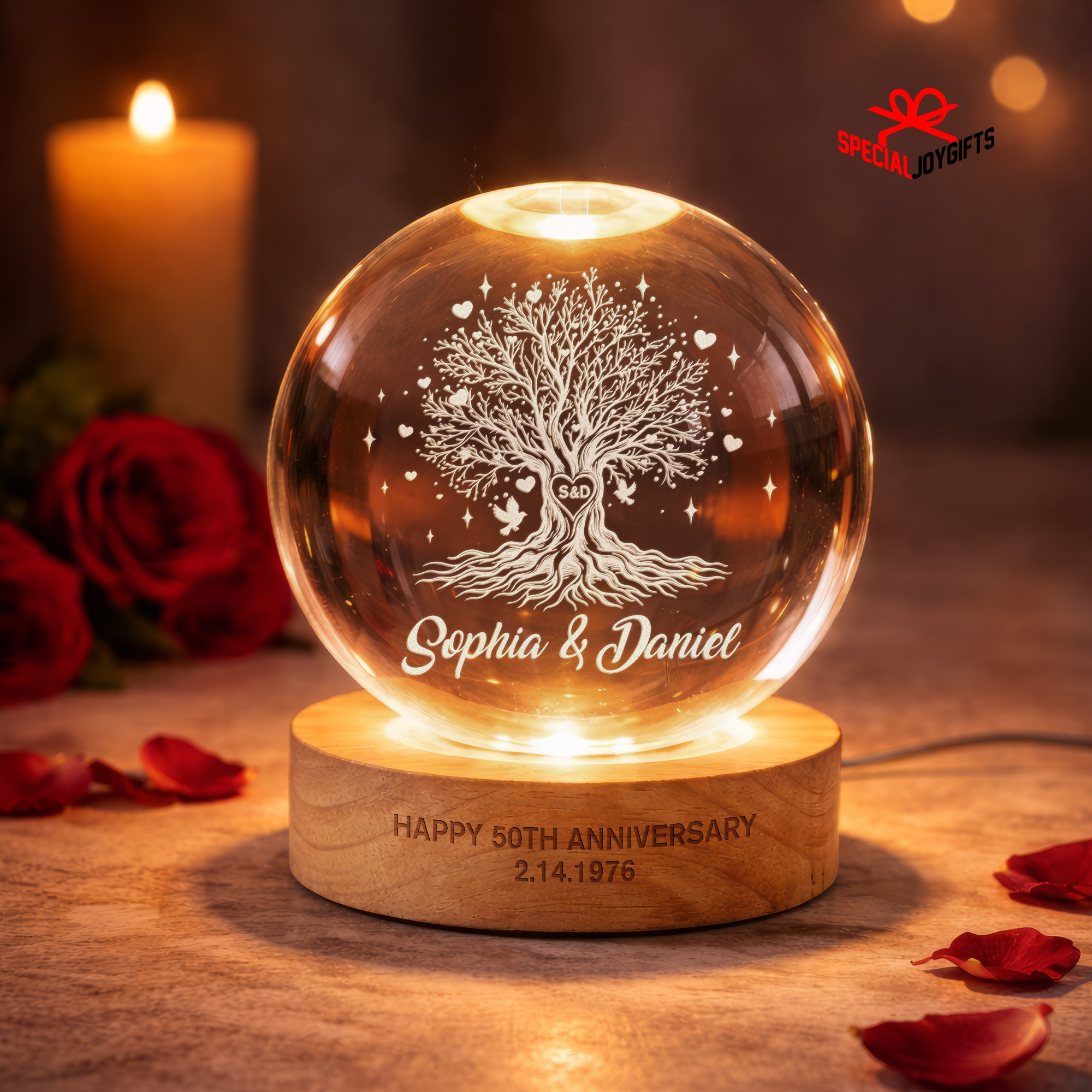 Tree of Love Personalized Couples Crystal Ball Night Light, 50th Anniversary Gift, Wedding Anniversary Gift, Couple Gift, Mom Gift, Dad Gift