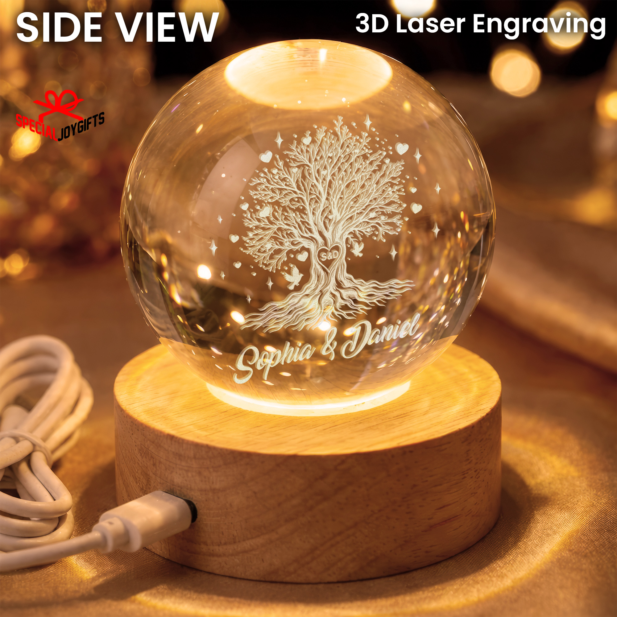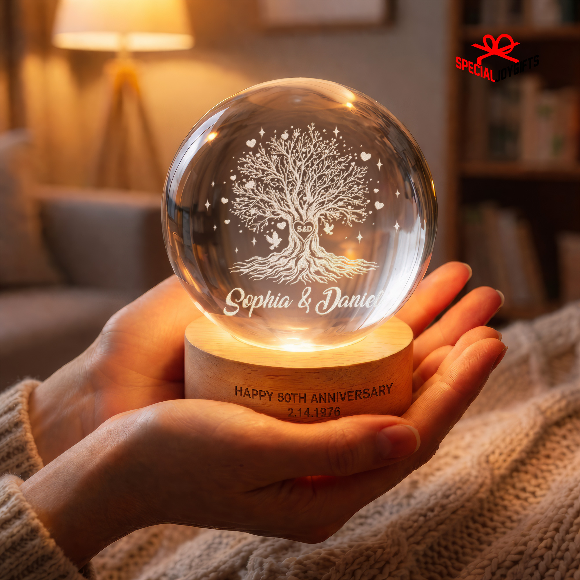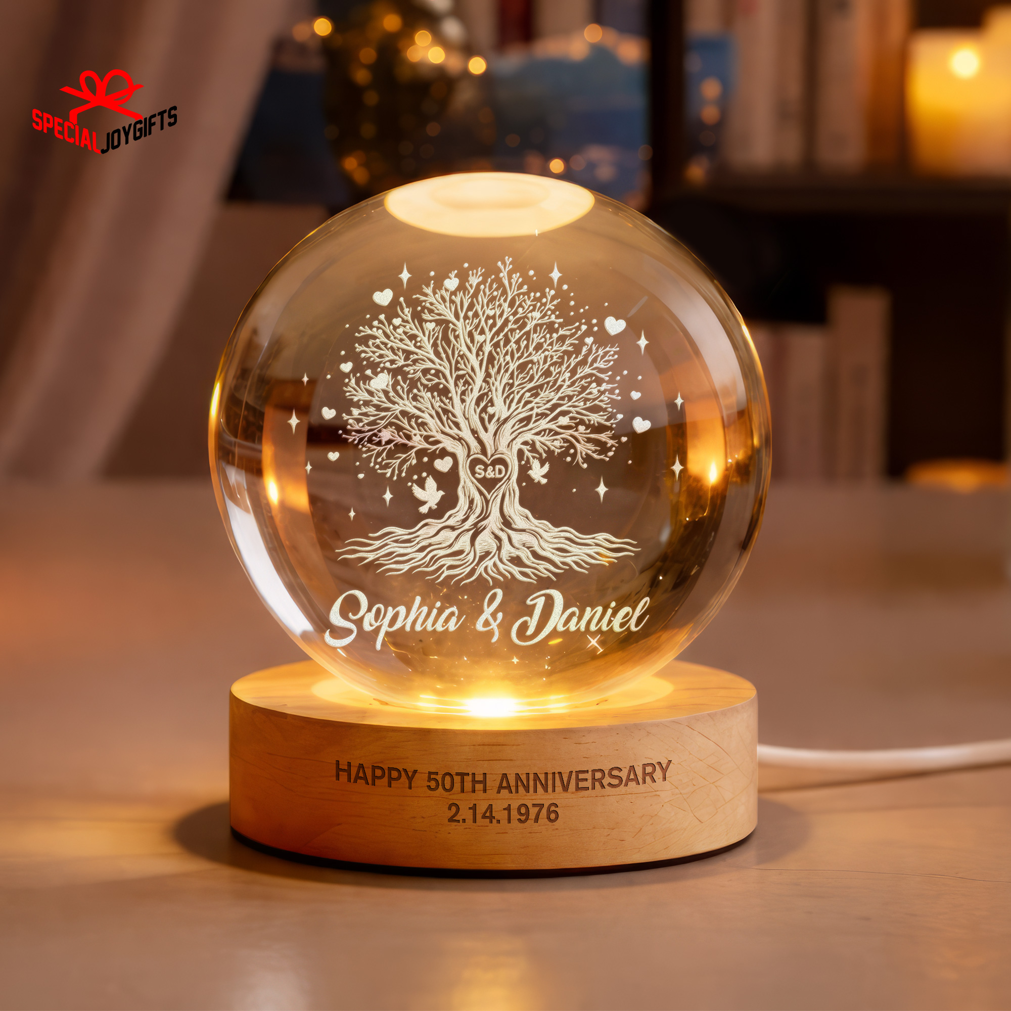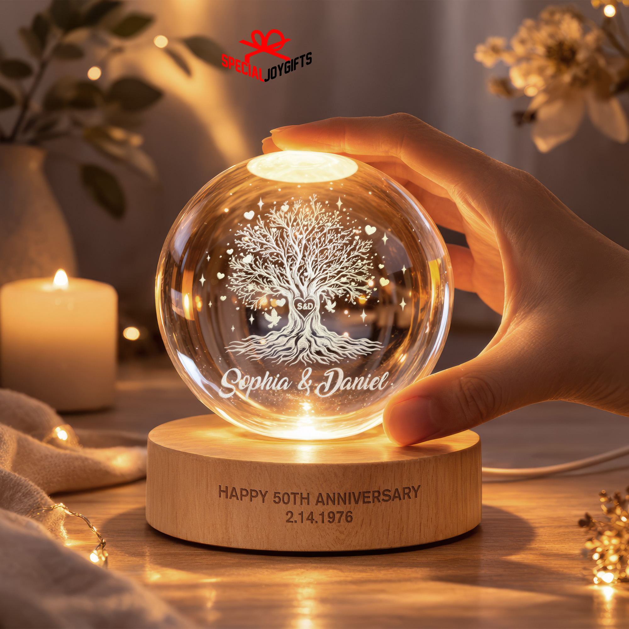 Tree of Love Personalized Couples Crystal Ball Night Light, 50th Anniversary Gift, Wedding Anniversary Gift, Couple Gift, Mom Gift, Dad Gift