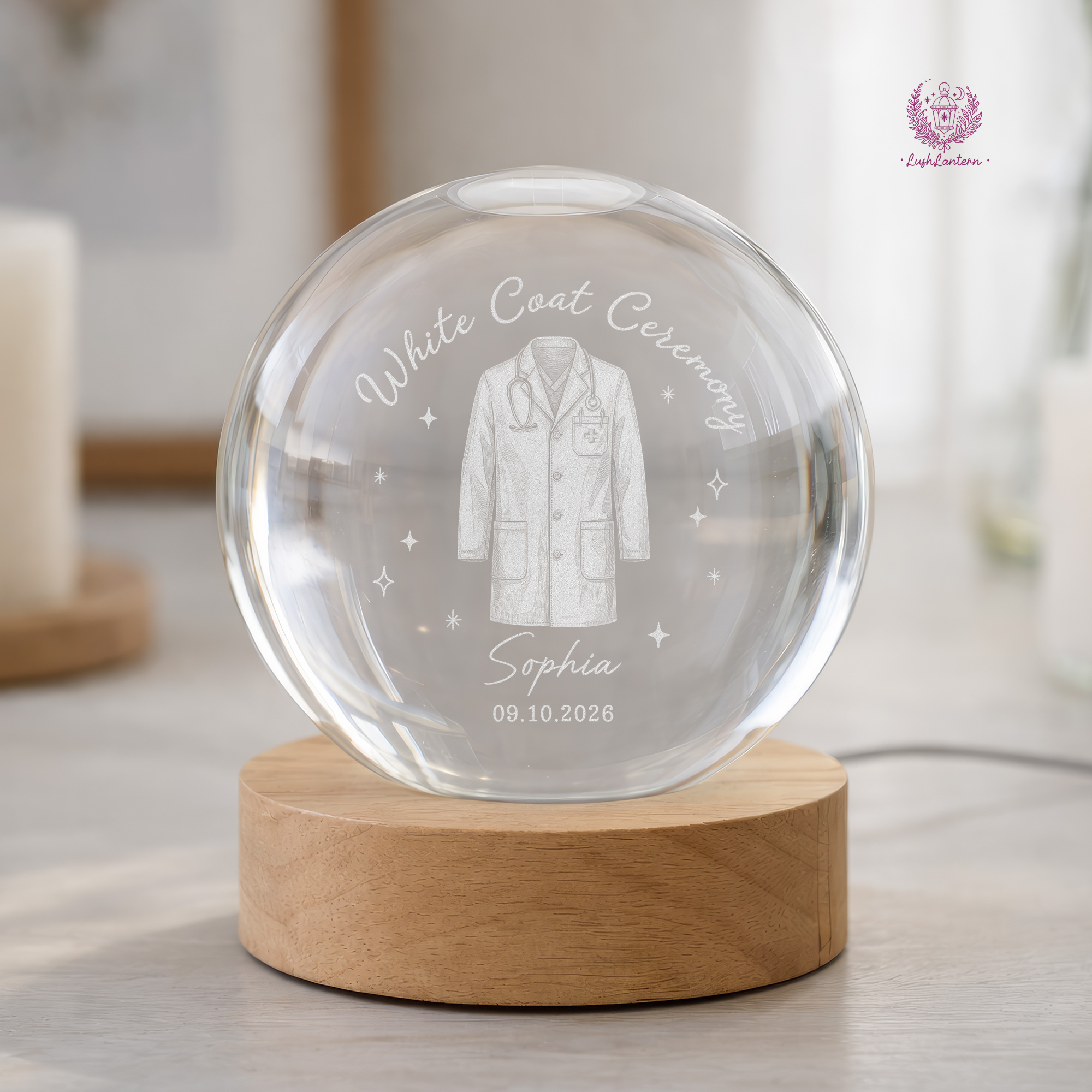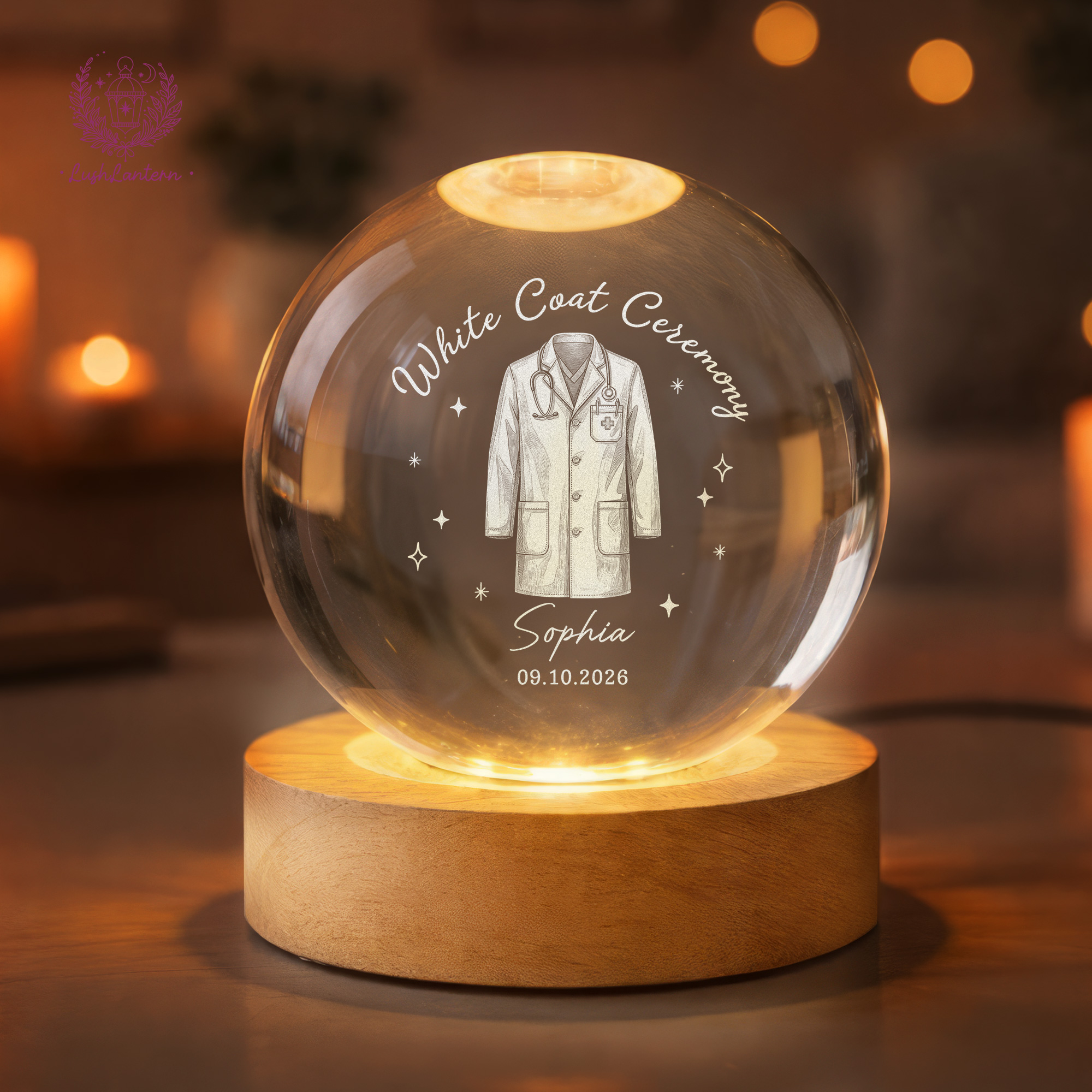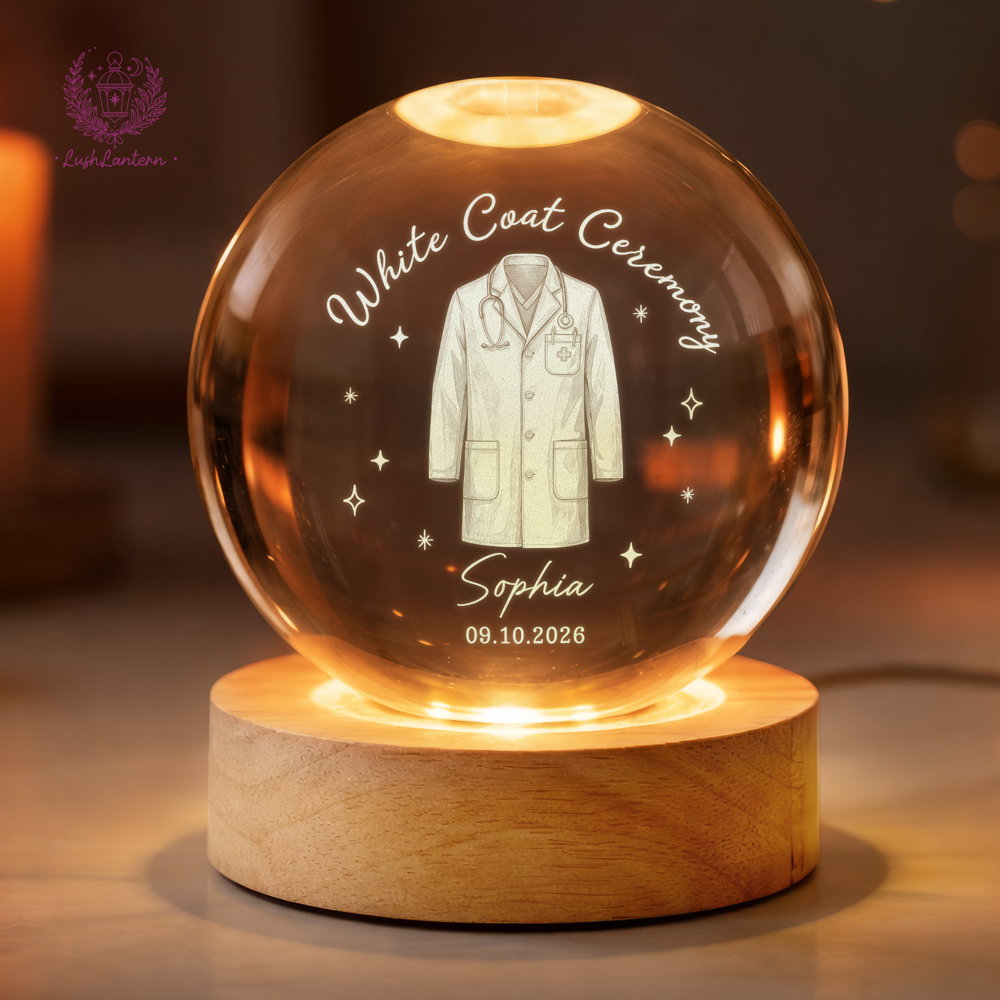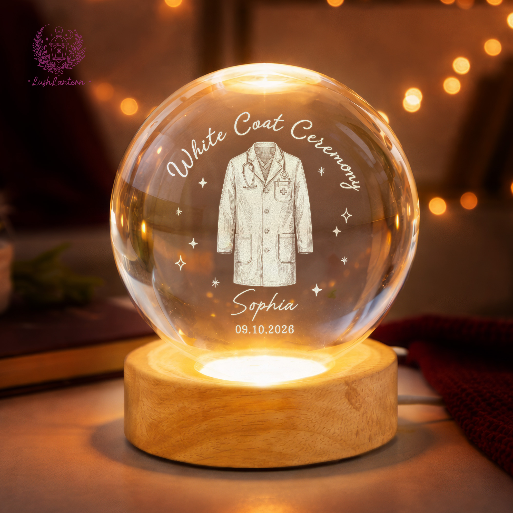 White Coat Ceremony Gift, Custom White Coat Ceremony Crystal Ball Night Light, Med School Acceptance Gift Future Doctor, White Coat Medical