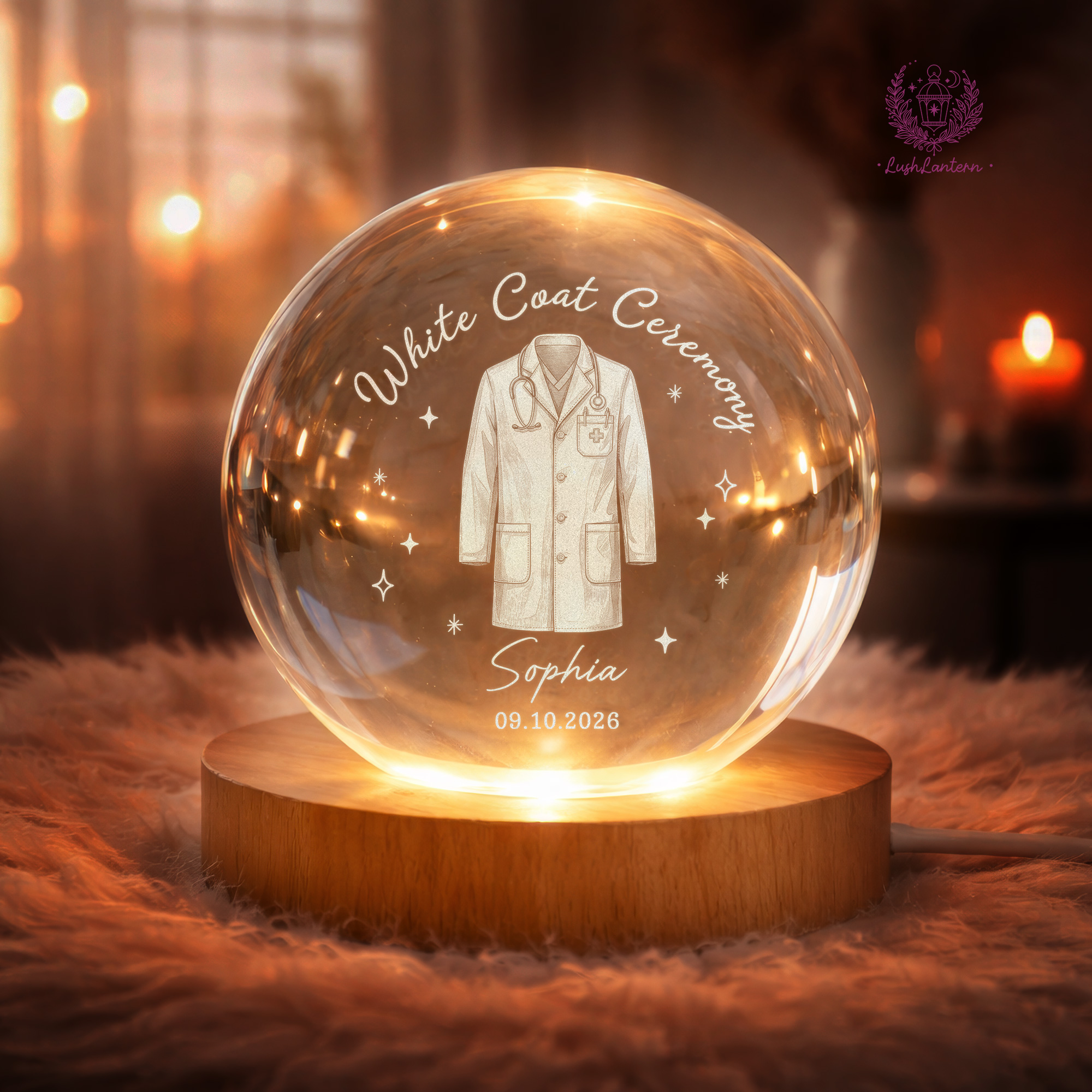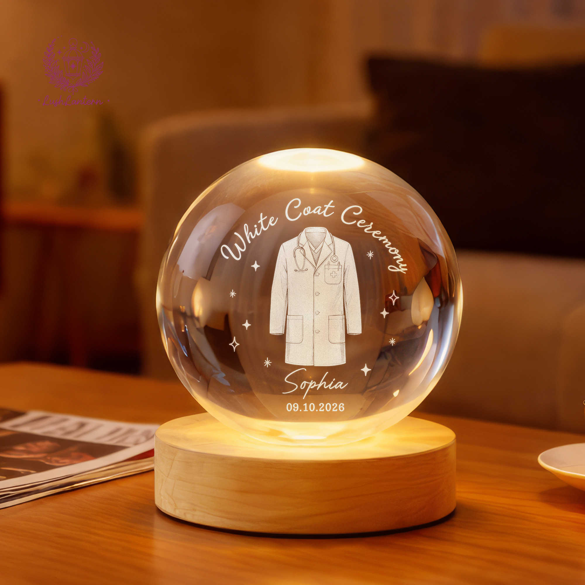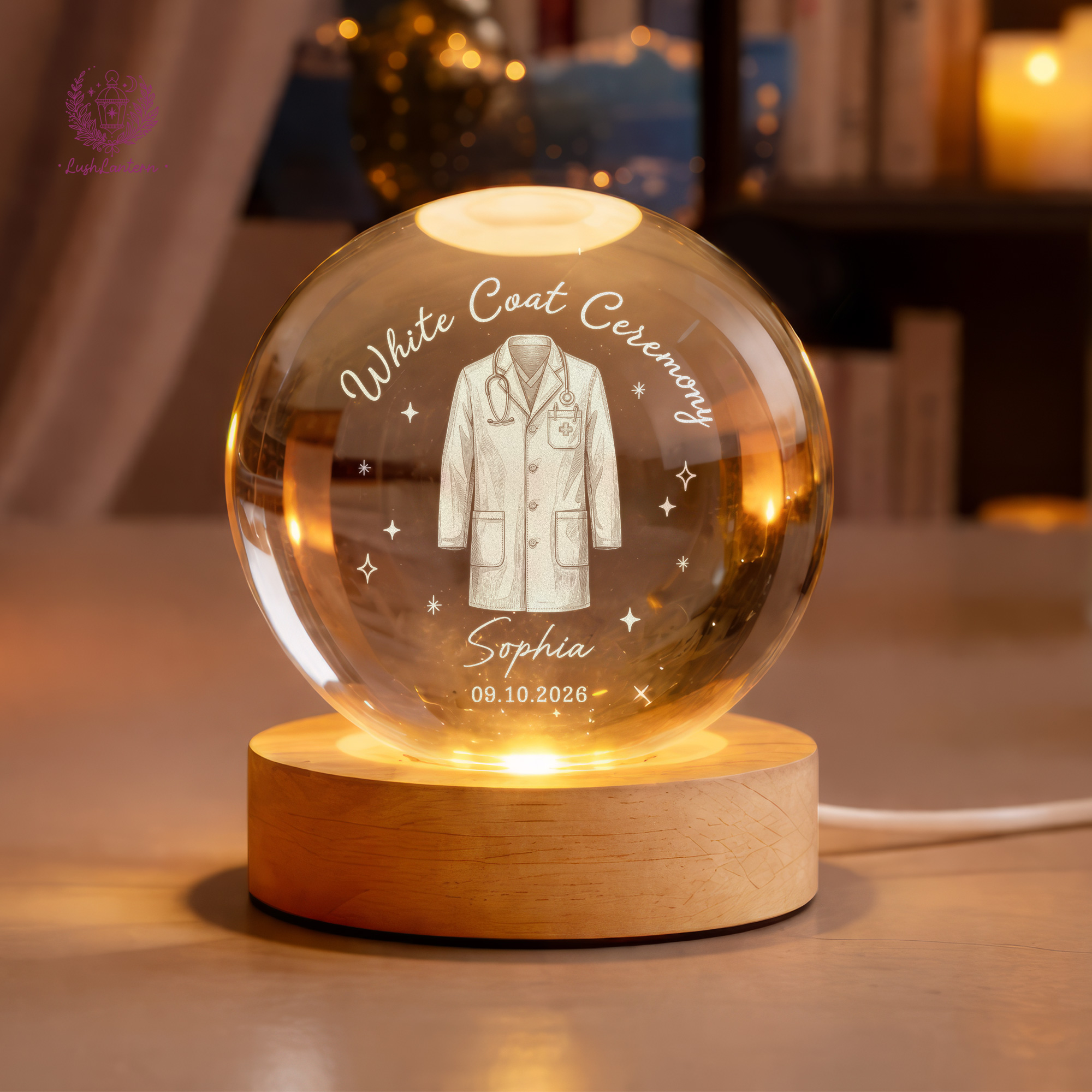 White Coat Ceremony Gift, Custom White Coat Ceremony Crystal Ball Night Light, Med School Acceptance Gift Future Doctor, White Coat Medical