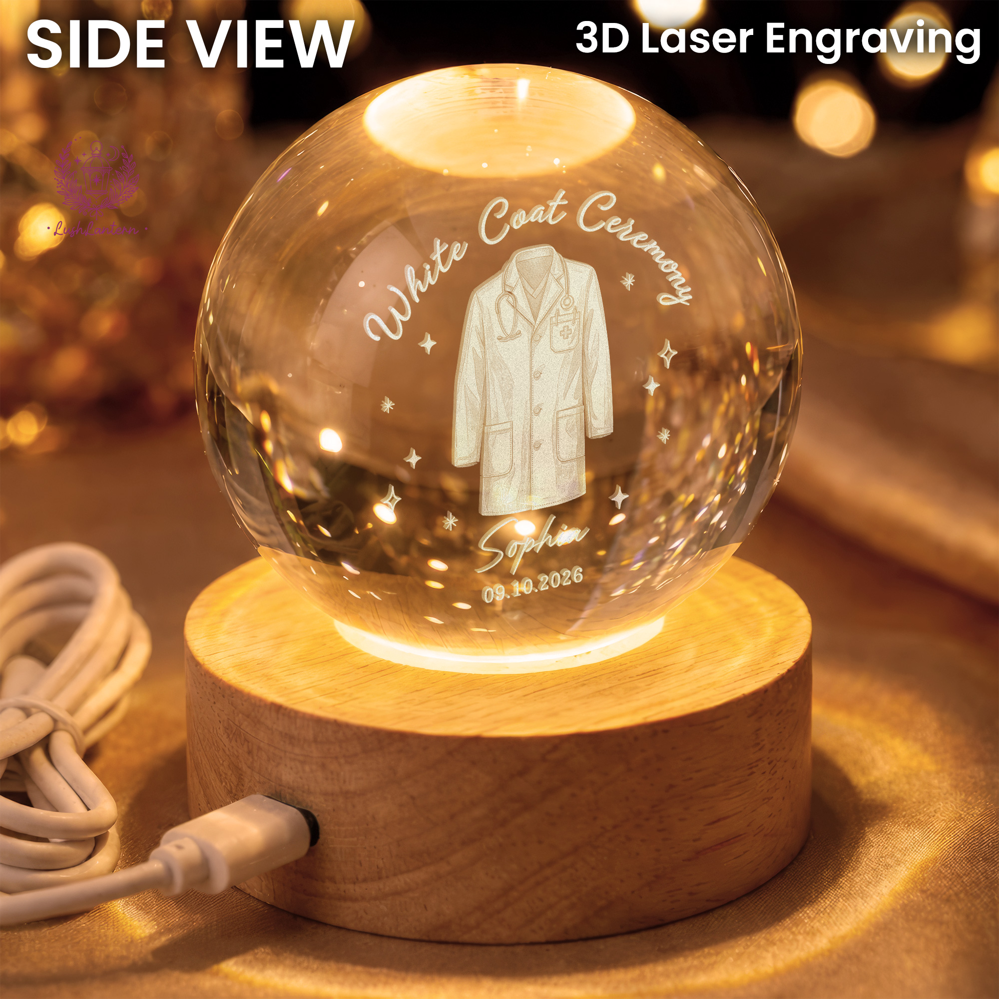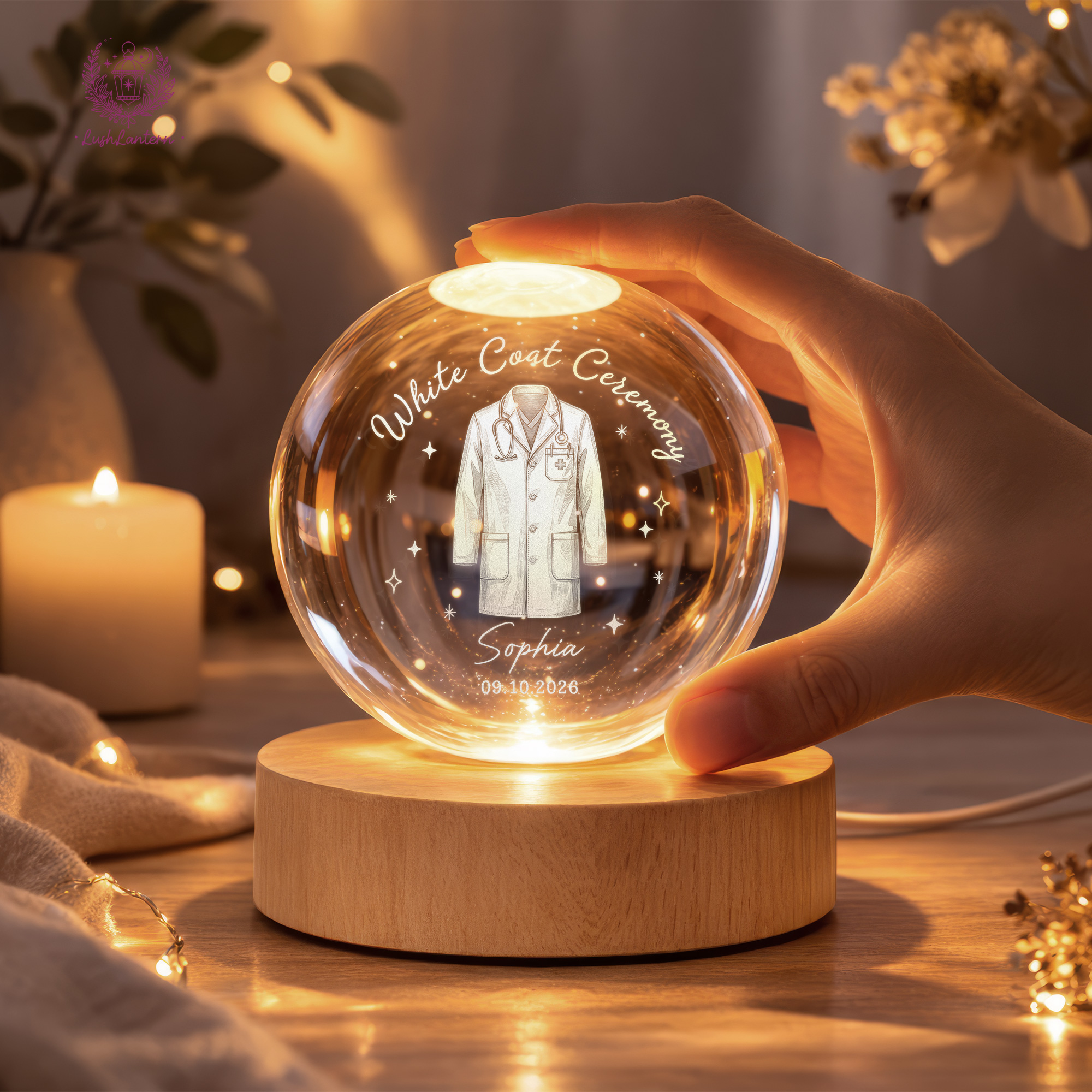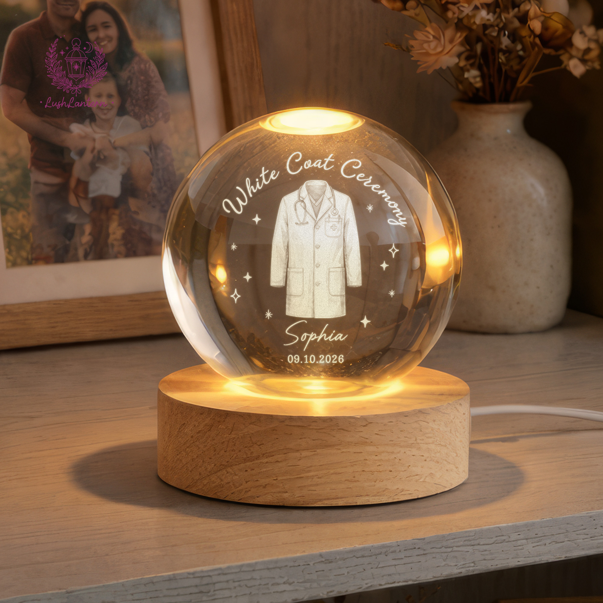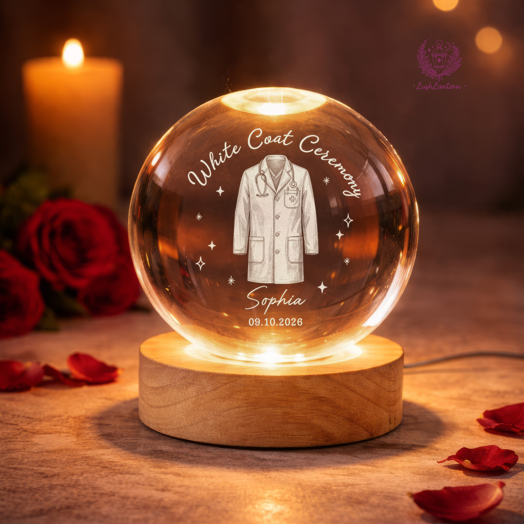 White Coat Ceremony Gift, Custom White Coat Ceremony Crystal Ball Night Light, Med School Acceptance Gift Future Doctor, White Coat Medical